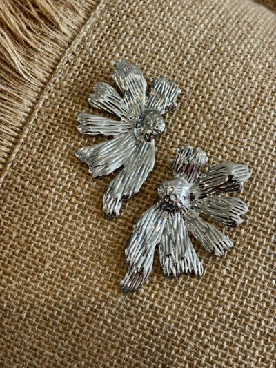Pendientes media FLOR plateados