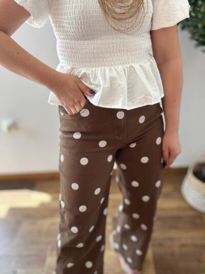 Blusa LUNARES y volantes chocolate