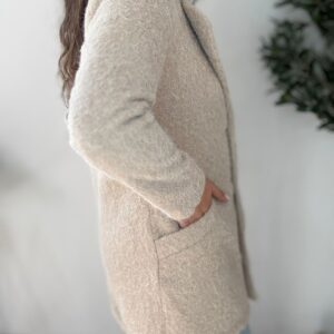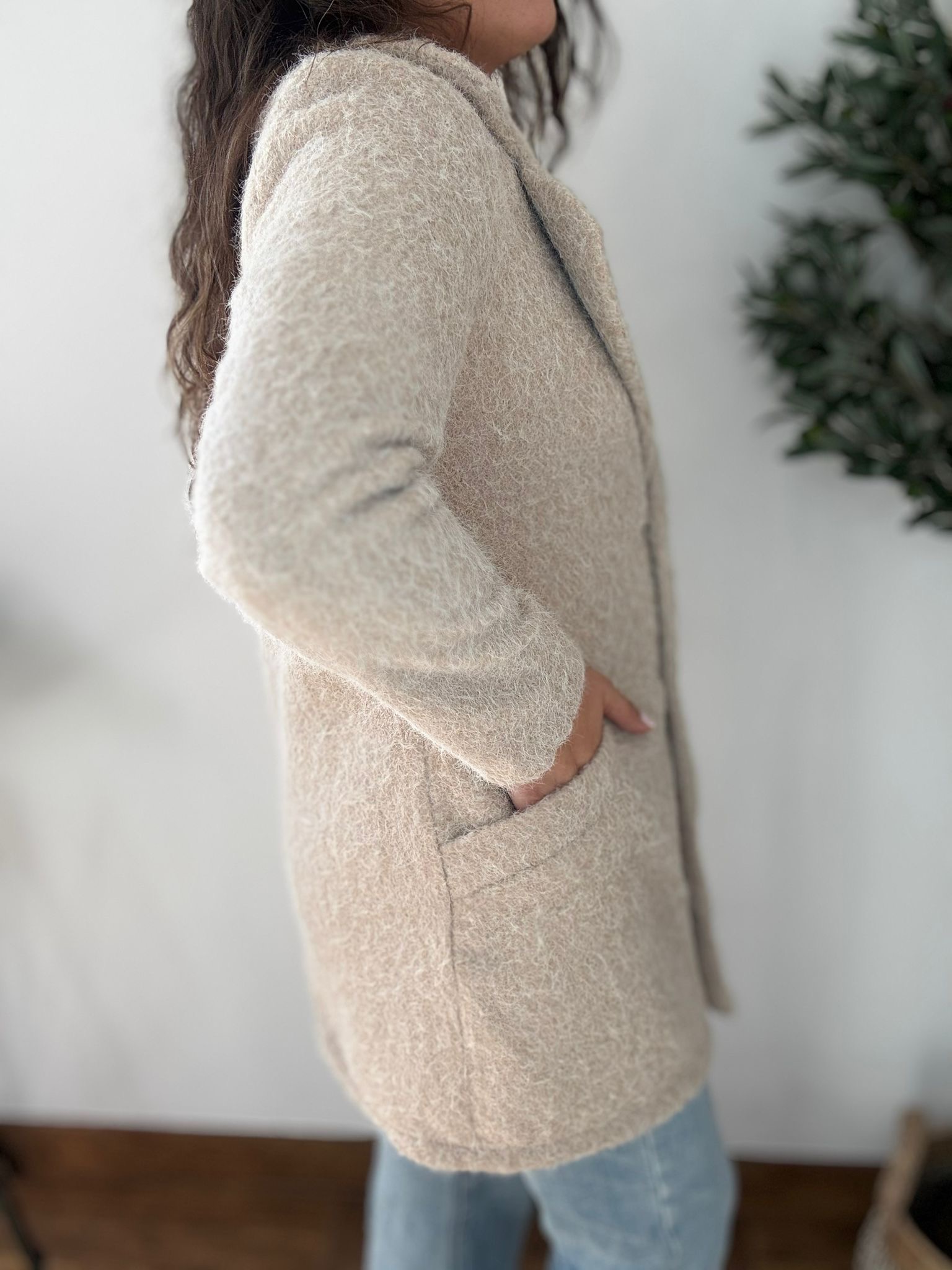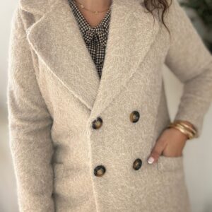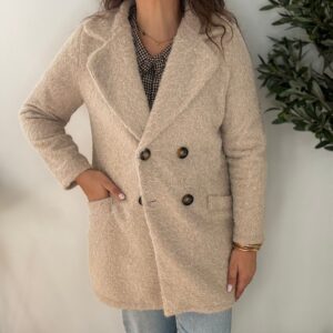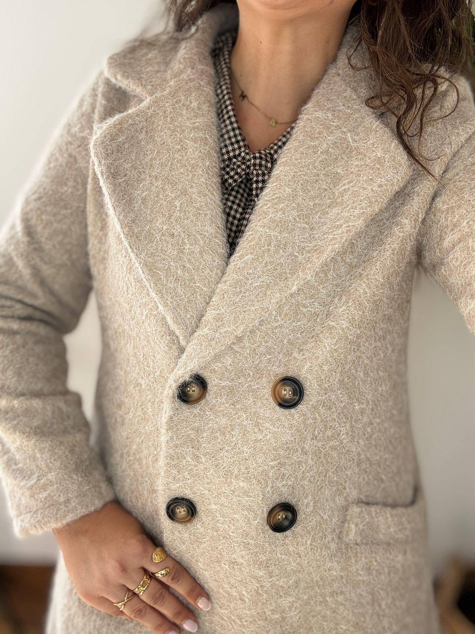 Abrigo calentito de lanita abotonado. Tiene bolsillos. TU RECOMENDADA 36/44. Ana lleva habitualmente talla L 40/42 y mide 1.71m Medidas del abrigo (cerrado) contorno de pecho 110, cadera 120 y largo 90cm