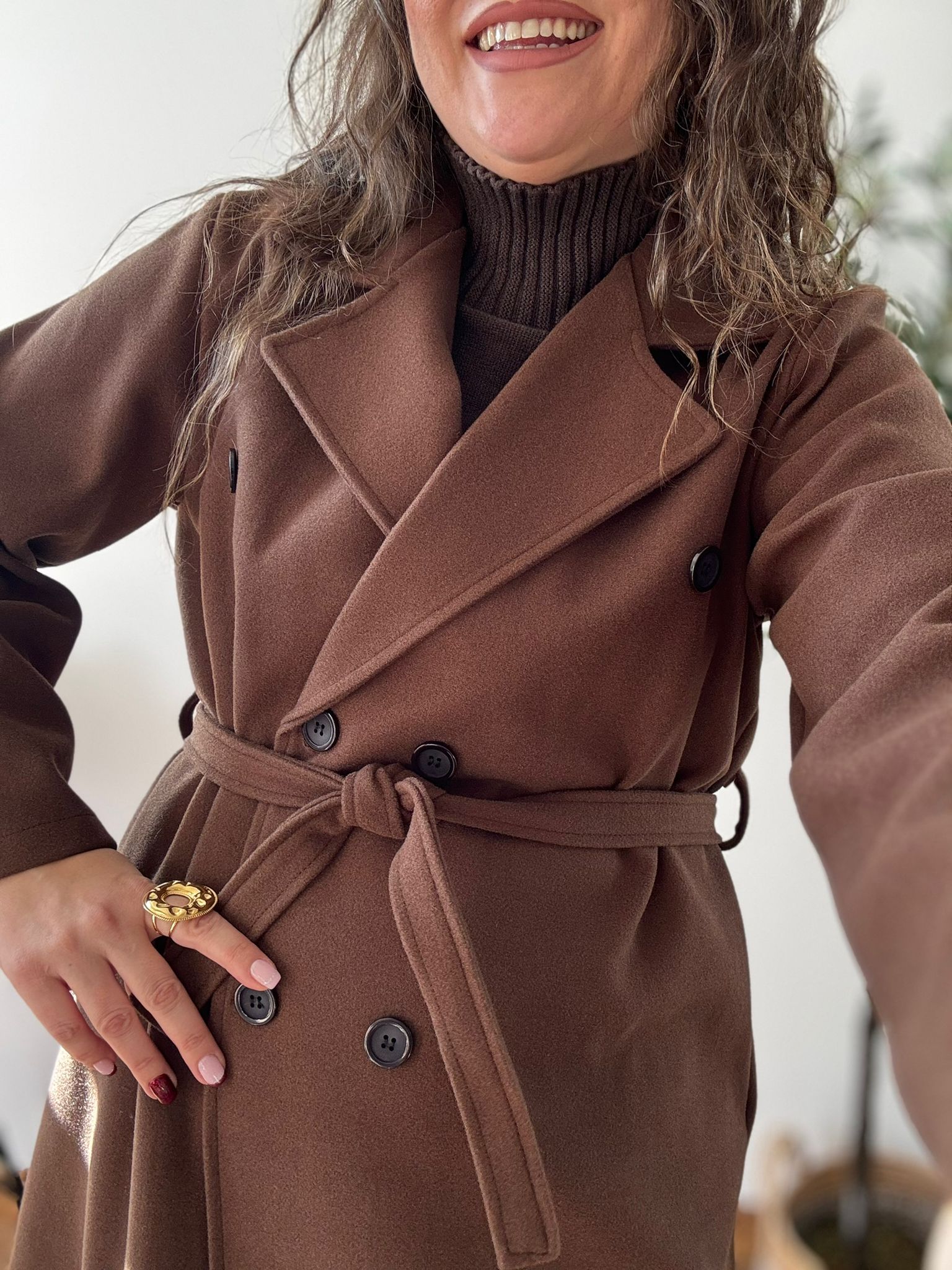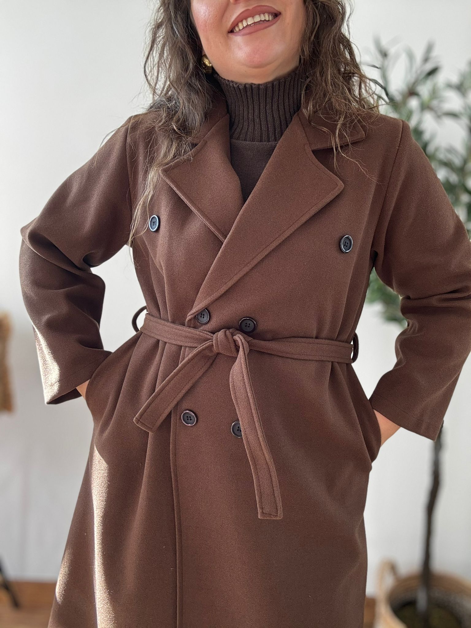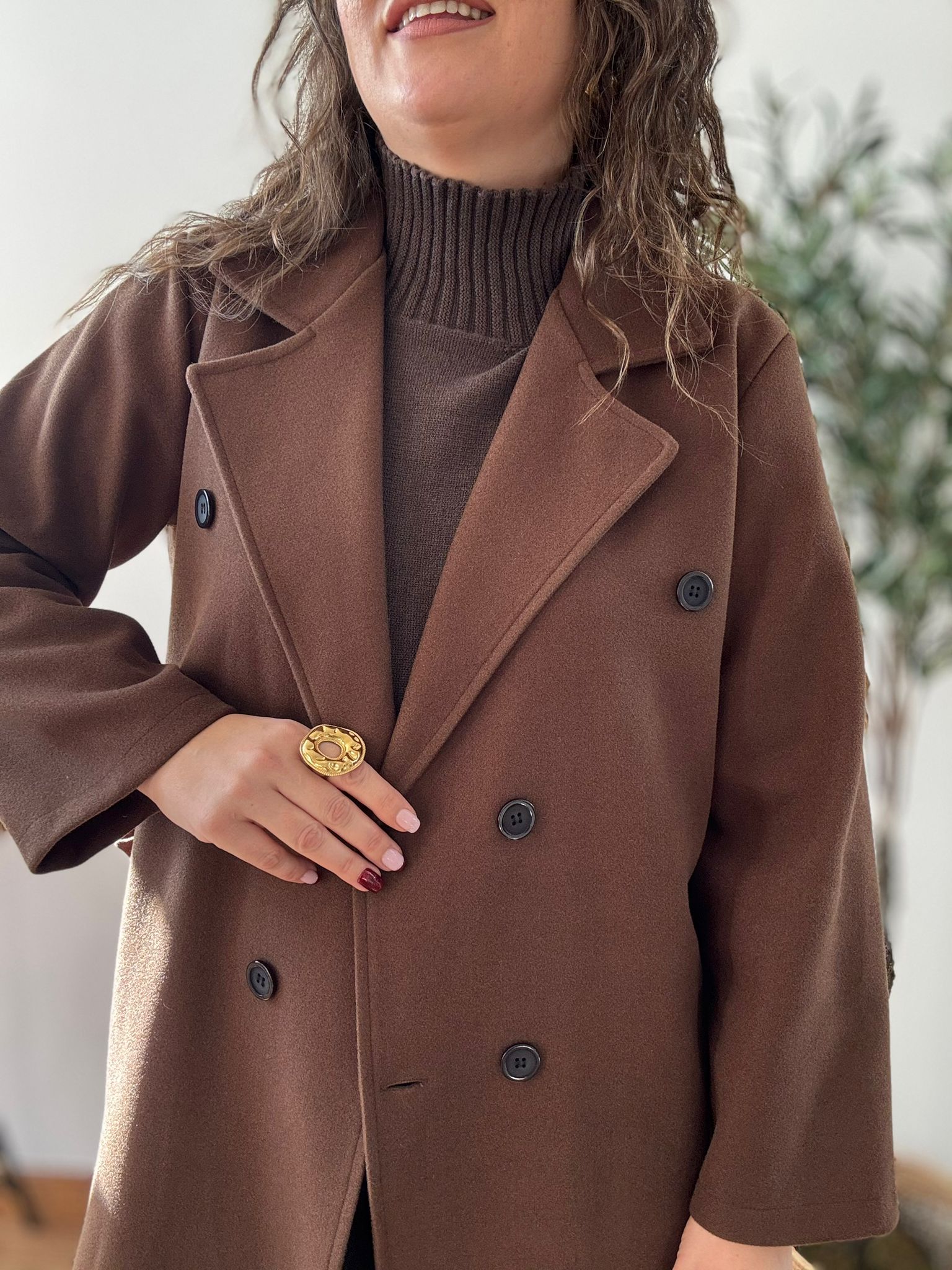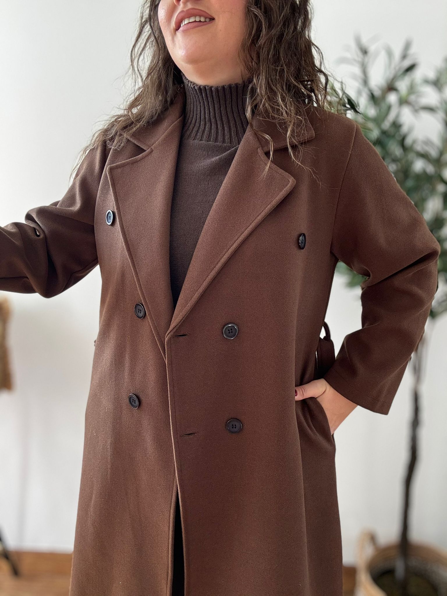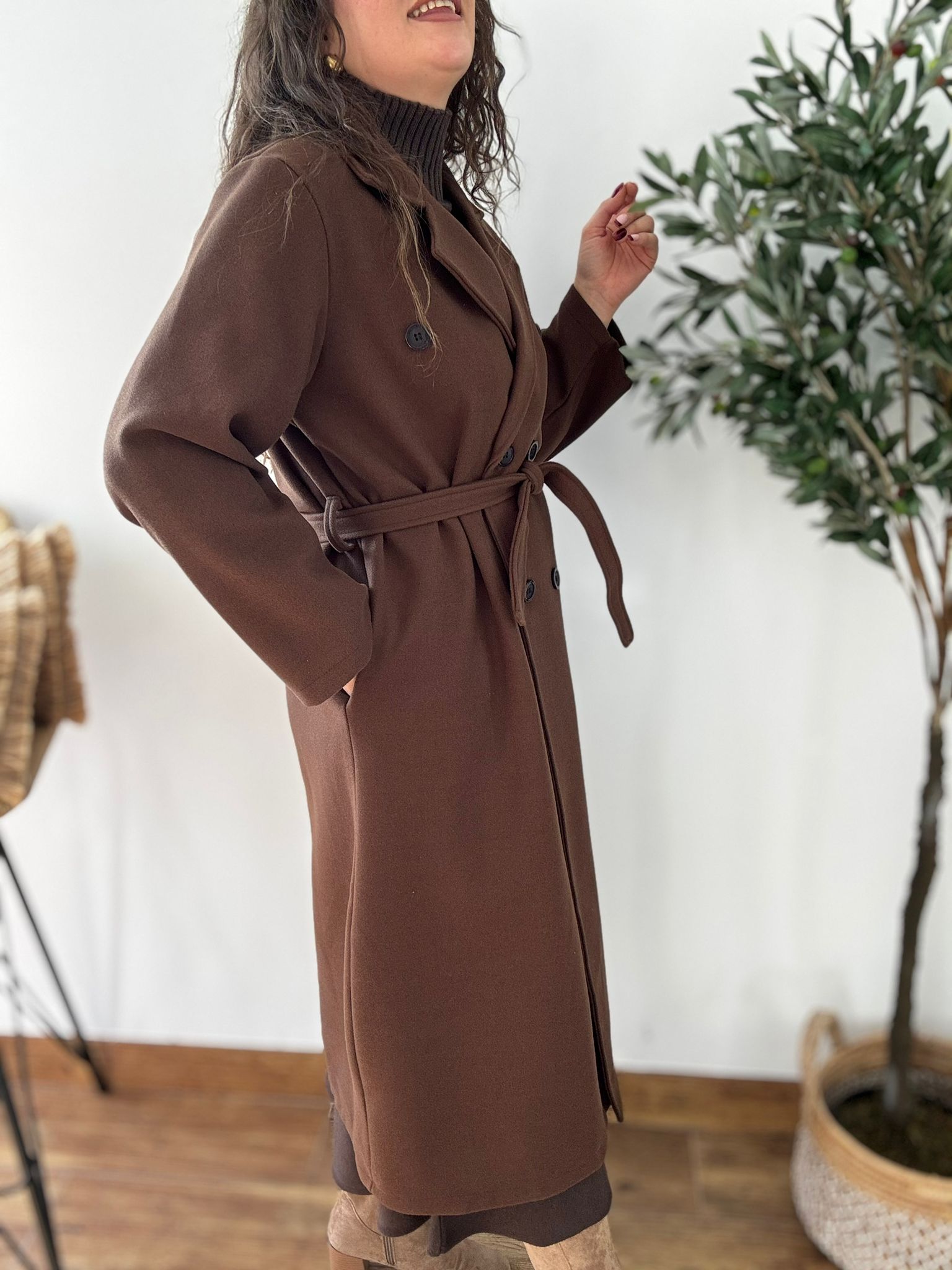 Abrigo de paño largo abotonado. No lleva forro pero es muy abrigado. Lleva bolsillos. TU RECOMENDADA 36/44. Ana lleva habitualmente talla 40/42 y mide 1.71m Medidas del abrigo: contorno de pecho cerrado 115, cadera cerrado 124 y largo 121cm