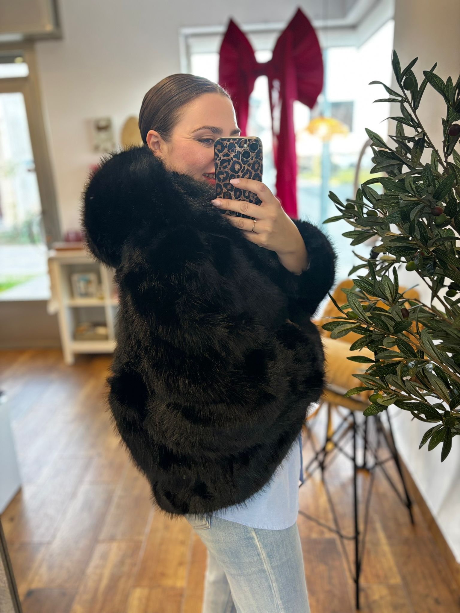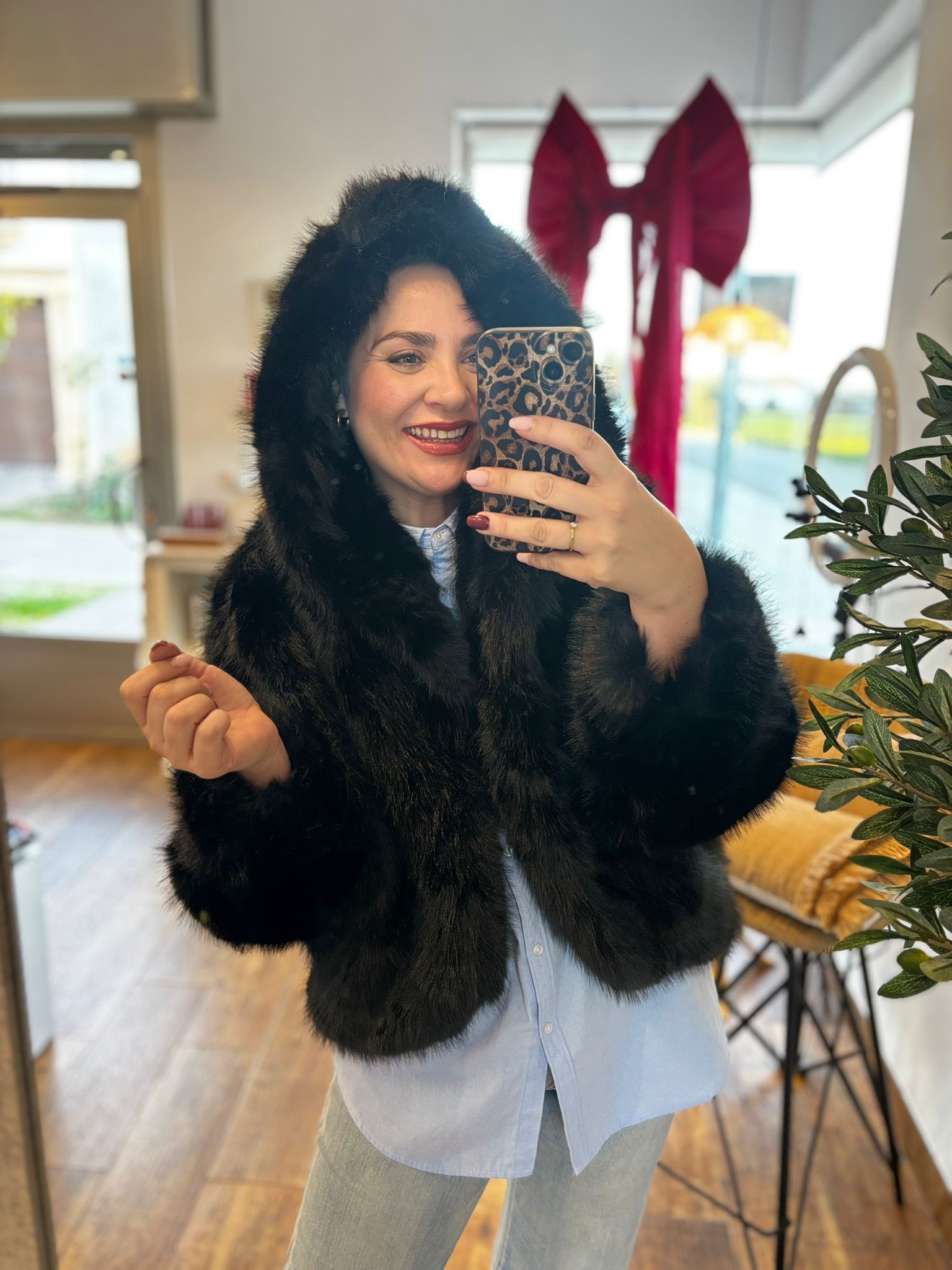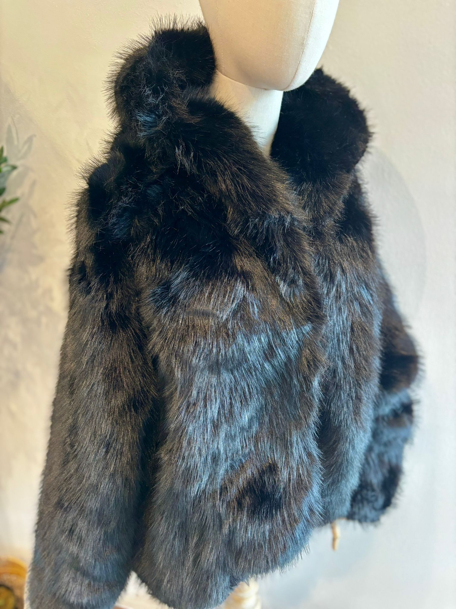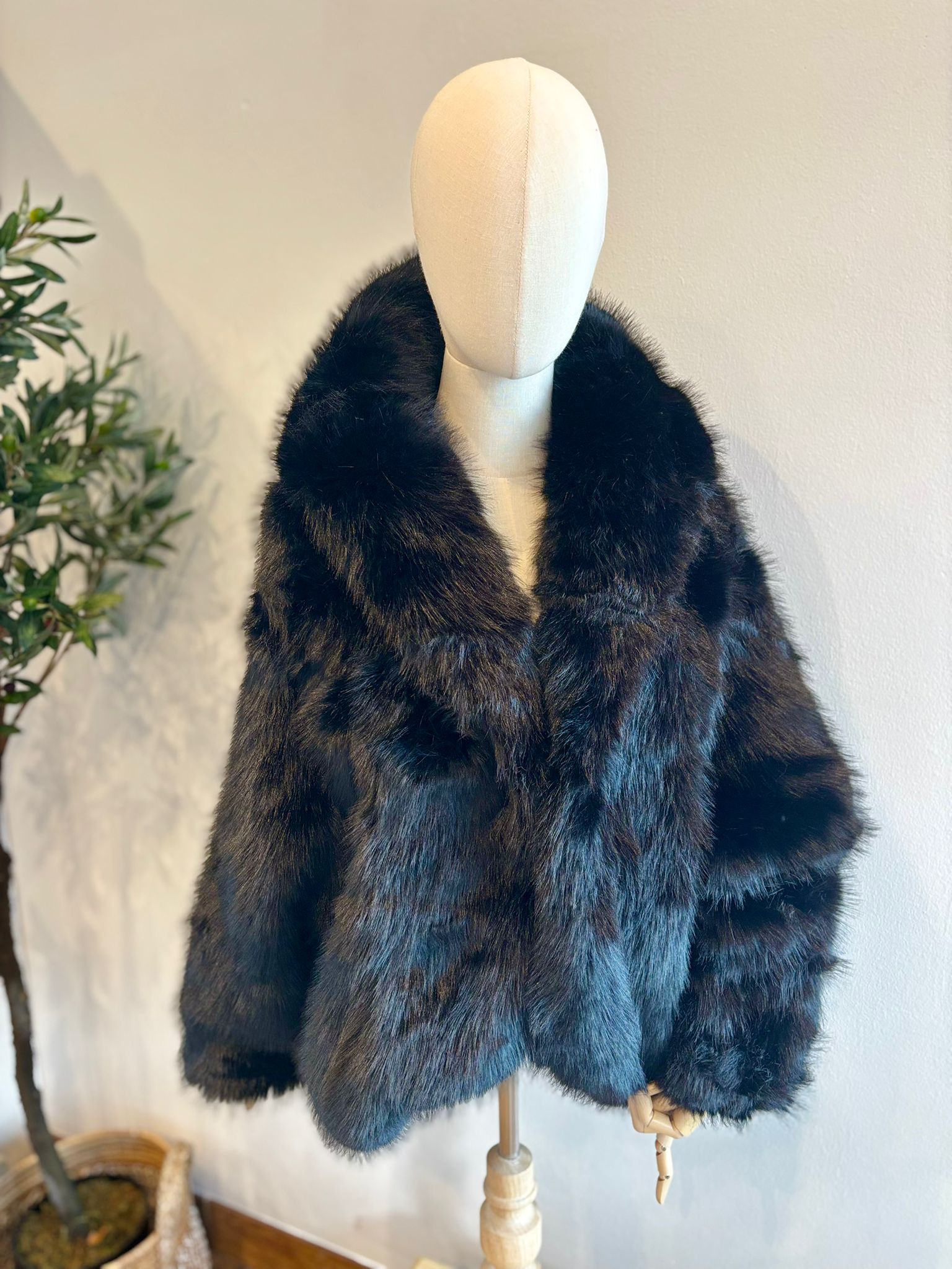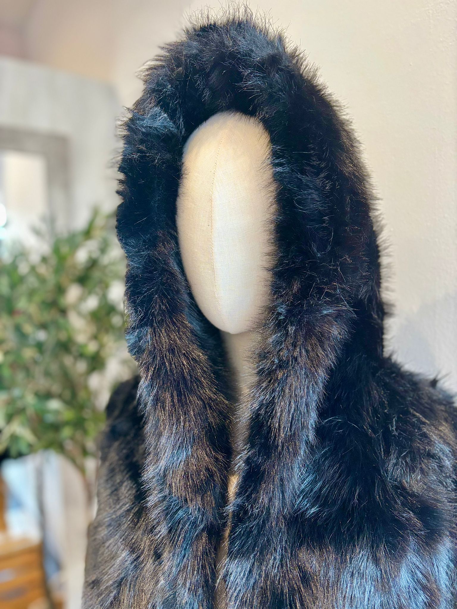 Abrigo PELO sintético con gorro negro