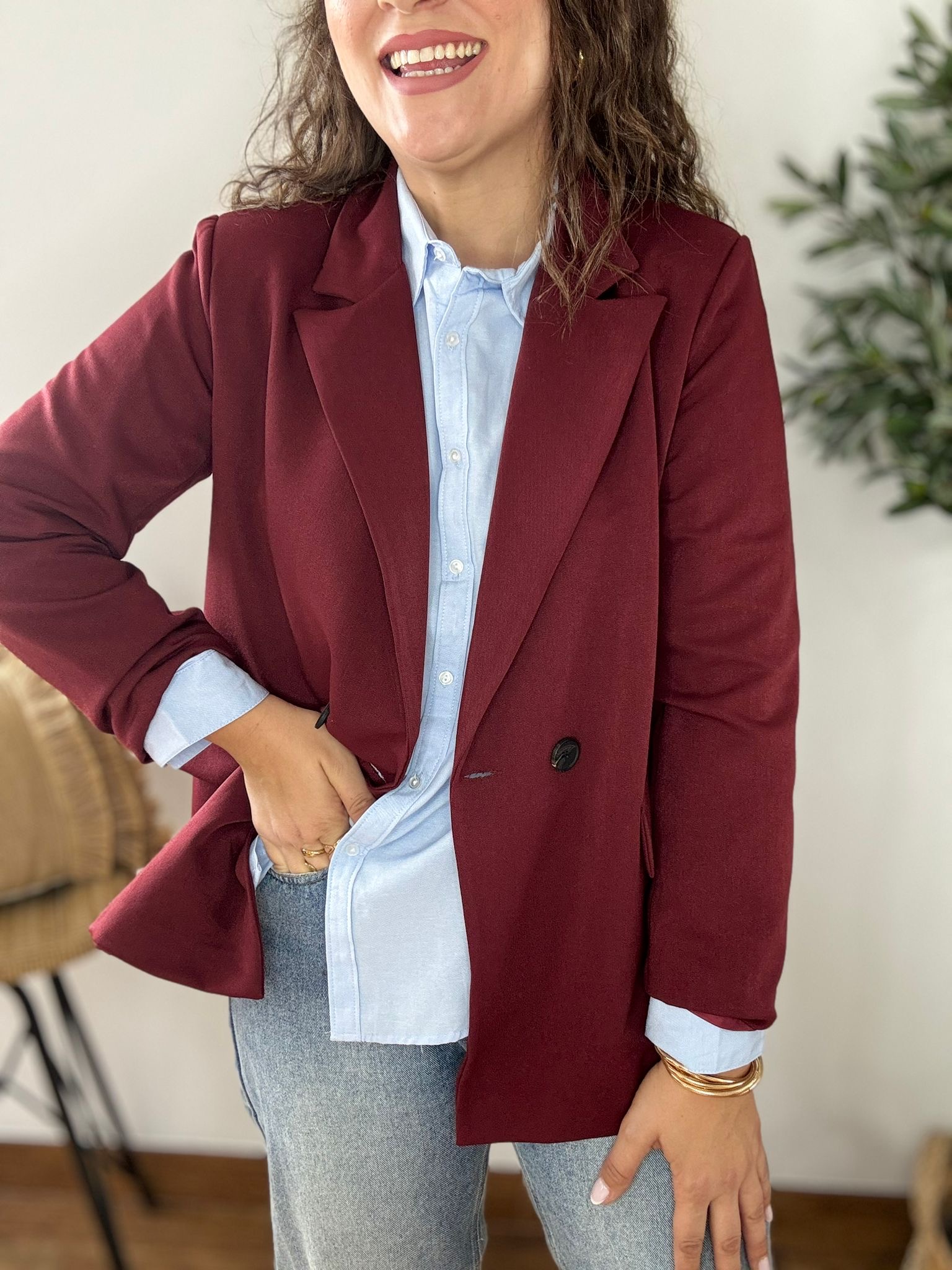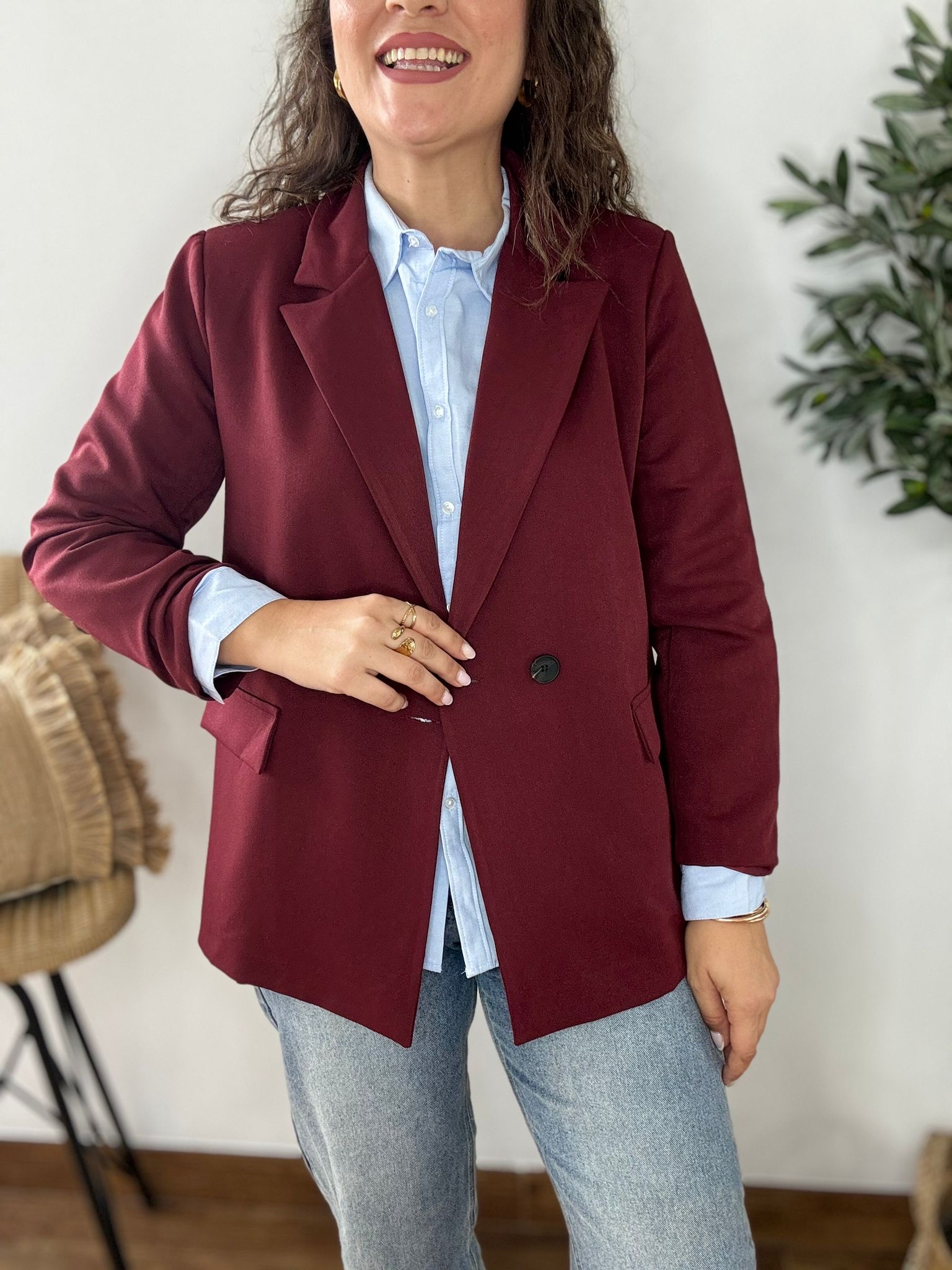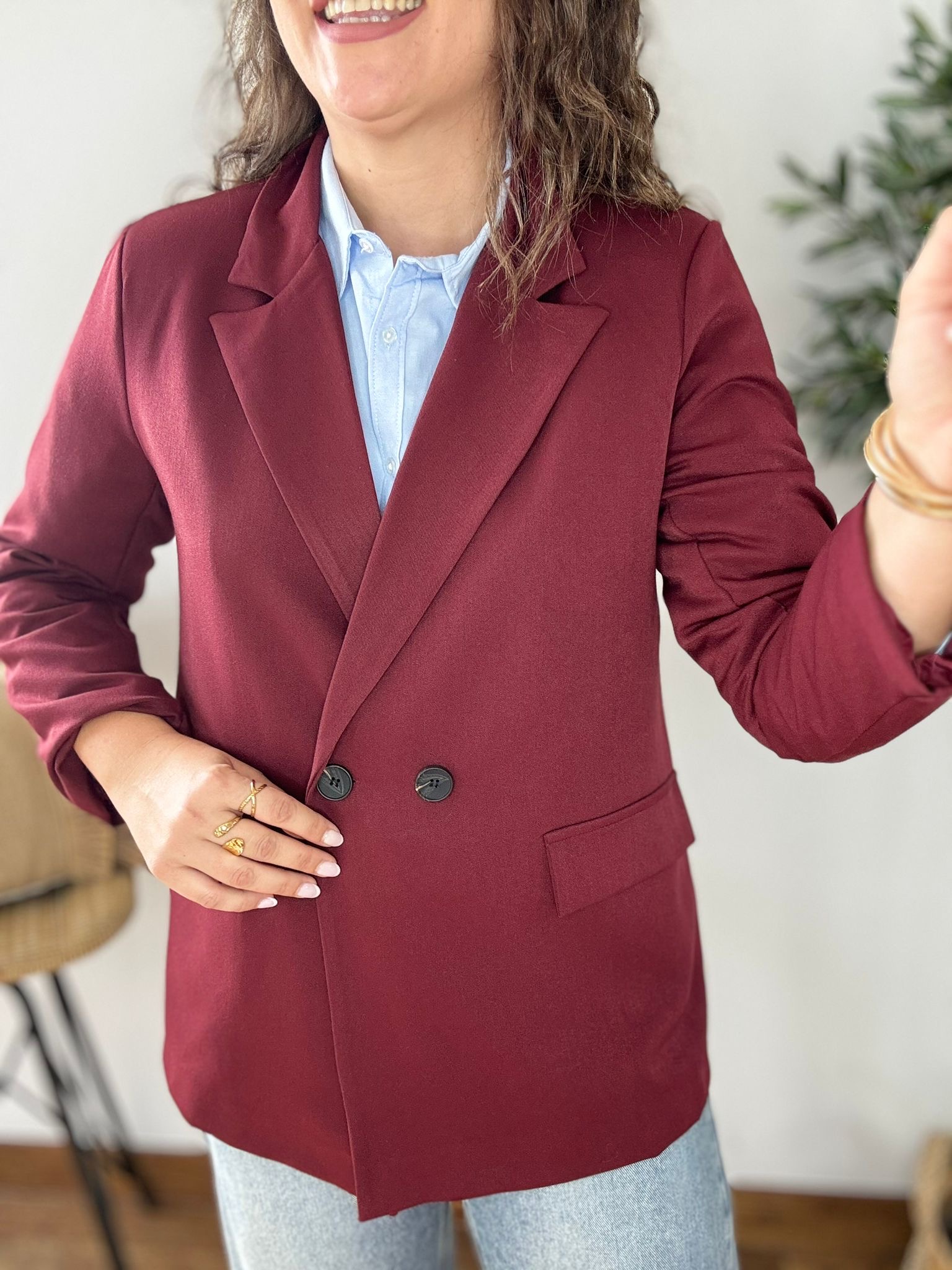 Americana de corte oversize con forro y hombreras. TU RECOMENDADA 38/44. Ana lleva habitualmente talla L 40/42 y mide 1.71m Medidas de la americana: contorno de pecho 110 , largo 79 y cadera 120cm