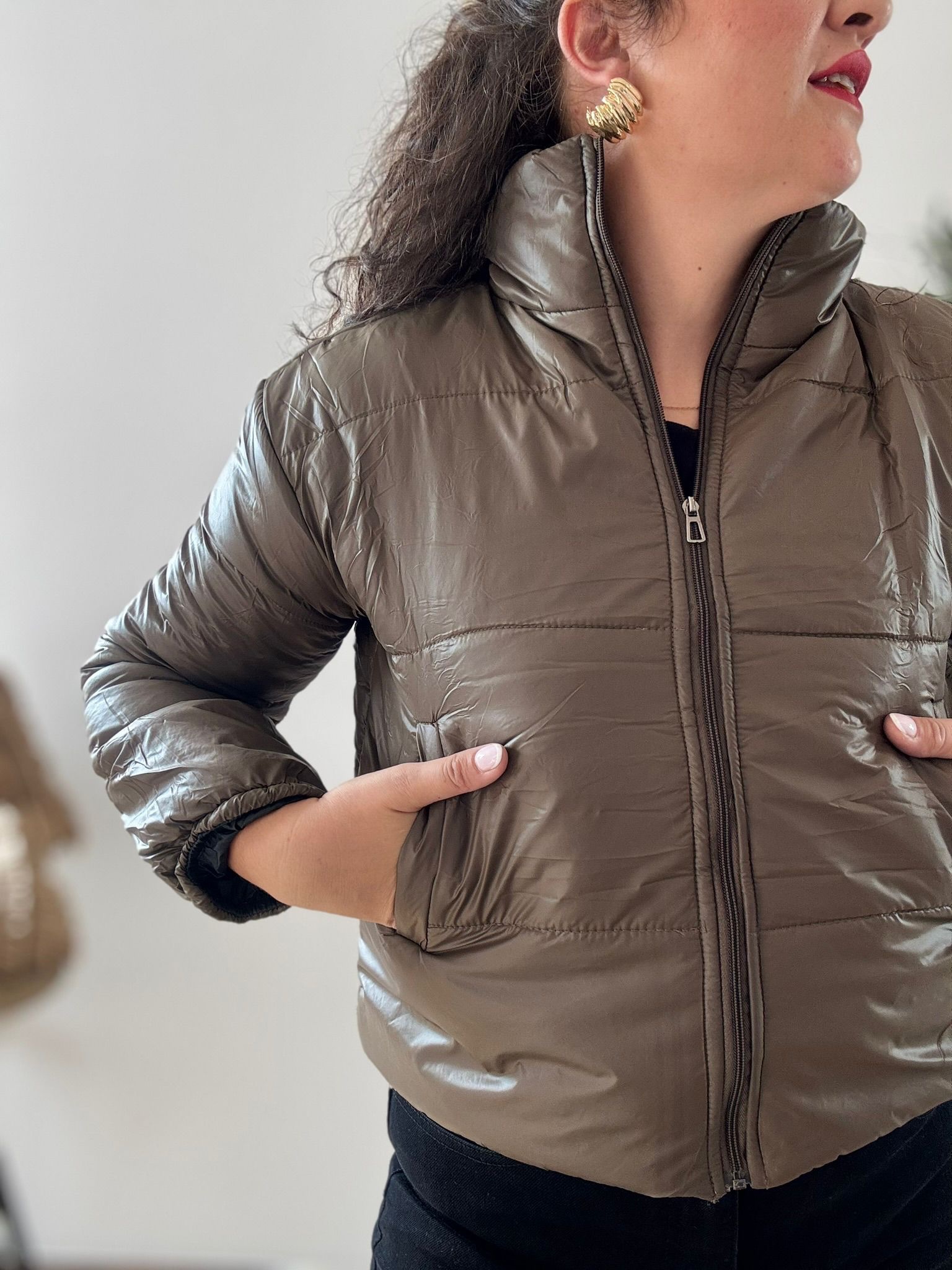Abrigo corto tipo anorak con cremallera y bolsillos. Es súper calentito y muy confortable. Ana lleva habitualmente talla L 40/42 y lleva de este modelo talla L.