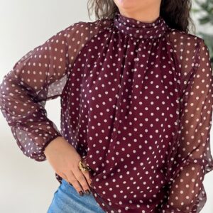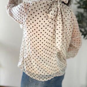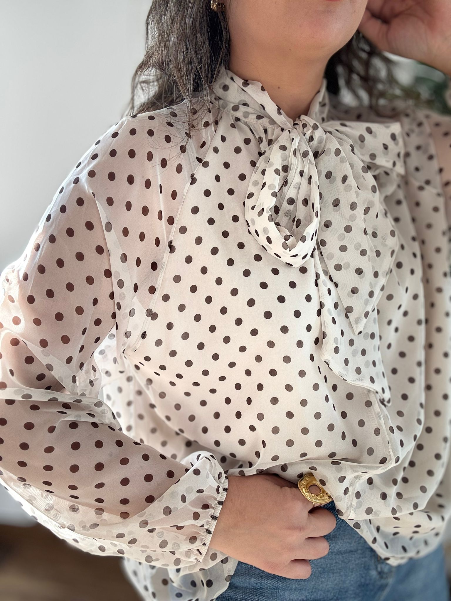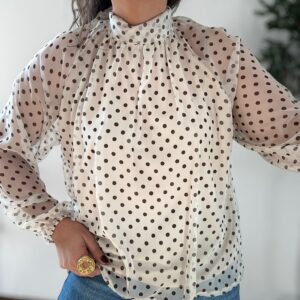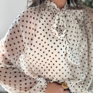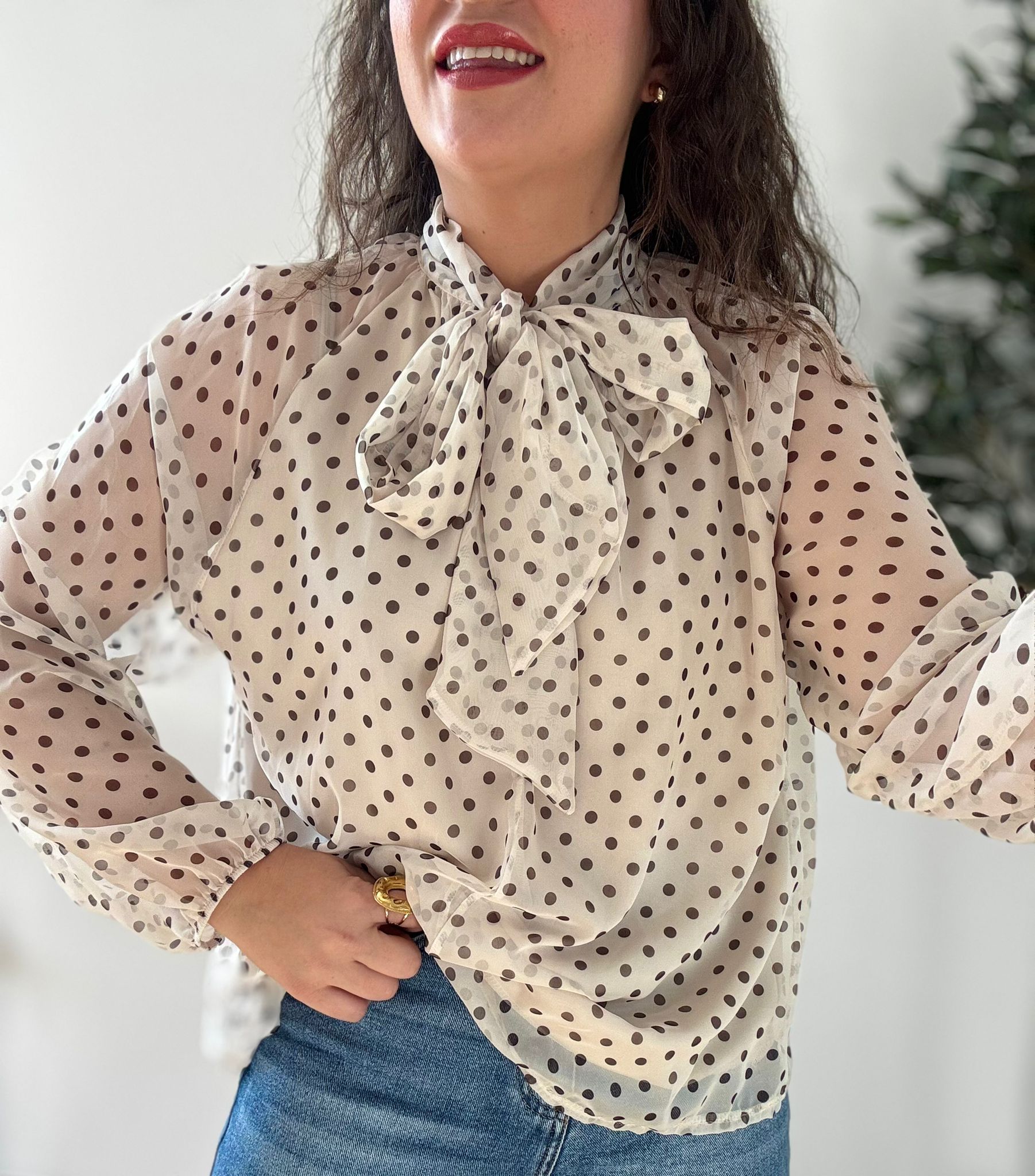 Blusa de gasa con forro y lazo que se puede llevar por delante o detrás. TU RECOMENDADA 36/44. Ana lleva habitualmente talla 40/42. Medida de contorno de pecho 120cm