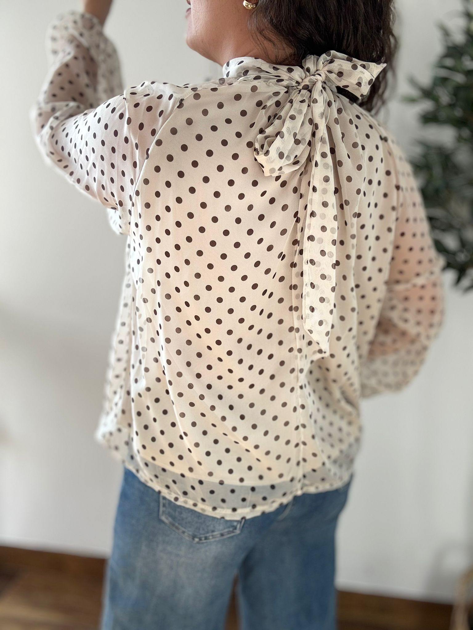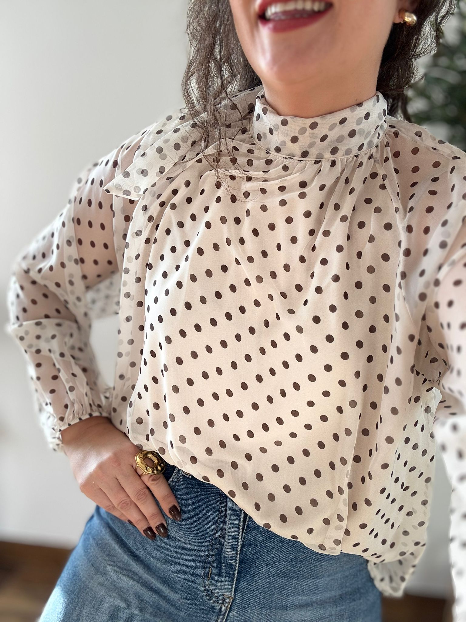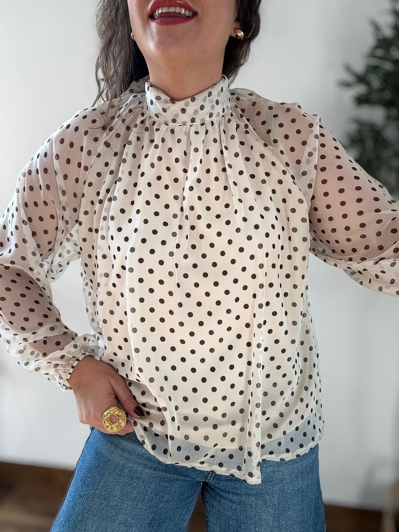 Blusa de gasa con forro y lazo que se puede llevar por delante o detrás. TU RECOMENDADA 36/44. Ana lleva habitualmente talla 40/42. Medida de contorno de pecho 120cm