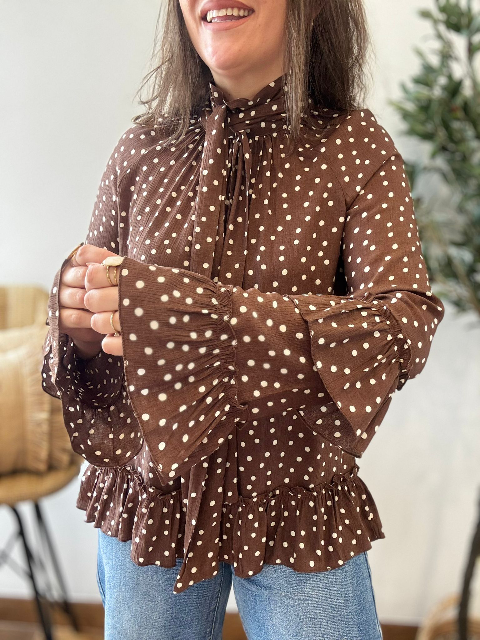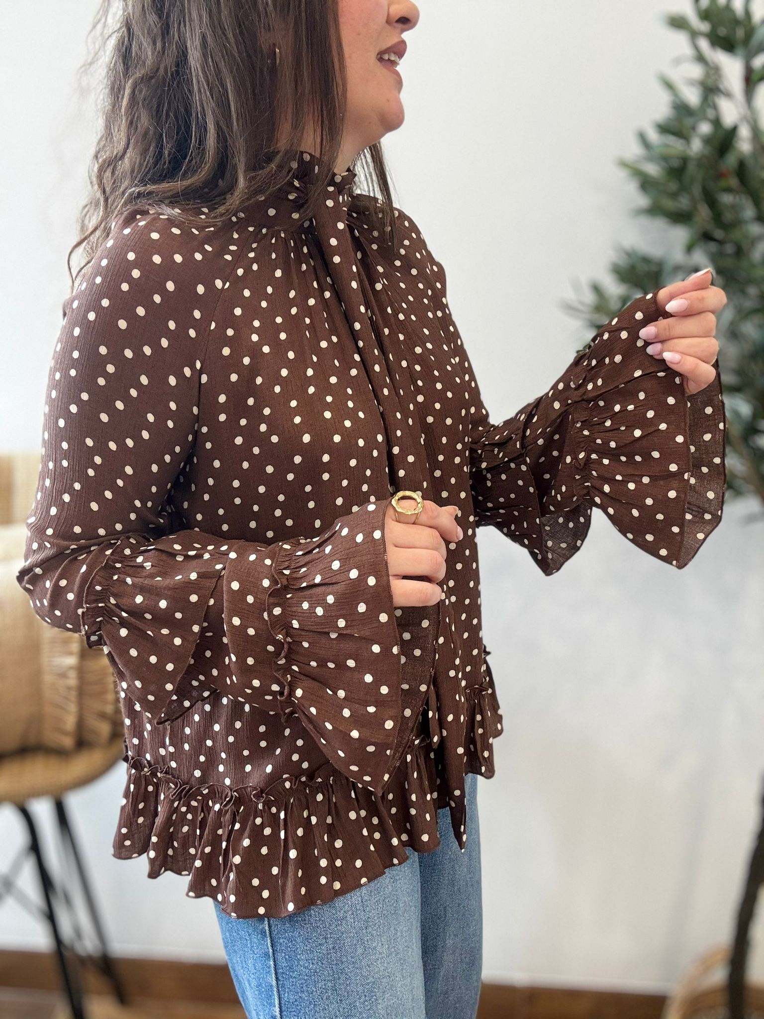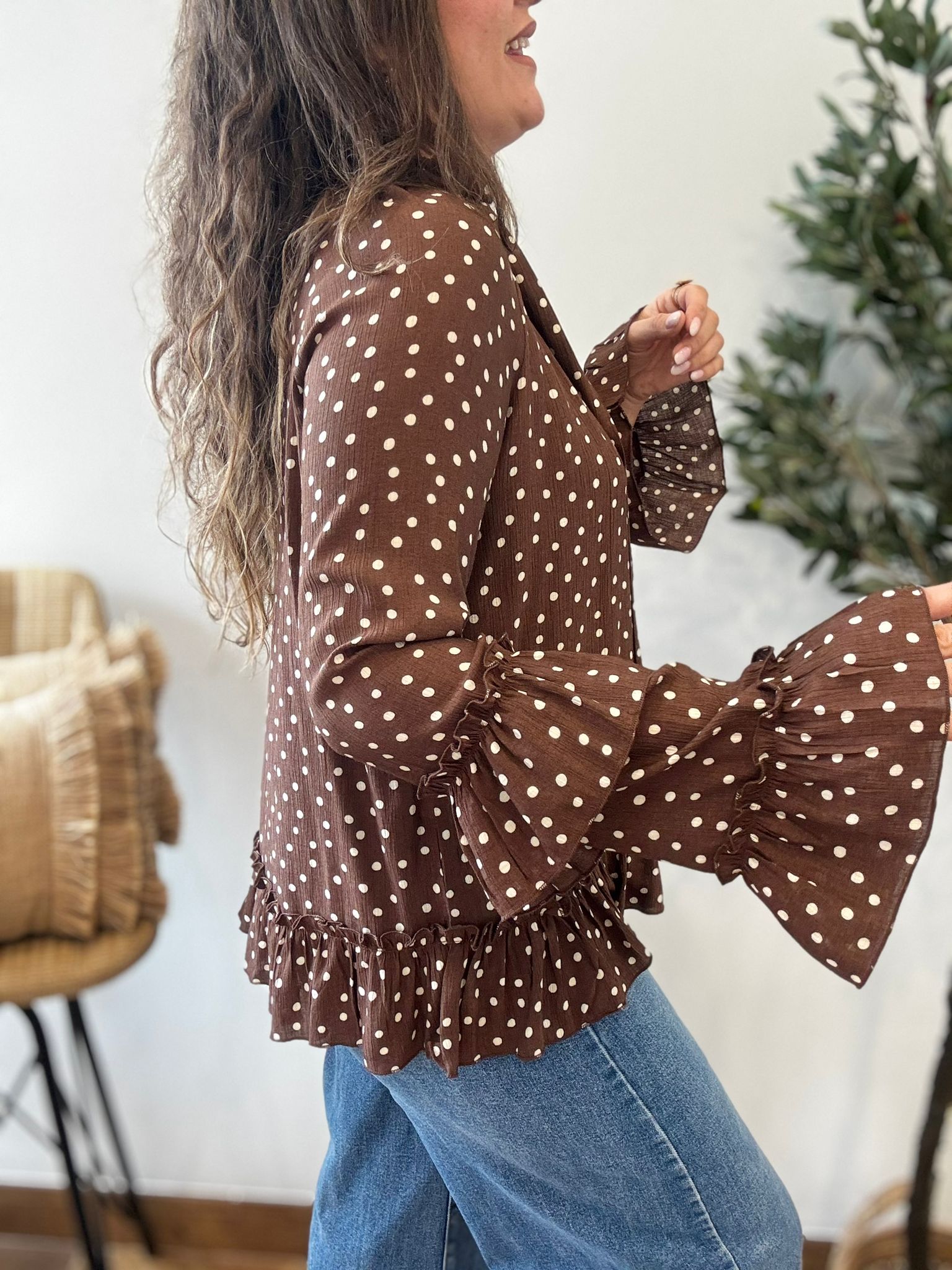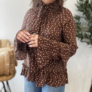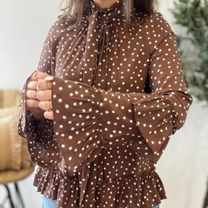 Blusa LUNARES y volantes chocolate