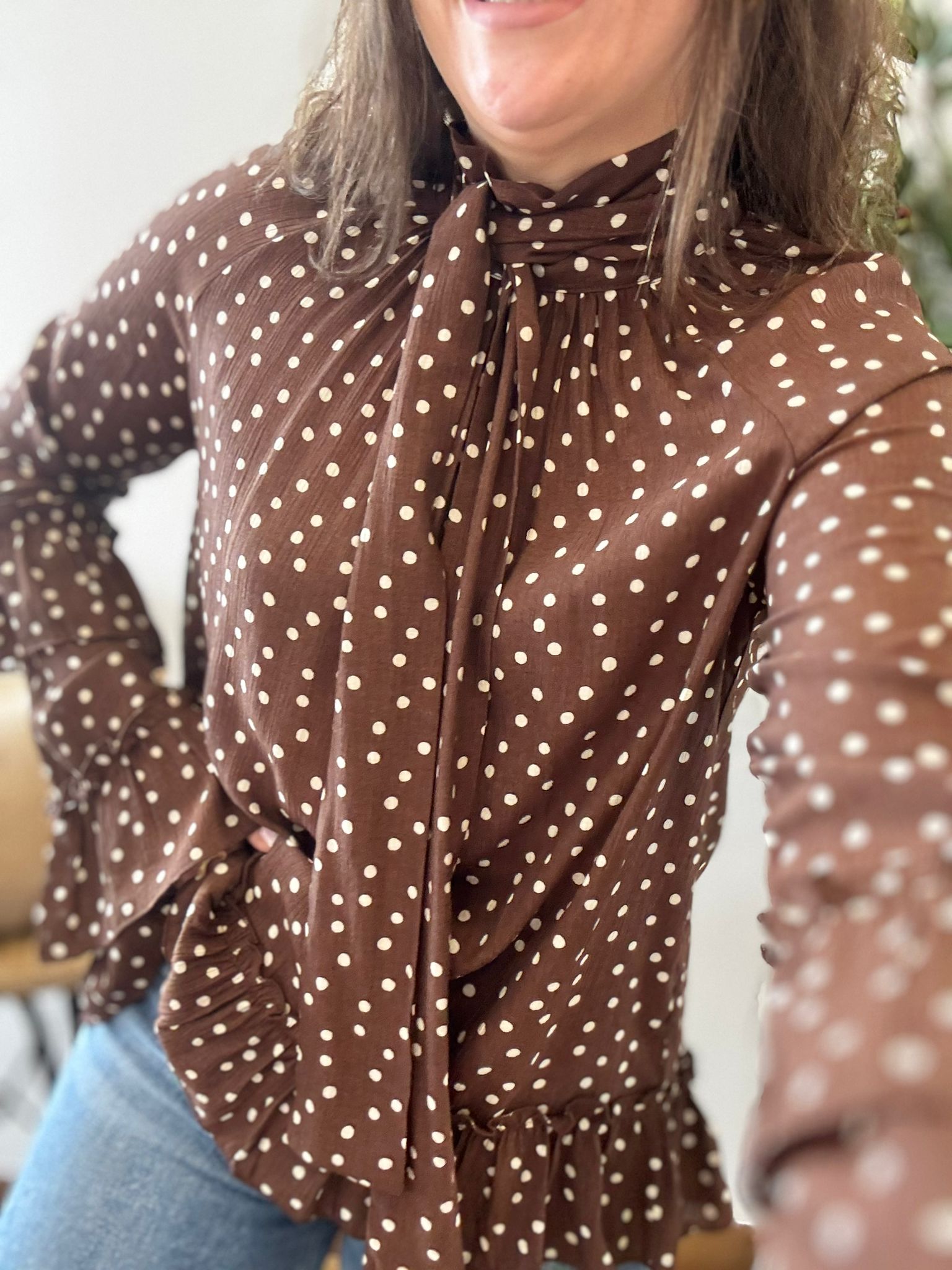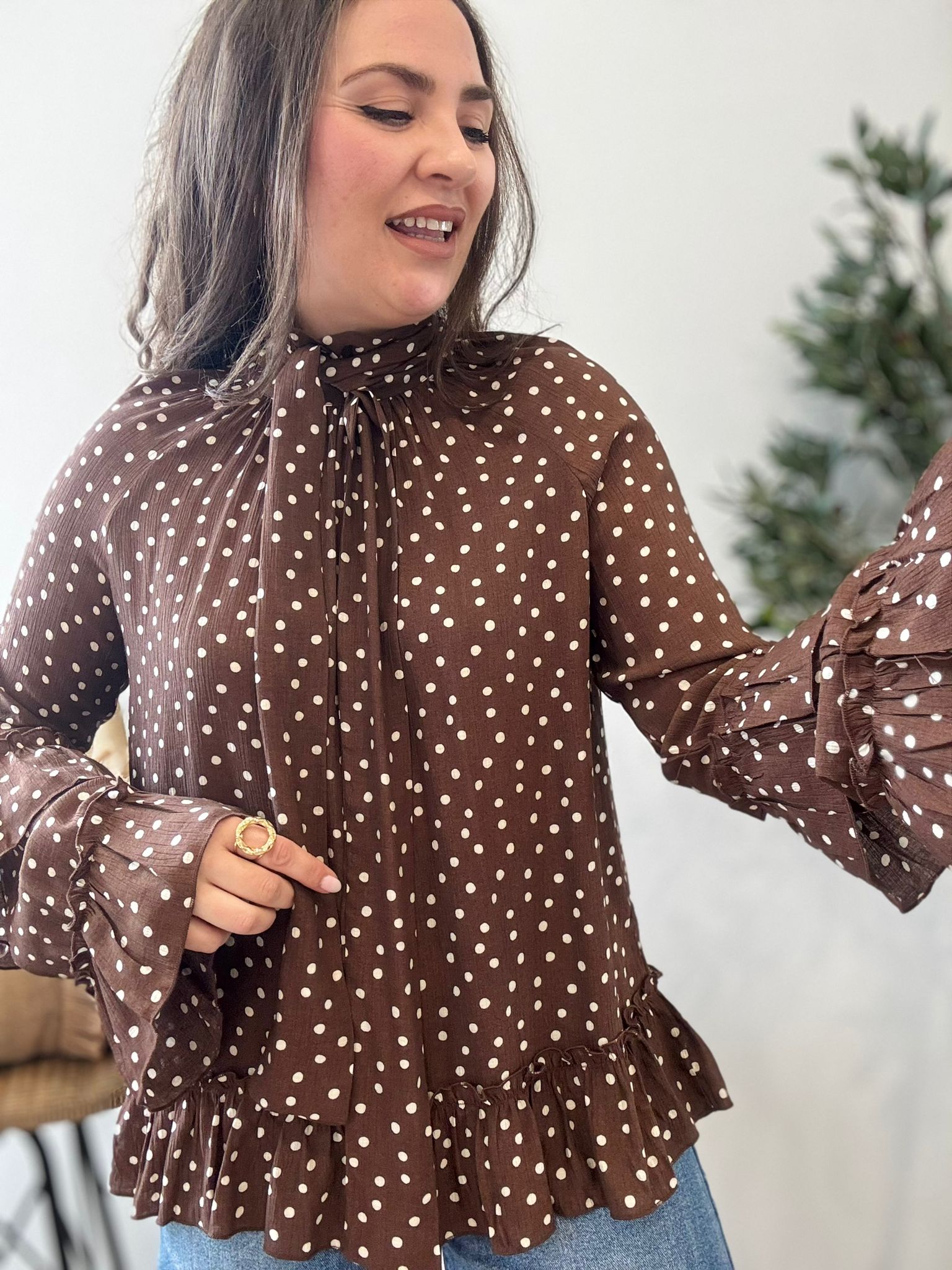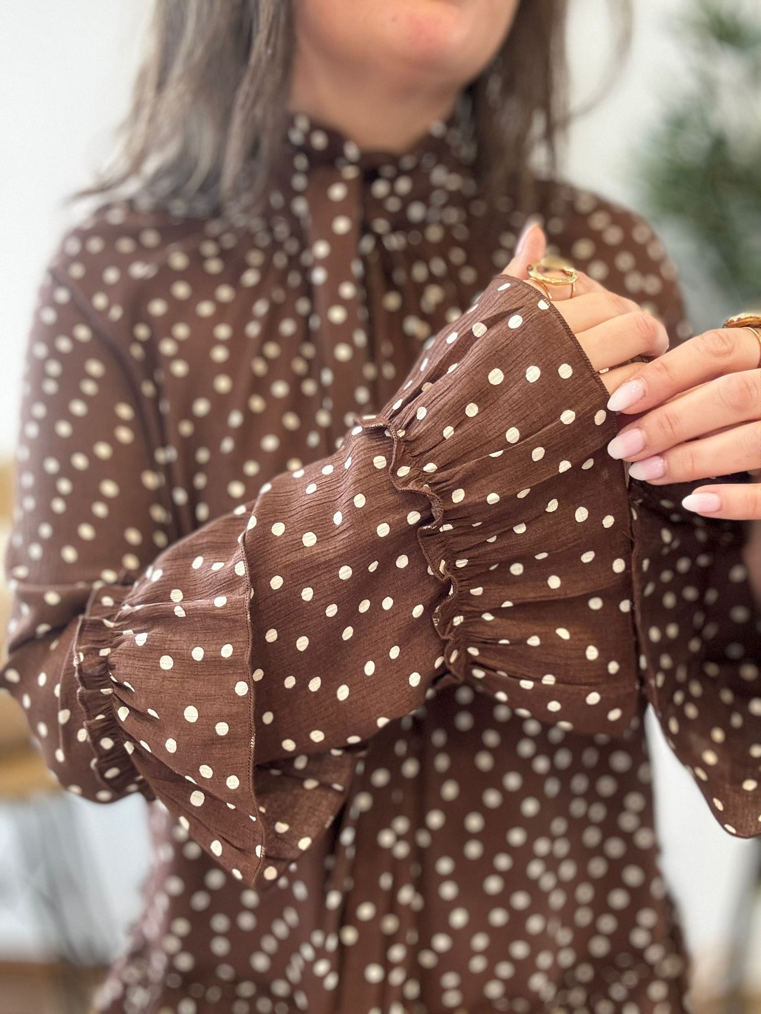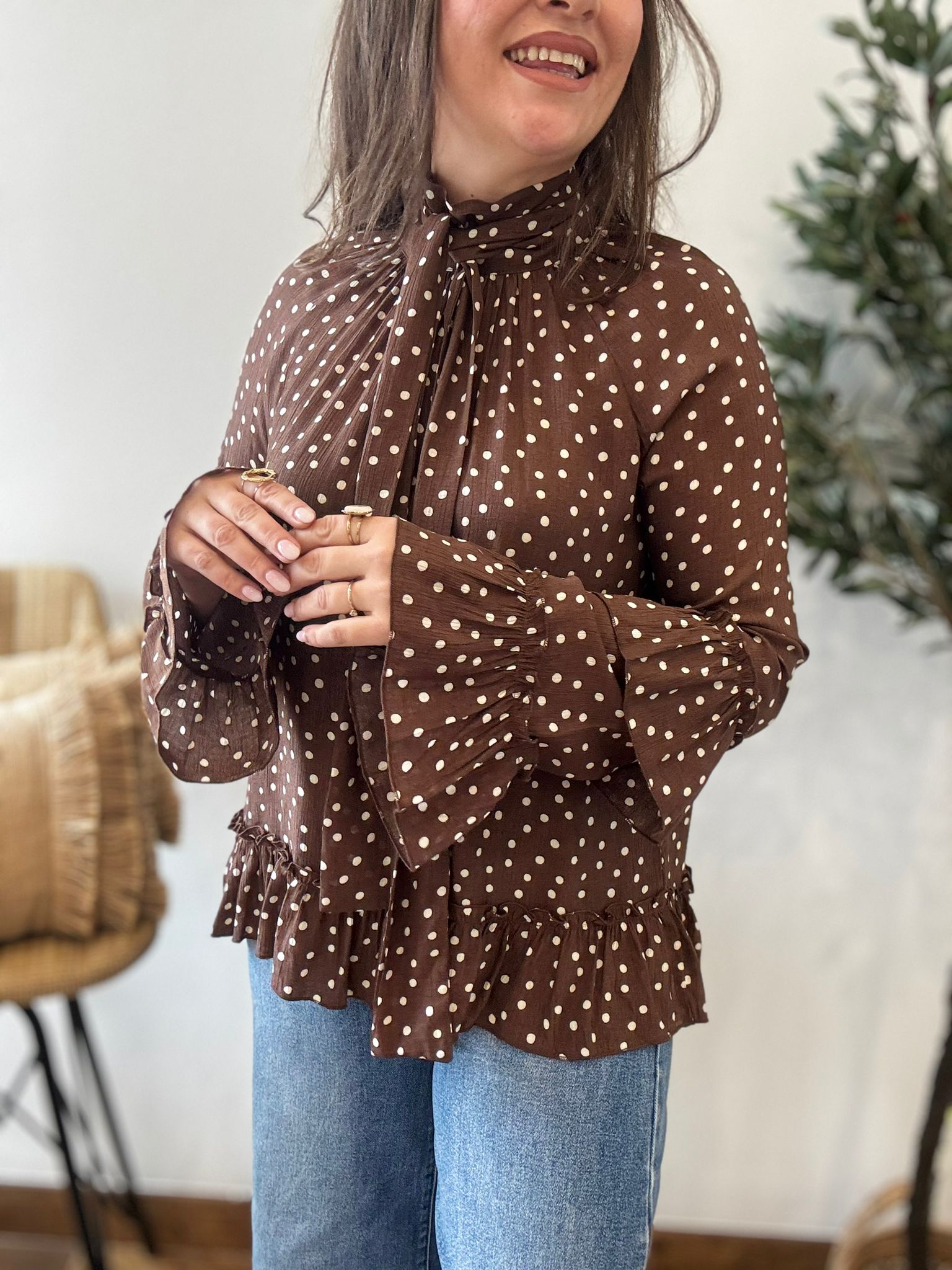 Blusa LUNARES y volantes chocolate