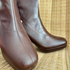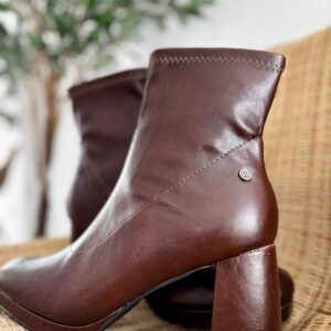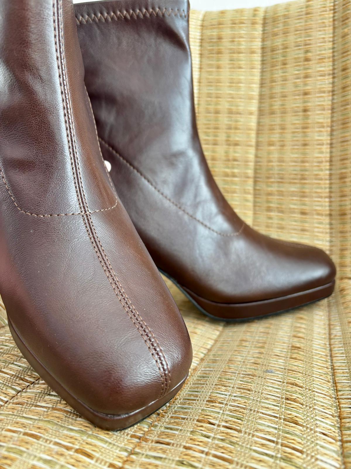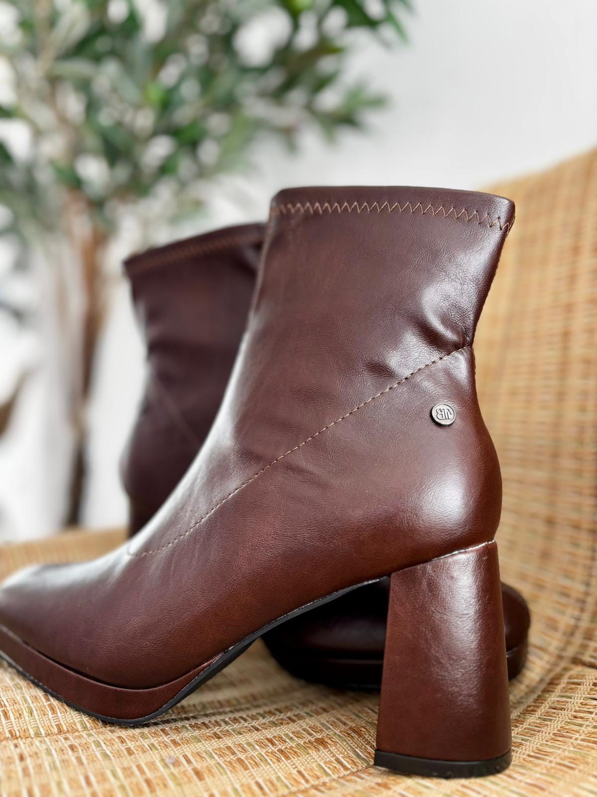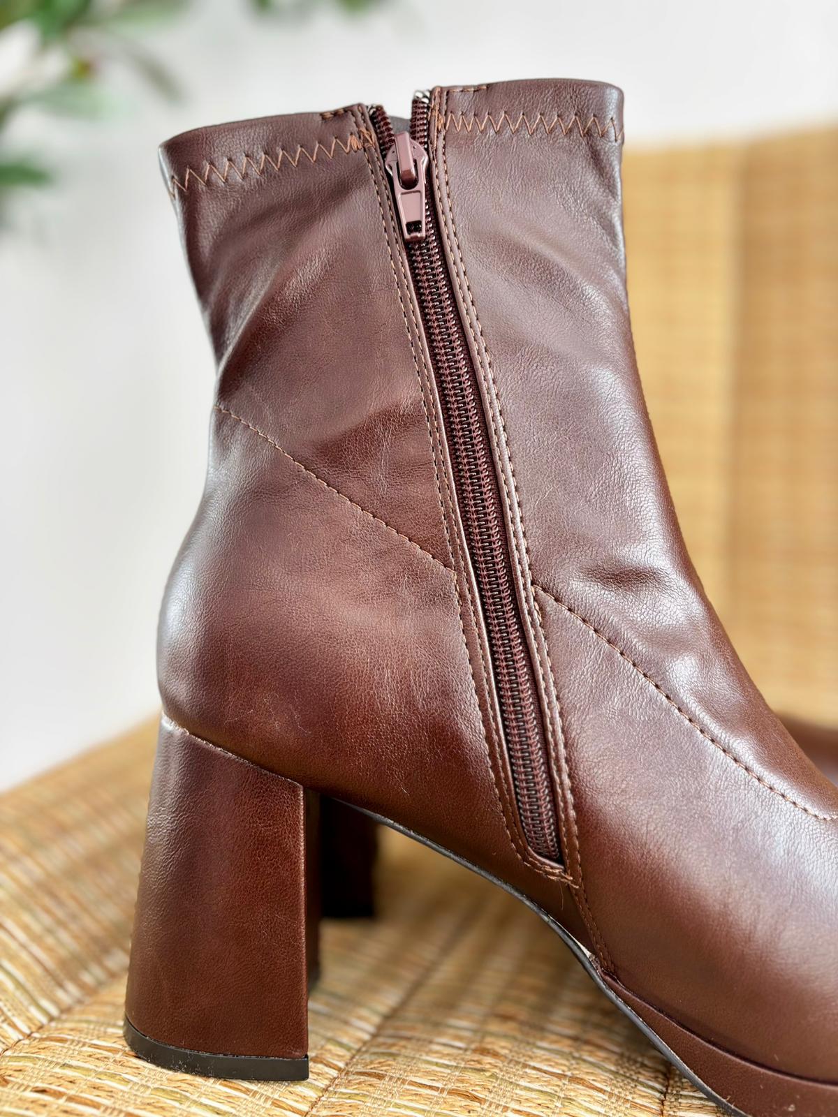 Botines de material con cremallera interior y tacón gordito. Tienen plataforma y punta redondeada para máxima comodidad. TALLAN A SU NÚMERO. Altura del tacón 8cm plataforma 1cm
