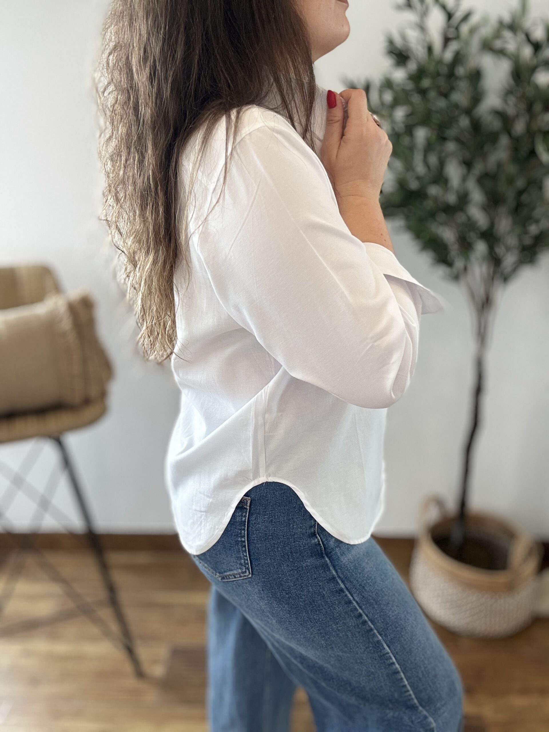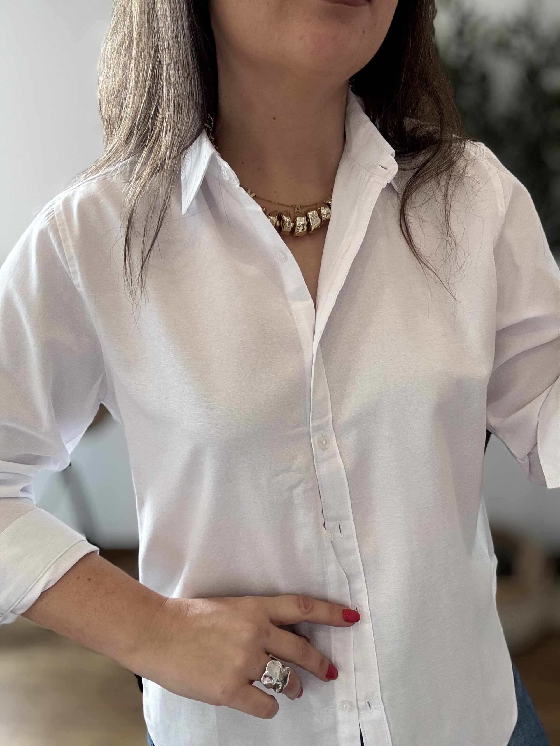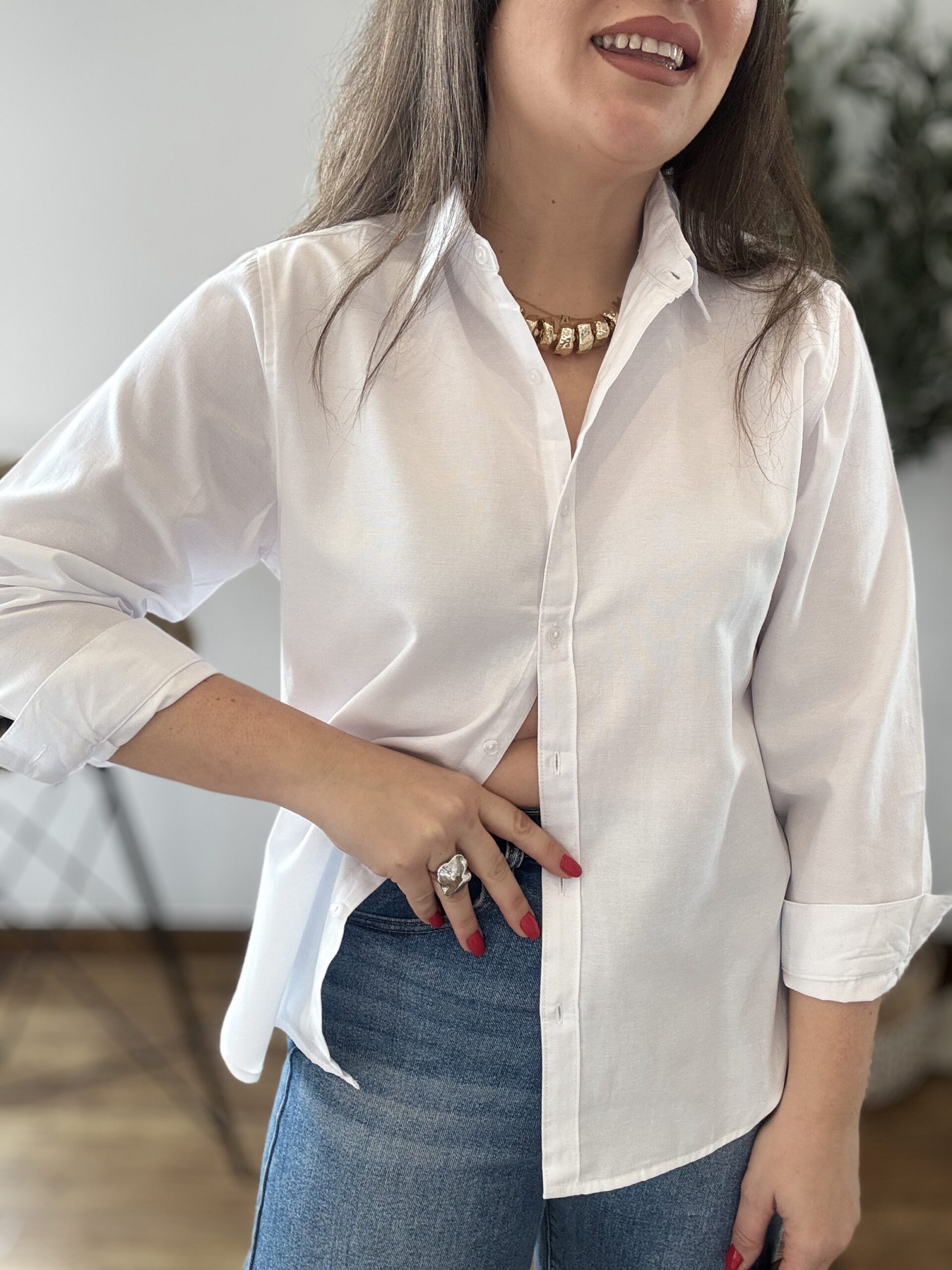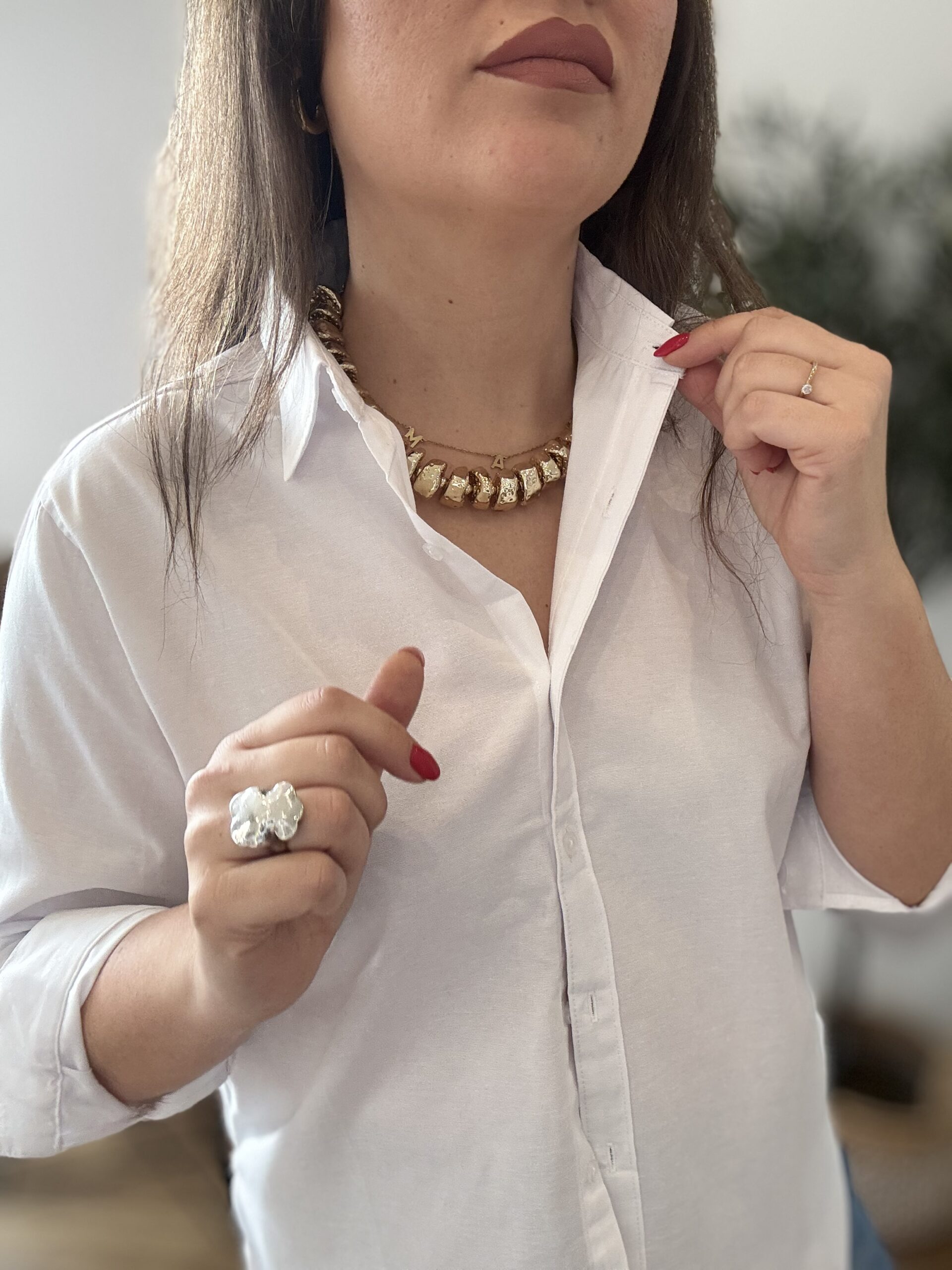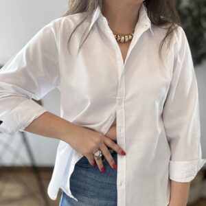 Camisa de algodón básica de calidad premium. Tallan un poquito grandes. Ana lleva habitualmente talla L y de este modelo lleva puesto talla M. Medidas y corresdencia de tallas: S 36/38 contorno de pecho 106, M 38/40 contorno de pecho 112, L 42/44 contorno de pecho 118cm