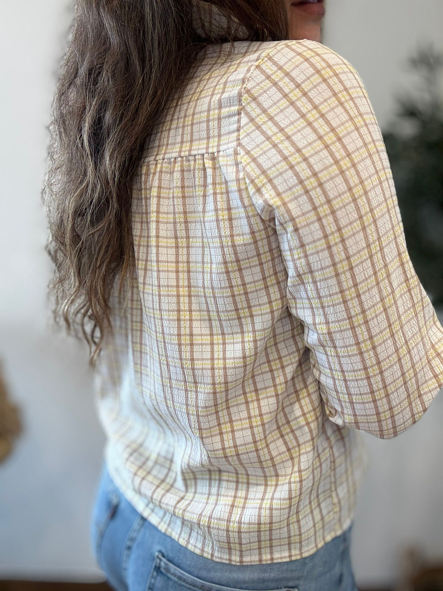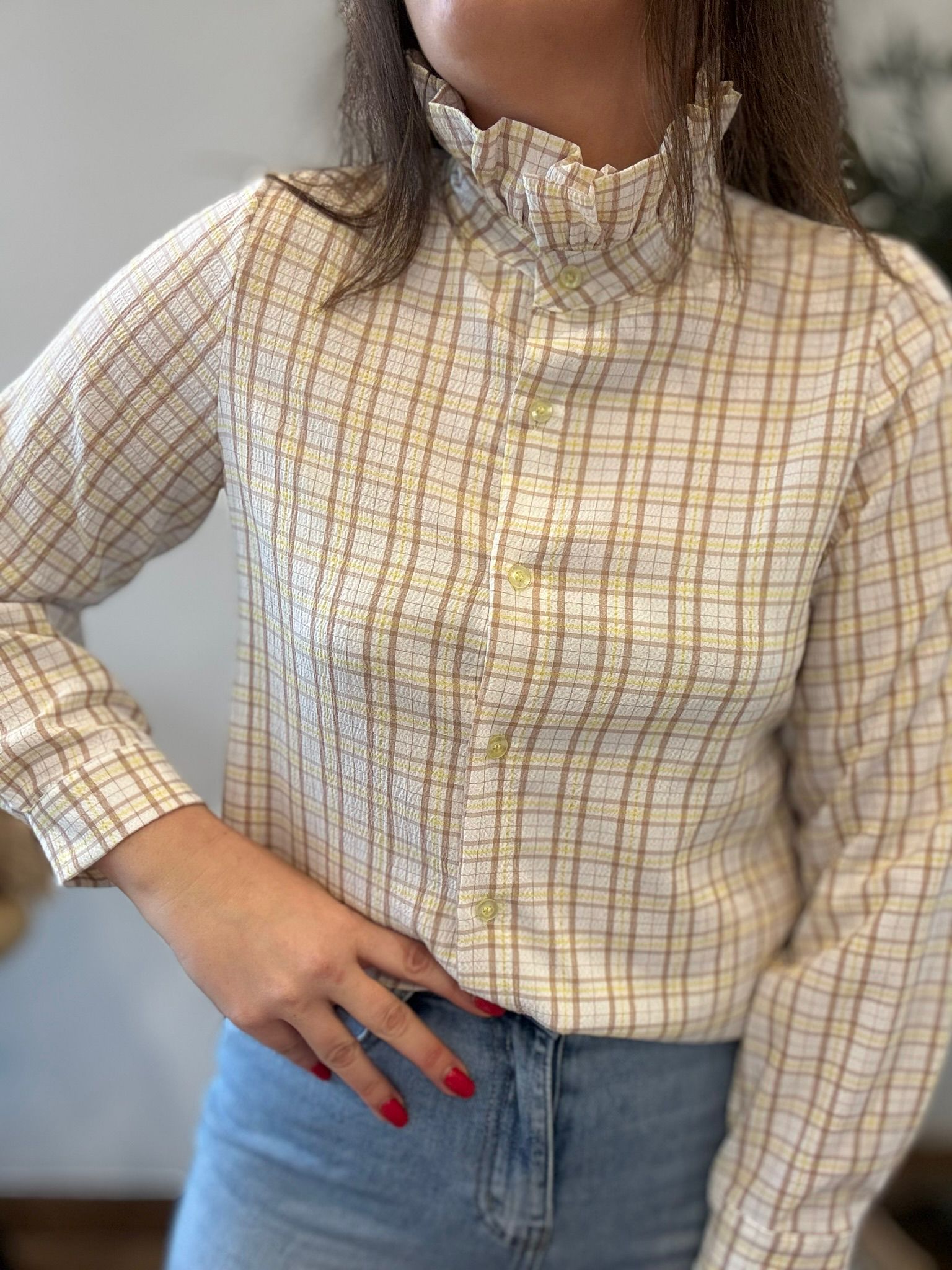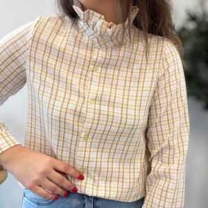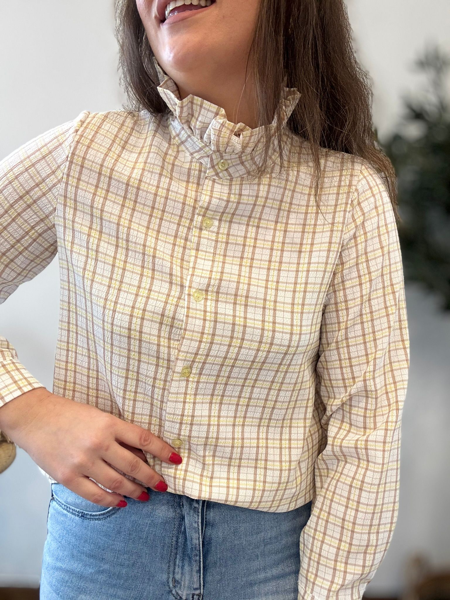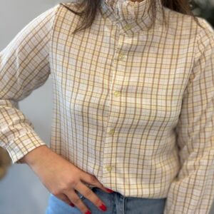 Camisa estampada con cuello chimenea. TU RECOMENDADA 36/42. Ana lleva habitualmente talla L/40. Medida de la camisa: contorno de pecho 104cm