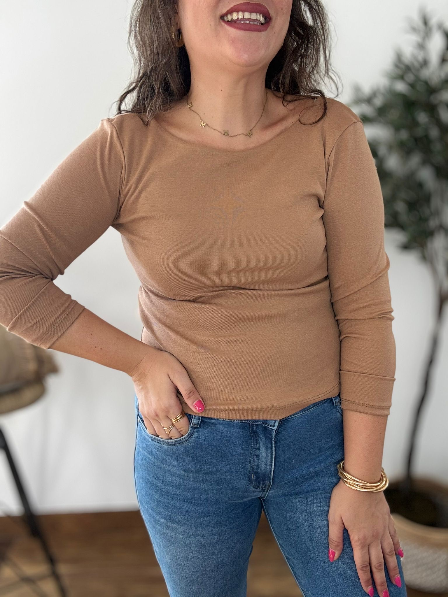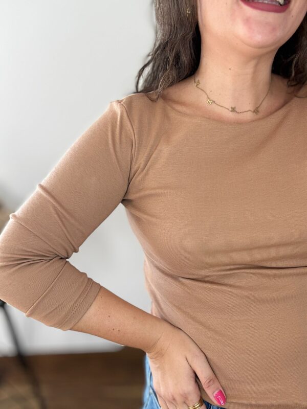 Camiseta de cuello redondo de algodón básica ideal para llevar sola o debajo de tu prenda favorita. TU RECOMENDADA 34/42. Ana lleva habitualmente talla L 40/42.