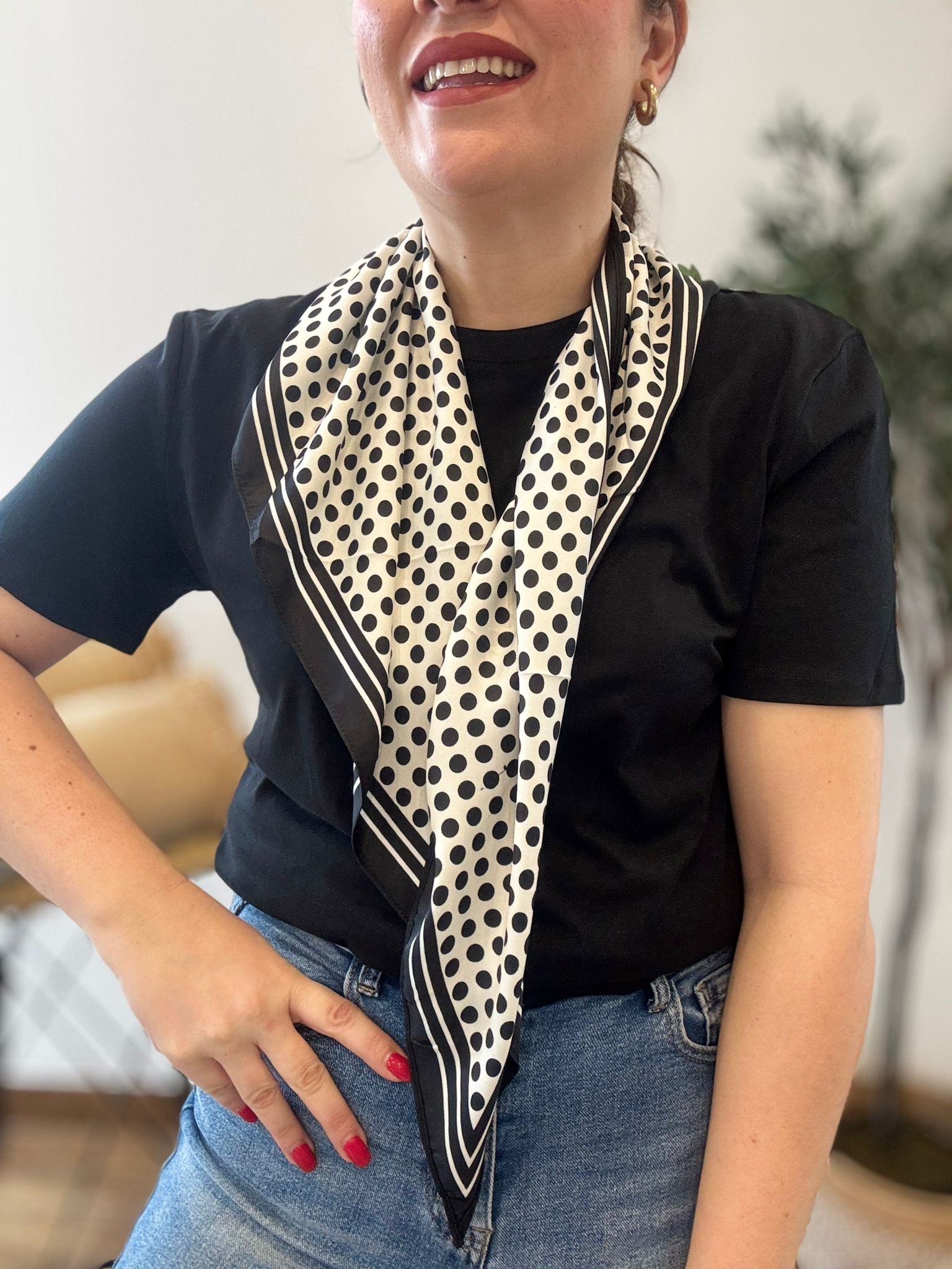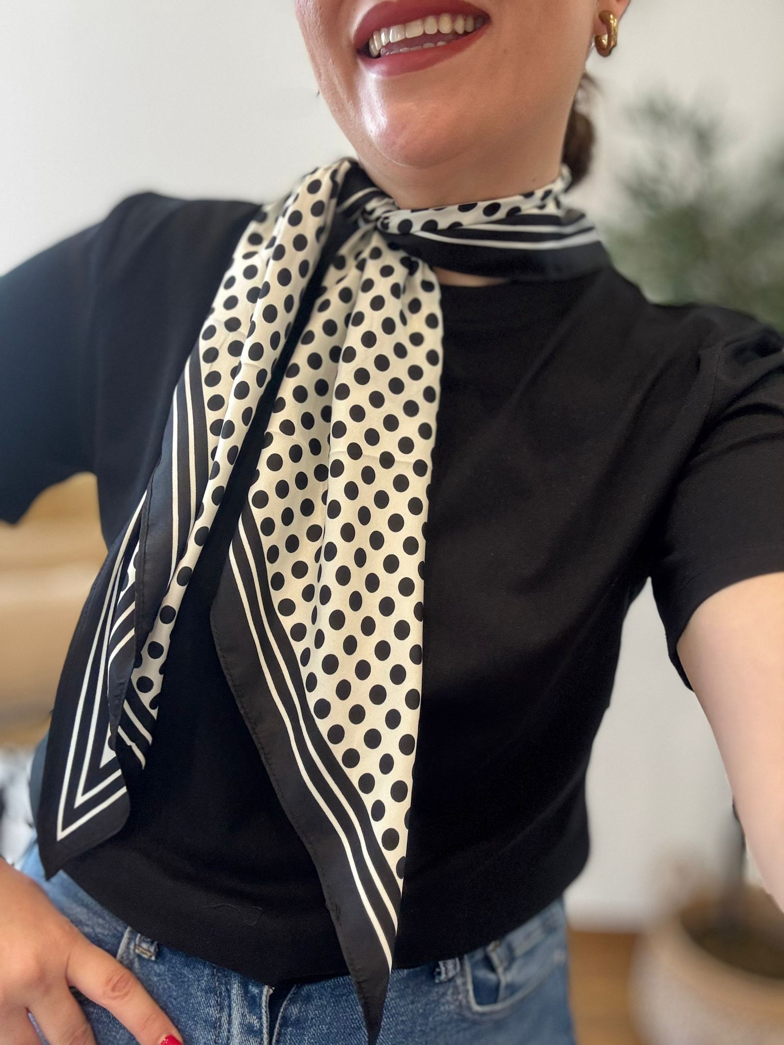 Camiseta básica de manga corta en algodón. TU RECOMENDADA 36/44. Ana lleva habitualmente talla L/40. Medidas de la camiseta contorno de pecho 110 y largo 70cm