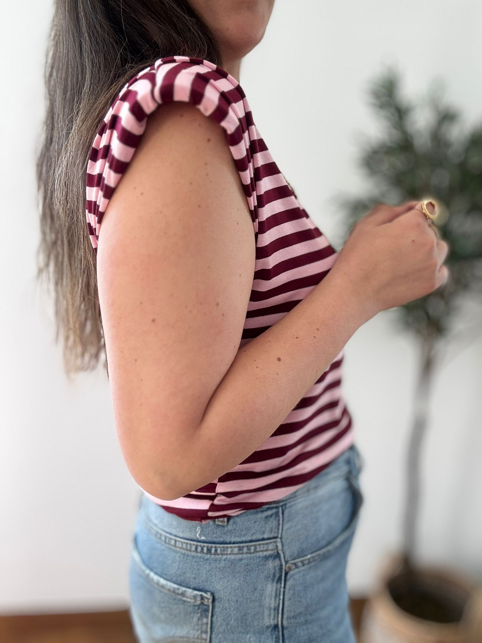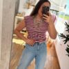 Camiseta de algodón en manga sisa ideal con hombreras que estilizan y arman tu look.