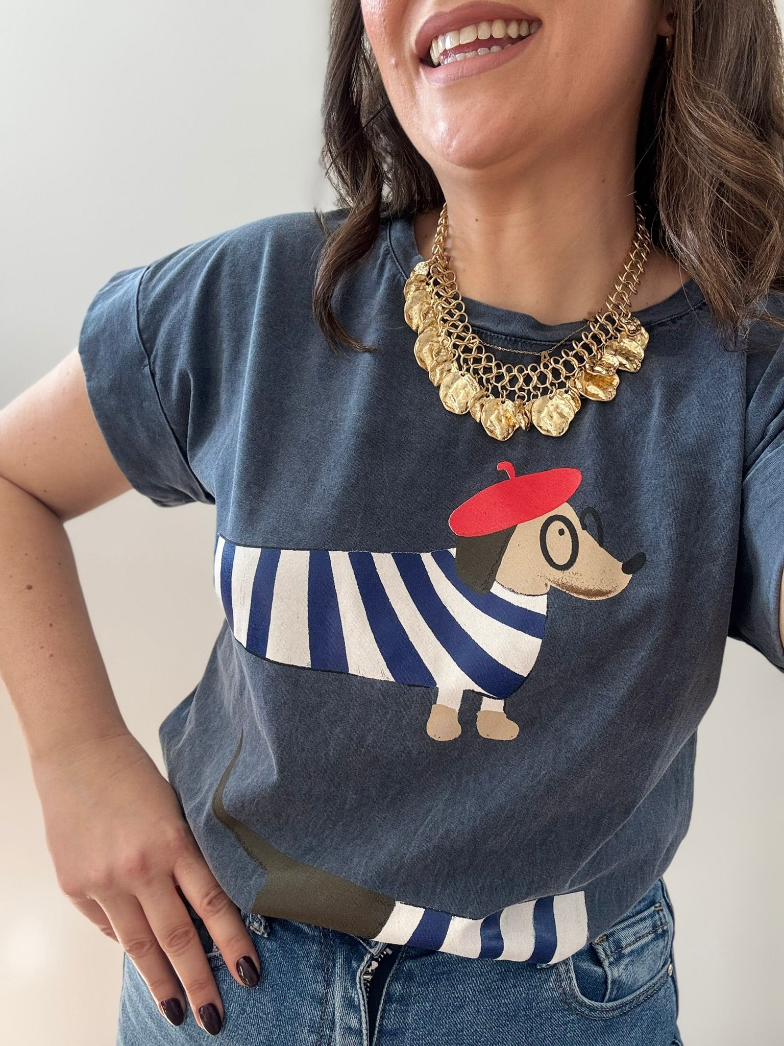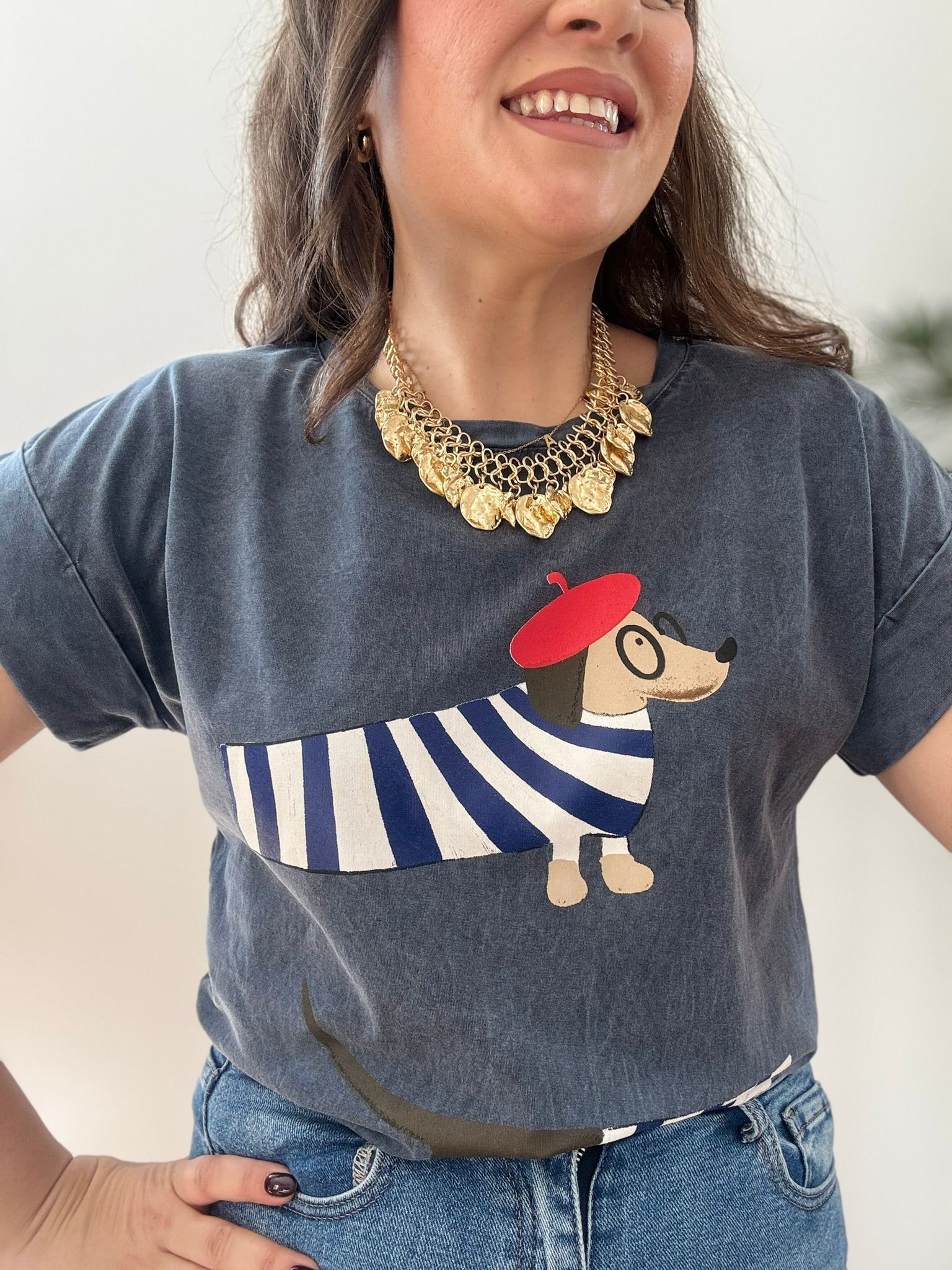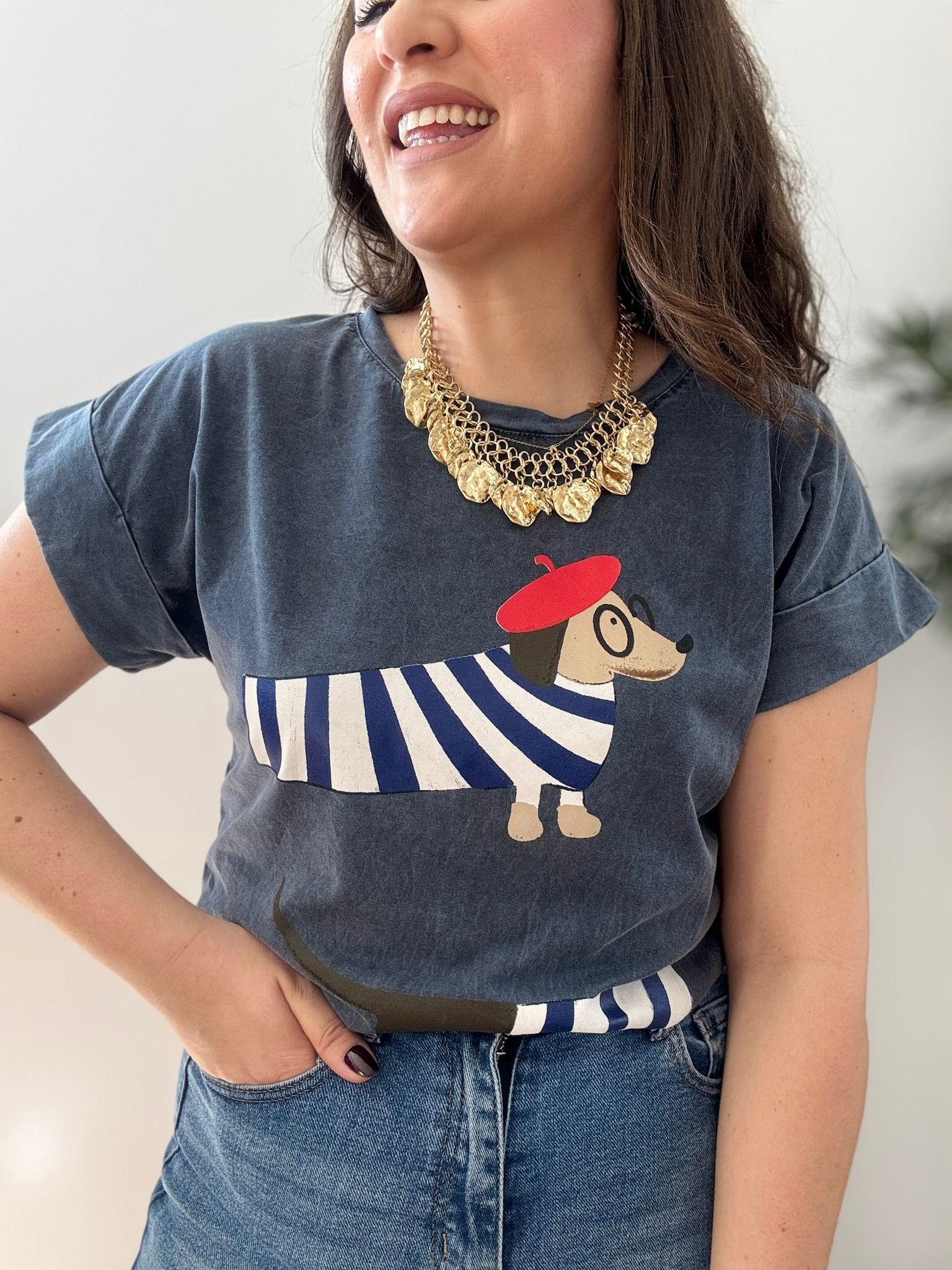 Camiseta de algodón con dibujo en tejido algodón lavado.