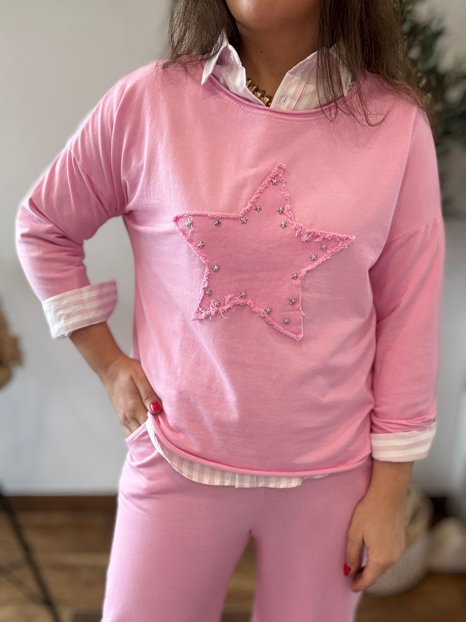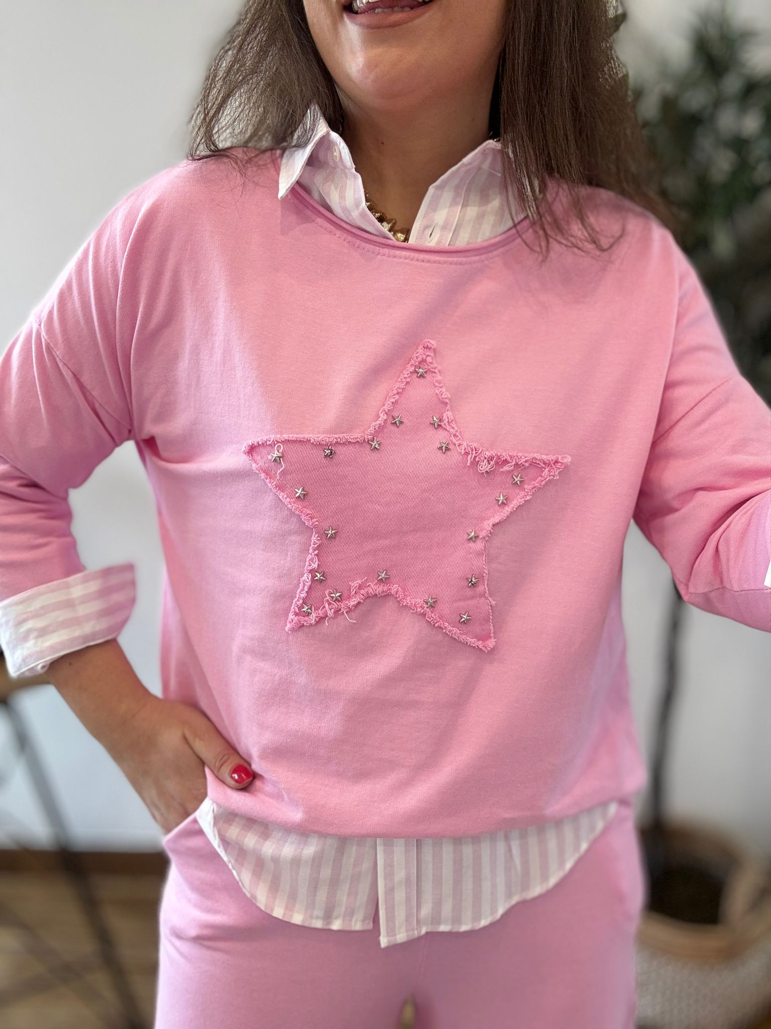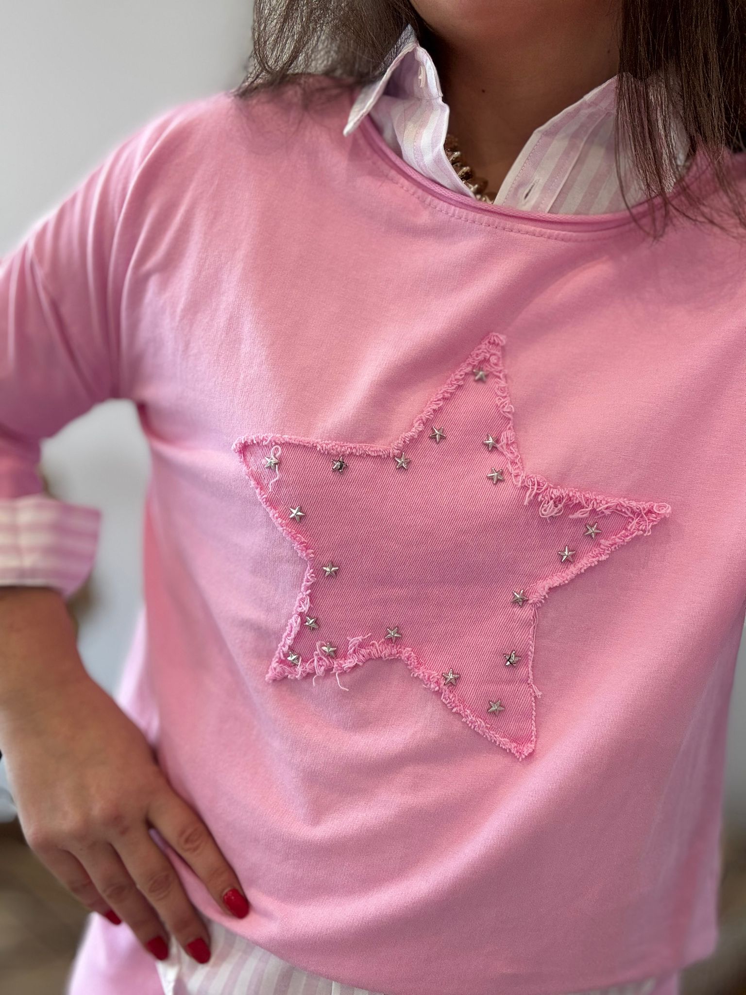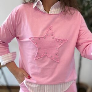 Camiseta STAR rosa tachuelas