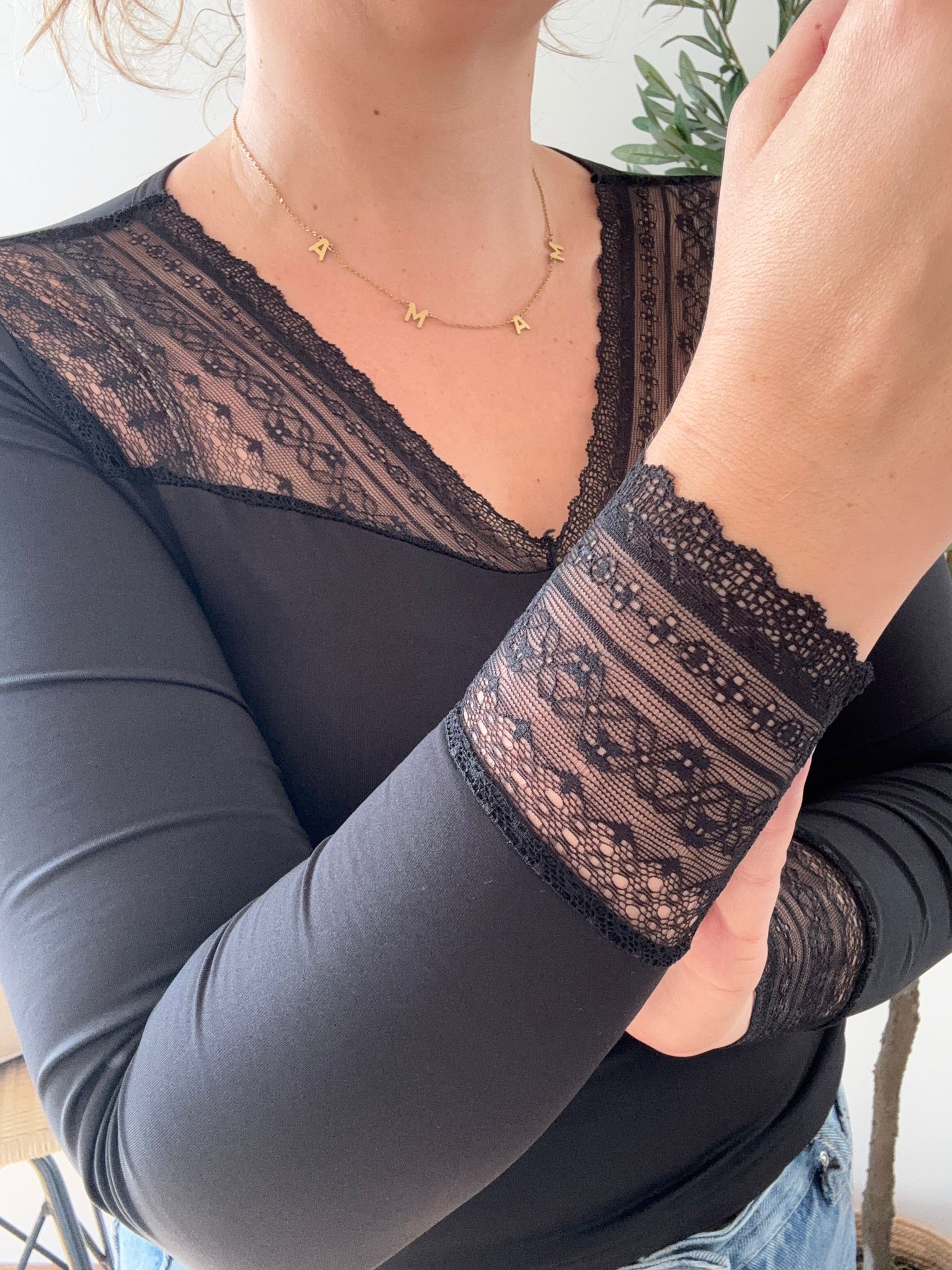 Camiseta térmica con detalle de encajes en puños y escote. Tejido elástico de gran adaptabilidad. Fibra elástica con efecto termoregulador que permite la transpiración del cuerpo y al mismo tiempo la retención del calor.