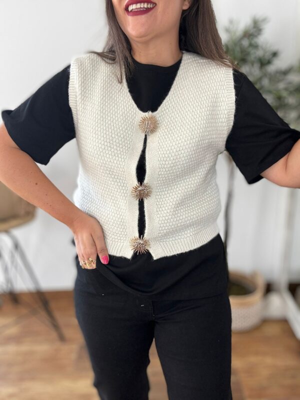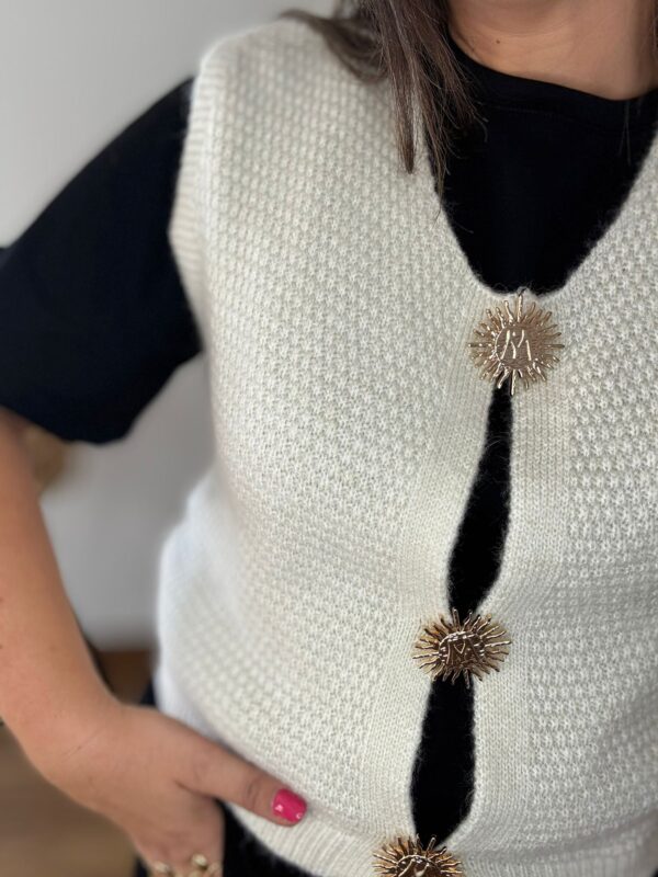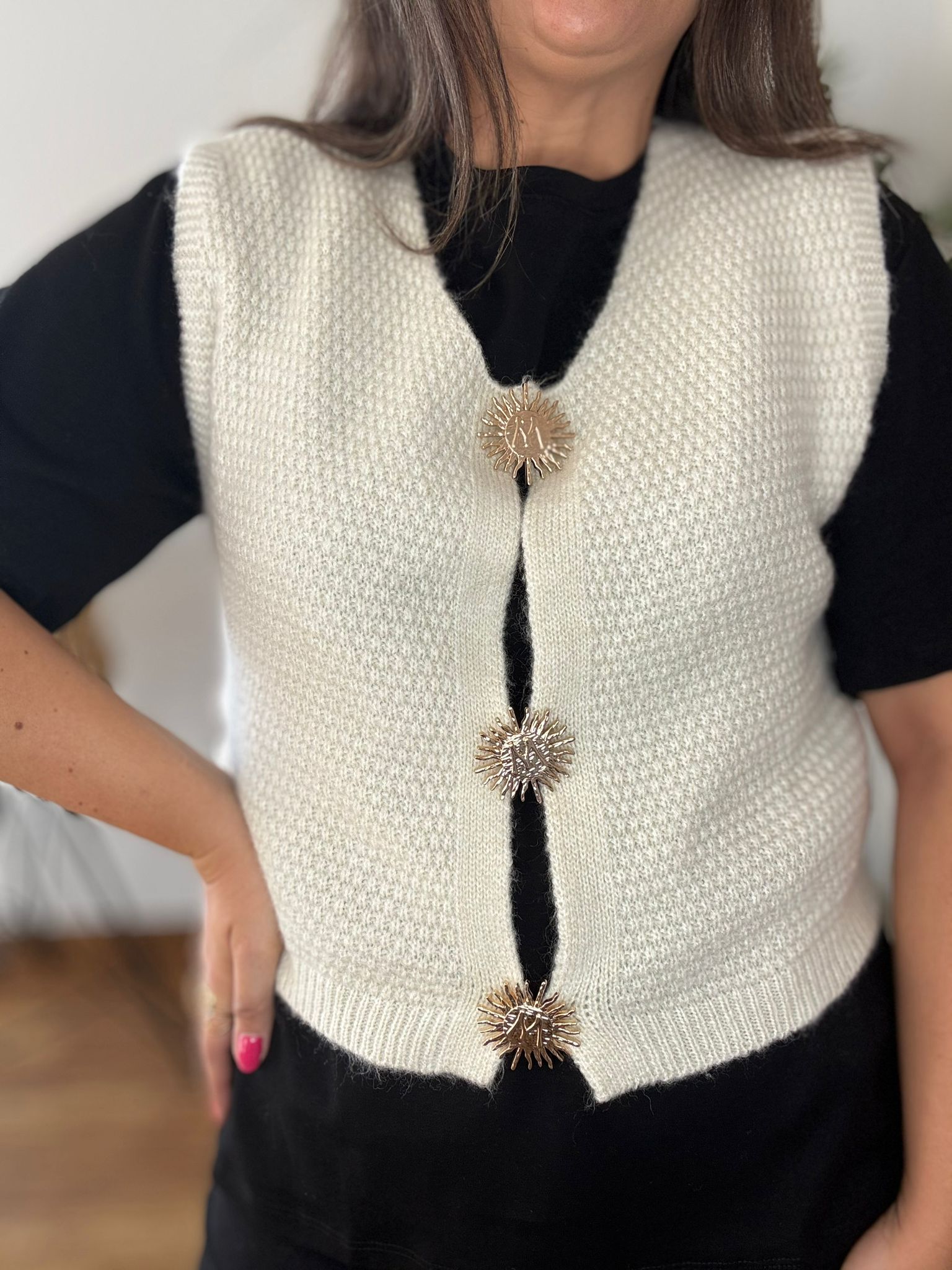 Chaleco 10% lana con apliques de clip que se pueden quitar. Perfecto para tus camisas favoritas!