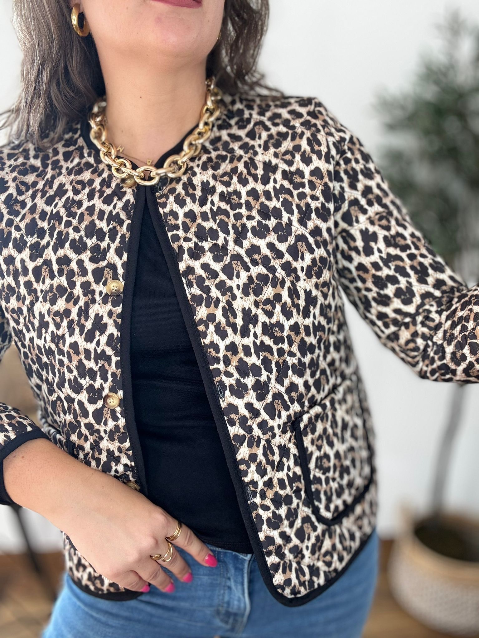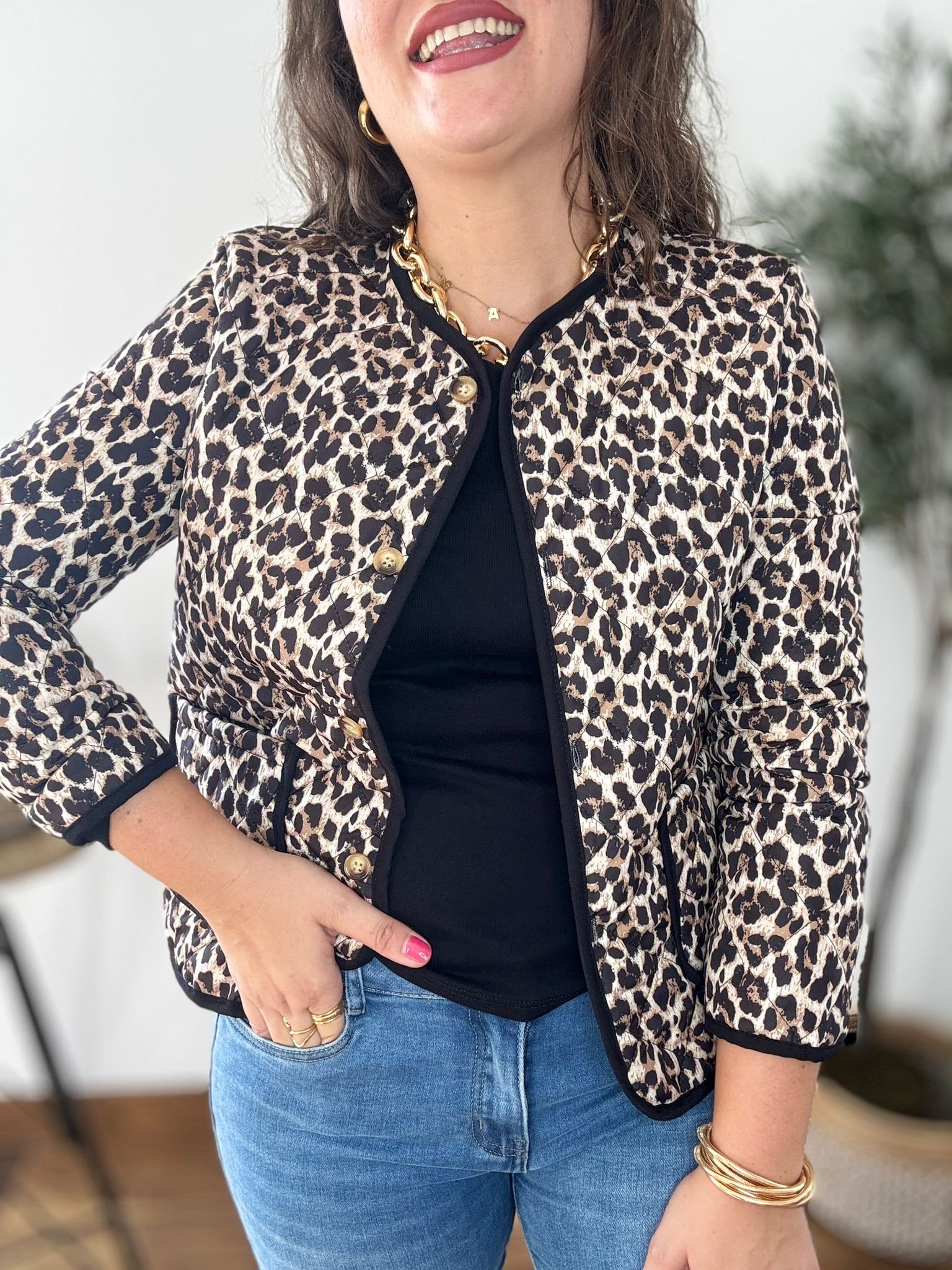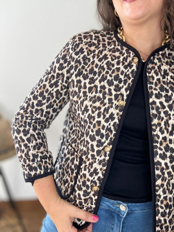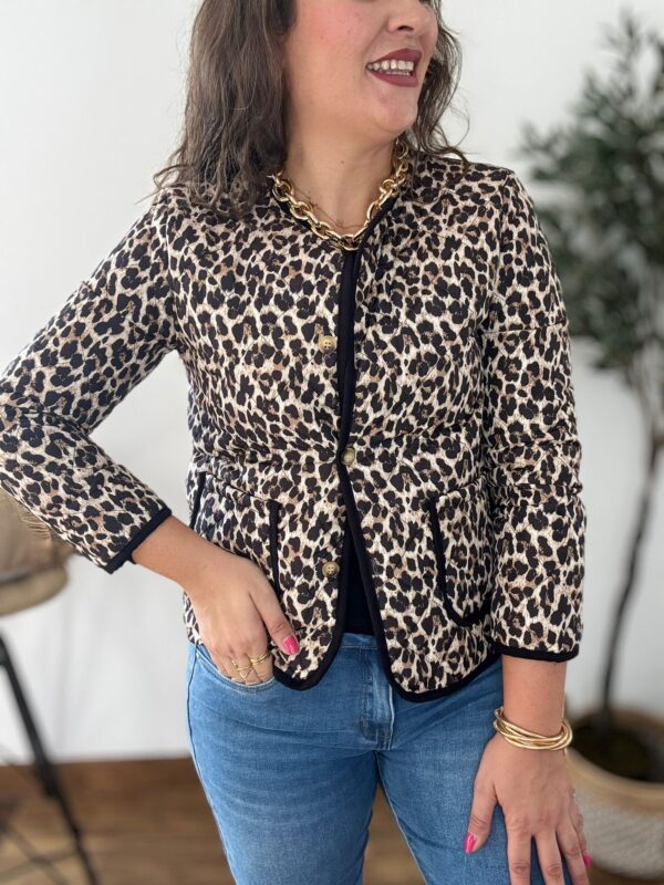 Chaqueta acolchada estampada con bolsillos y botones. TU RECOMENDADA 36/40. Ana lleva habitualmente talla L 40/42.