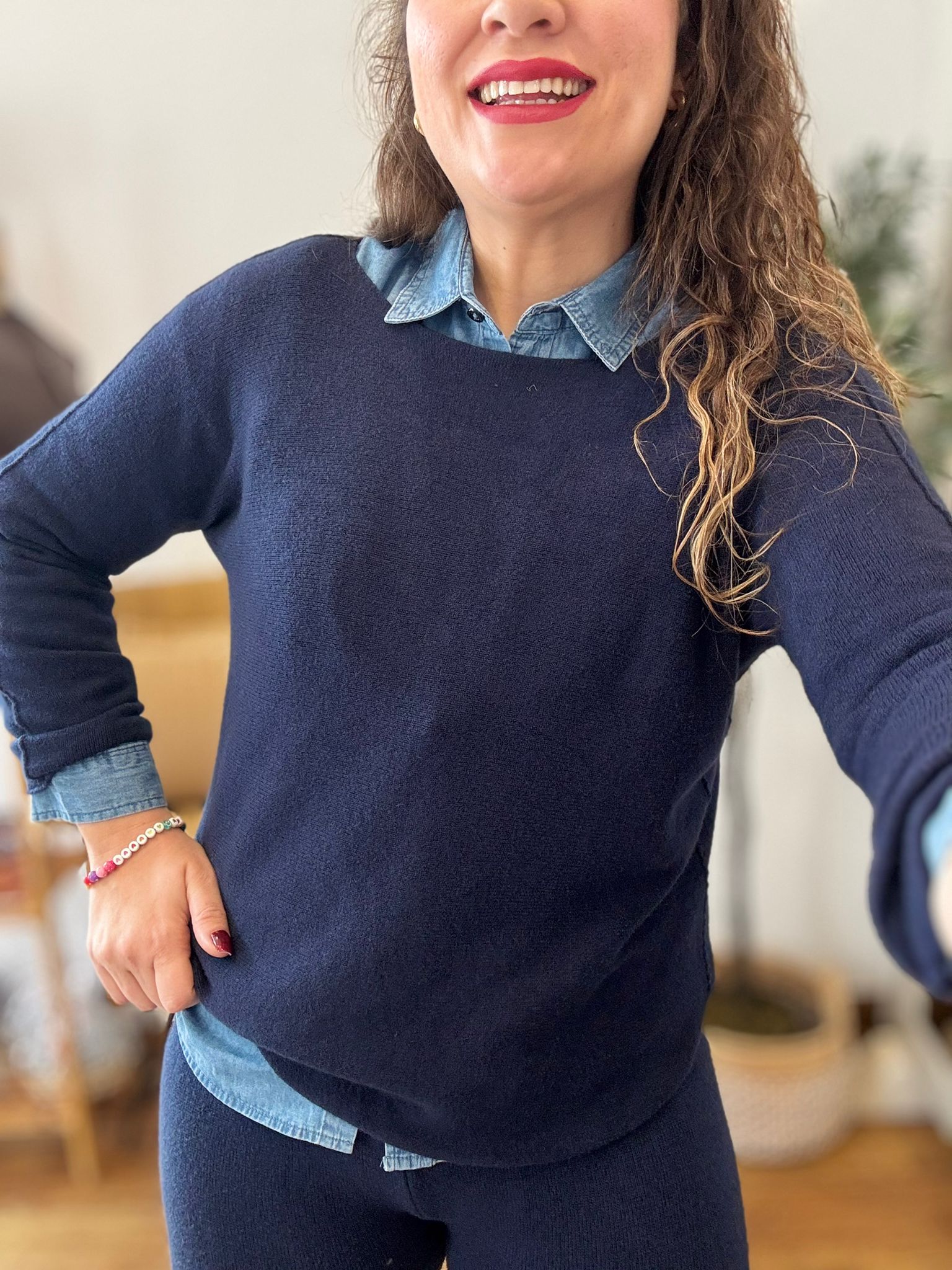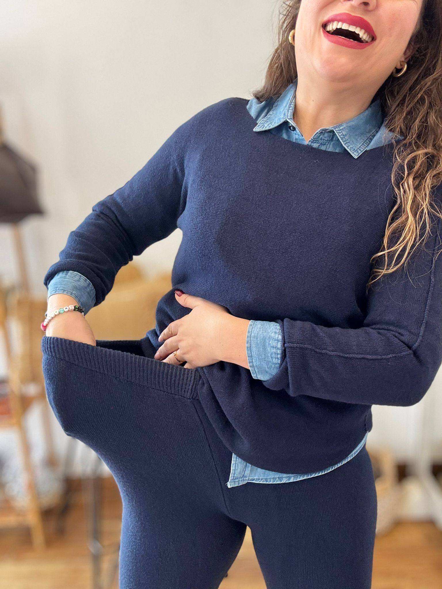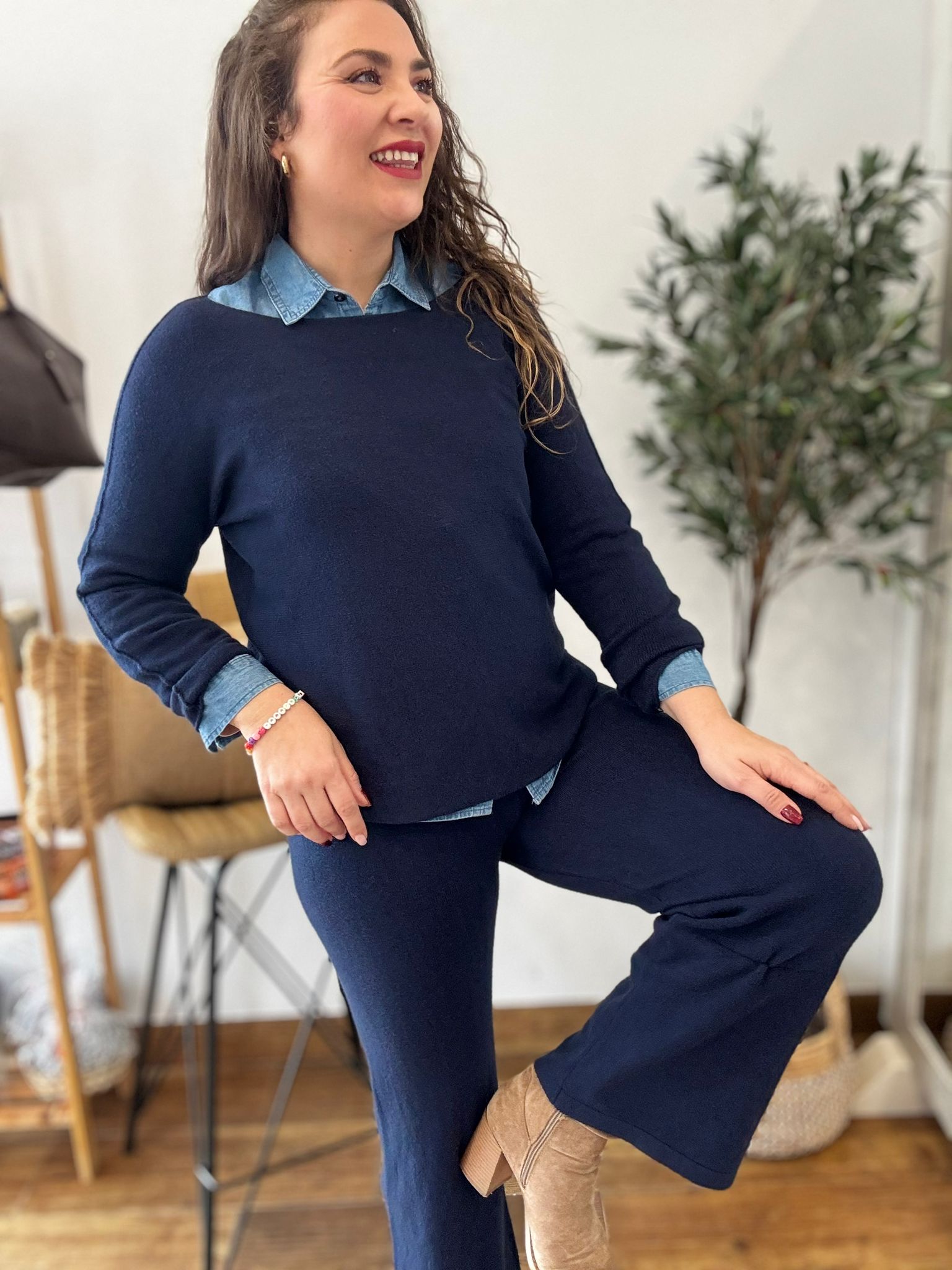 Conjunto de punto (jersey y pantalón) muy suave y gustoso. El pantalón lleva cintura elástica. TU RECOMENDADA 36/44. Ana lleva habitualmente talla 40/42 y mide 1.71m CAMISA NO INCLUIDA