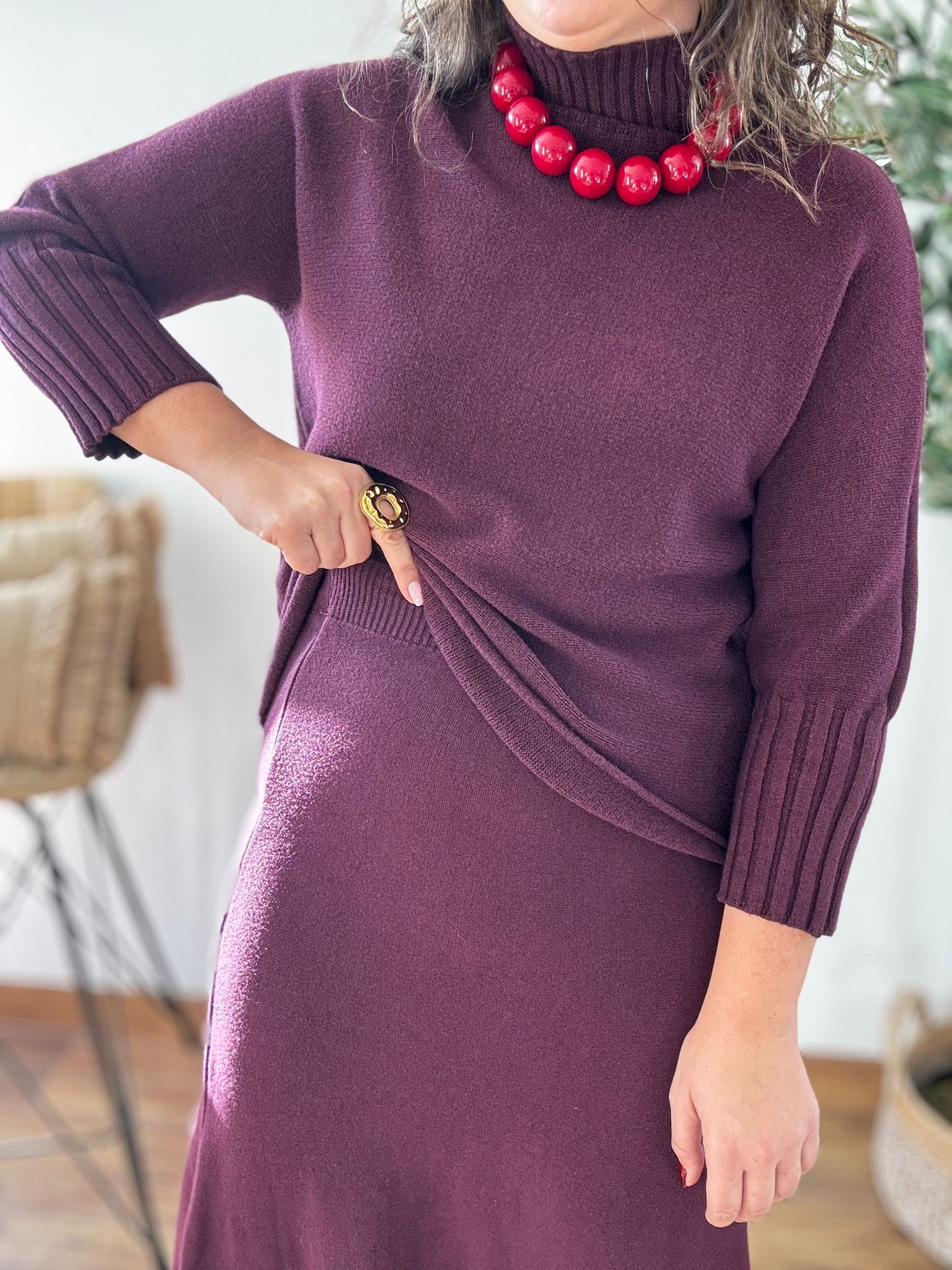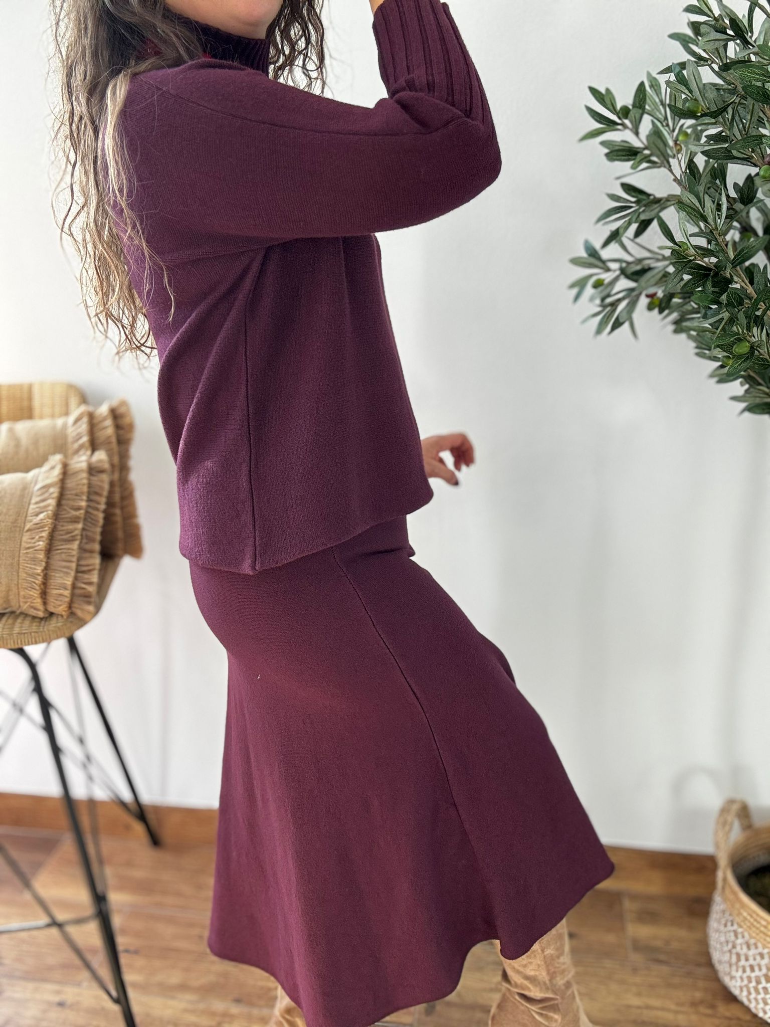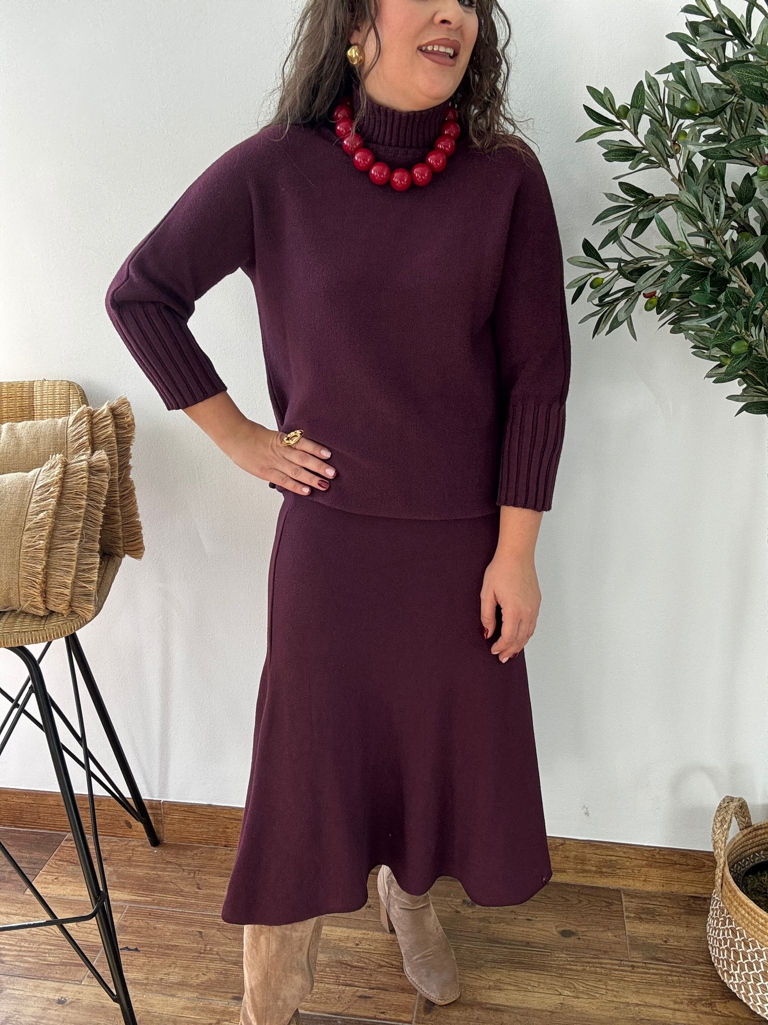 Conjunto de punto suave de jersey perkin y falda. La falda tiene cintura elástica. TU RECOMENDADA 36/44. Ana lleva habitualmente talla 40/42 y mide 1.71m
