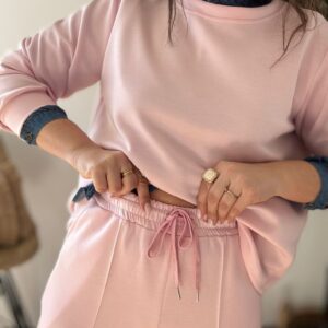 Conjunto tipo deportivo de sudadera y pantalón. Tejido suave que no se arruga! TU RECOMENDADA 38/44. El pantalón lleva bolsillos, goma y cinta para ajustar. Ana lleva habitualmente talla 40 y mide 1.71m Medidas del conjunto: sudadera contorno de pecho 120 y largo 65cm Pantalón cadera 120 y largo 101.
