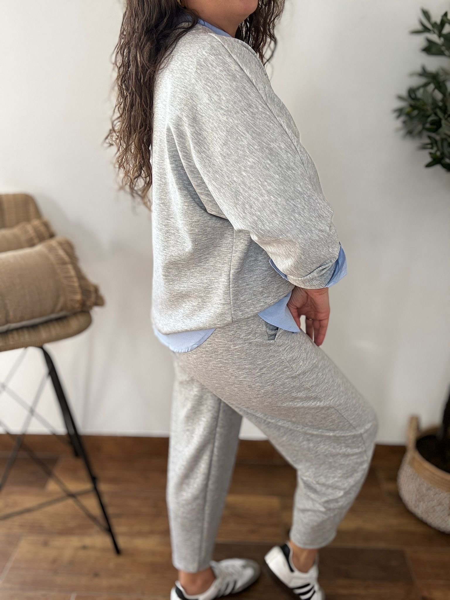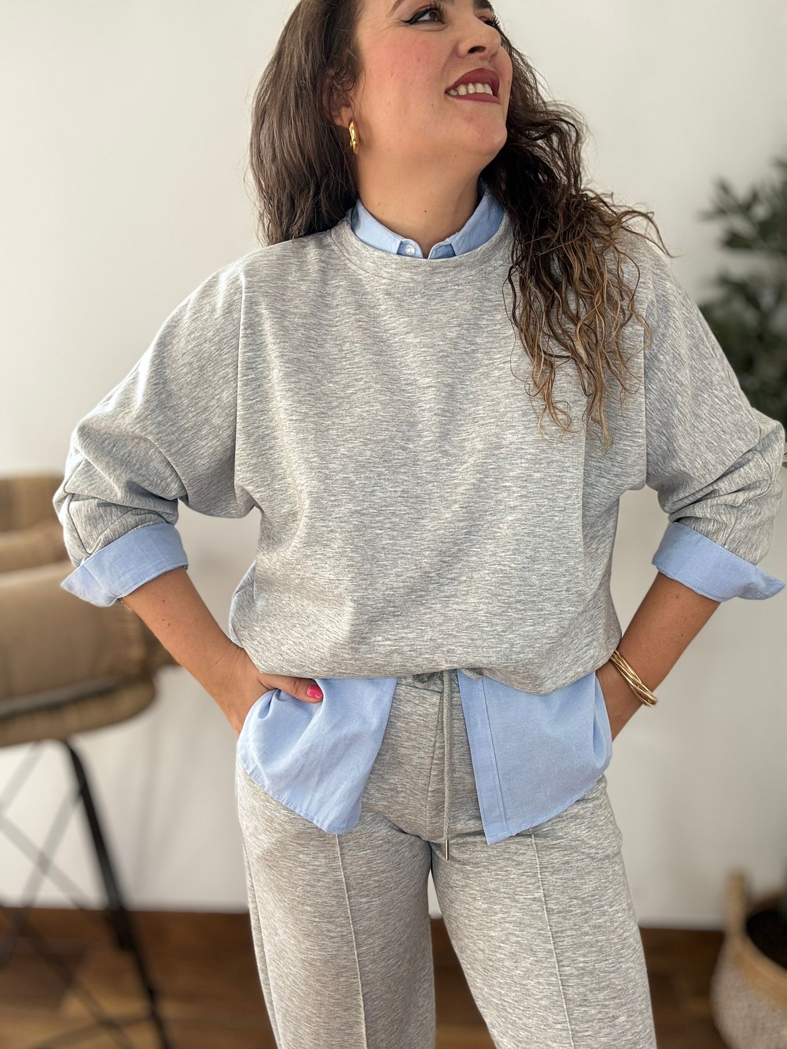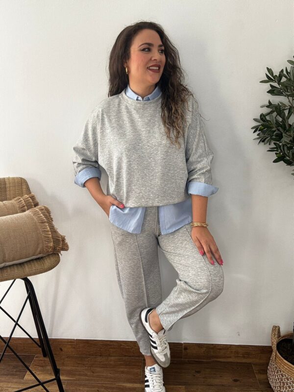 Conjunto deportivo de sudadera y pantalón. El pantalón lleva goma en la cintura y cuerda para ajustar, también lleva bolsillos. TU RECOMENDADA 36/44. Ana lleva habitualmente talla L 40/42 y mide 1.71m