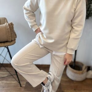 Conjunto tipo deportivo de sudadera y pantalón. Tejido suave que no se arruga! TU RECOMENDADA 36/44. El pantalón lleva bolsillos, goma y cinta para ajustar. Ana lleva habitualmente talla 40 y mide 1.71m Medidas del conjunto: sudadera contorno de pecho 120 y largo 65cm Pantalón cadera 120 y largo 101.