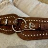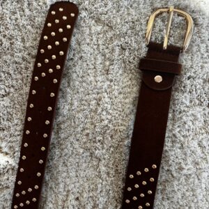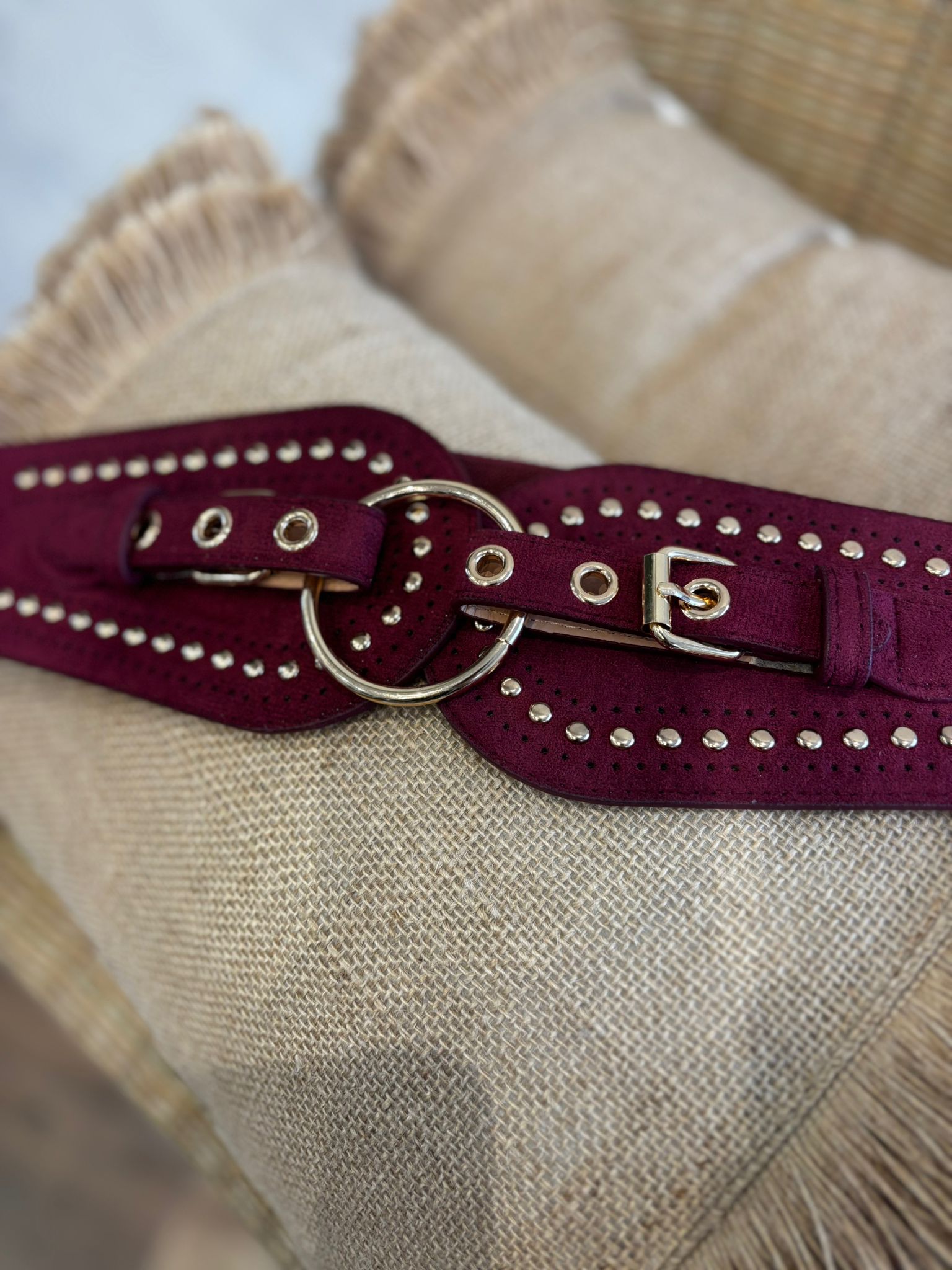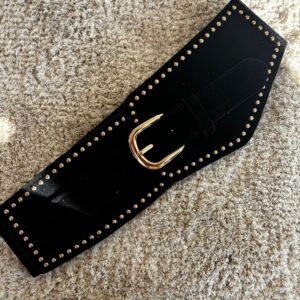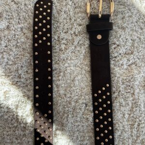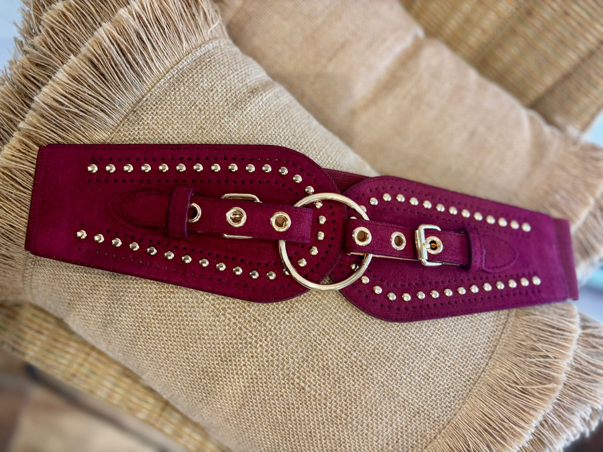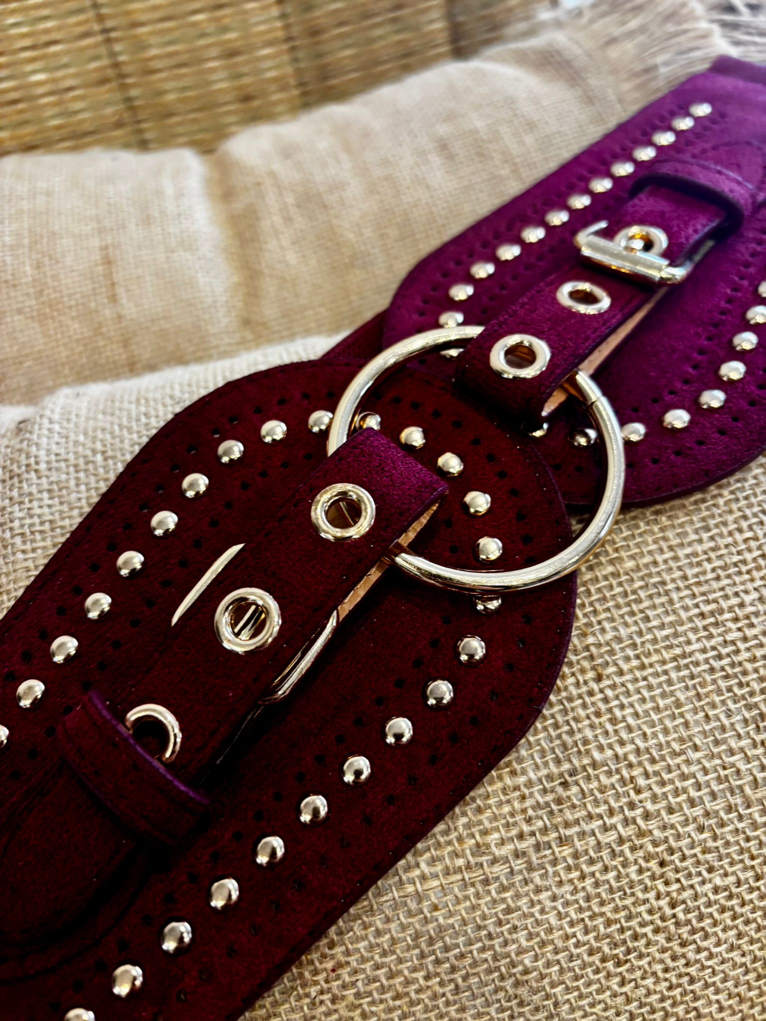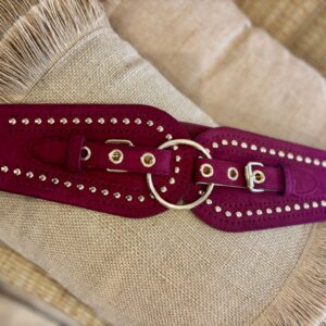 Fajín de antelina con detalles en dorado y parte de atrás en elástico para que sirva así para todas las tallas.