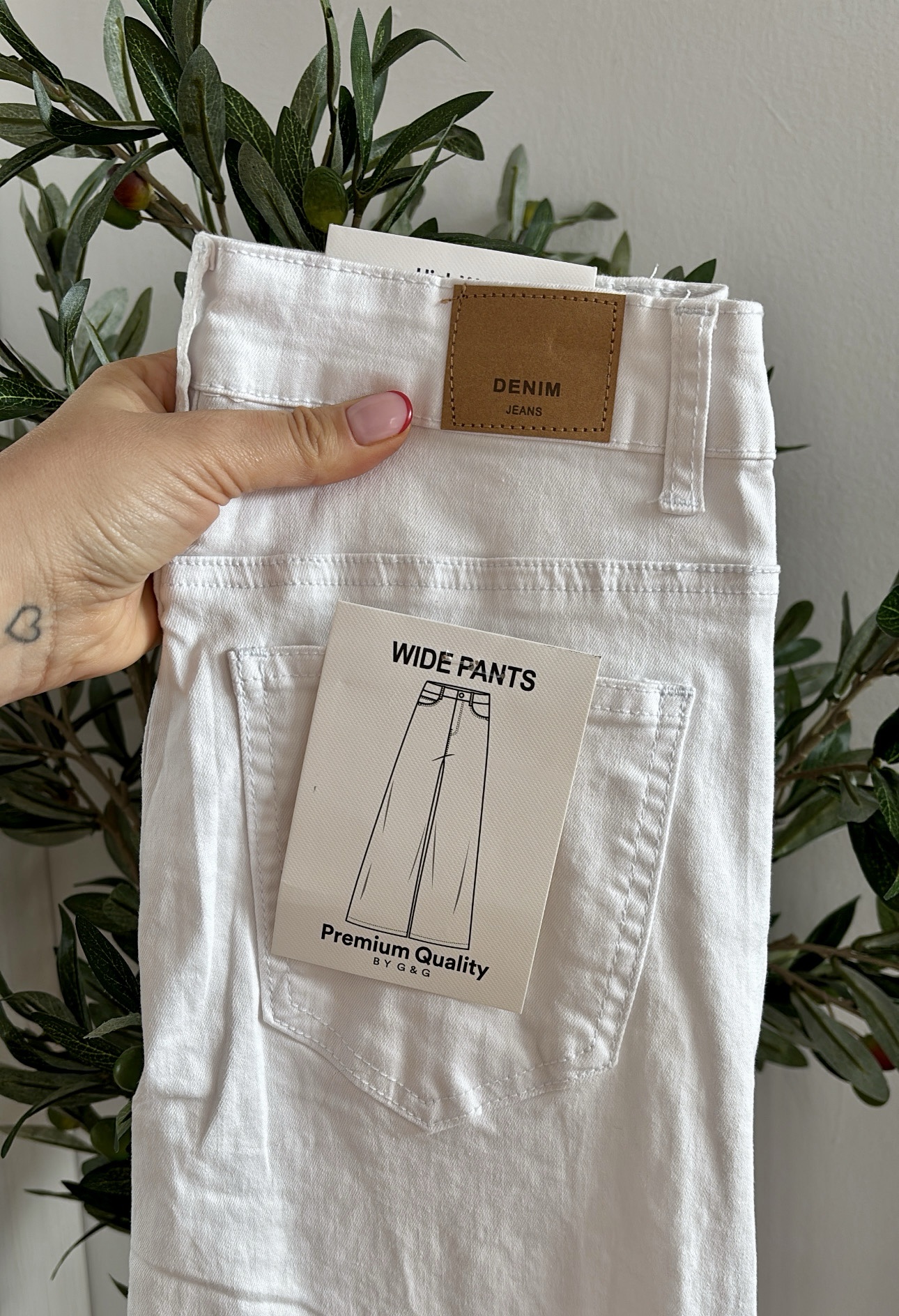 Pantalón vaquero color blanco wide. Llevan elástico.