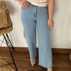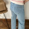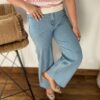 Jeans WIDELEG con un poquito de elástico. Tallan bien, elige tu talla habitual. Llevan tiro alto. Ana lleva habitualmente talla L/40 y de este modelo ha escogido talla L, mide 1.71m