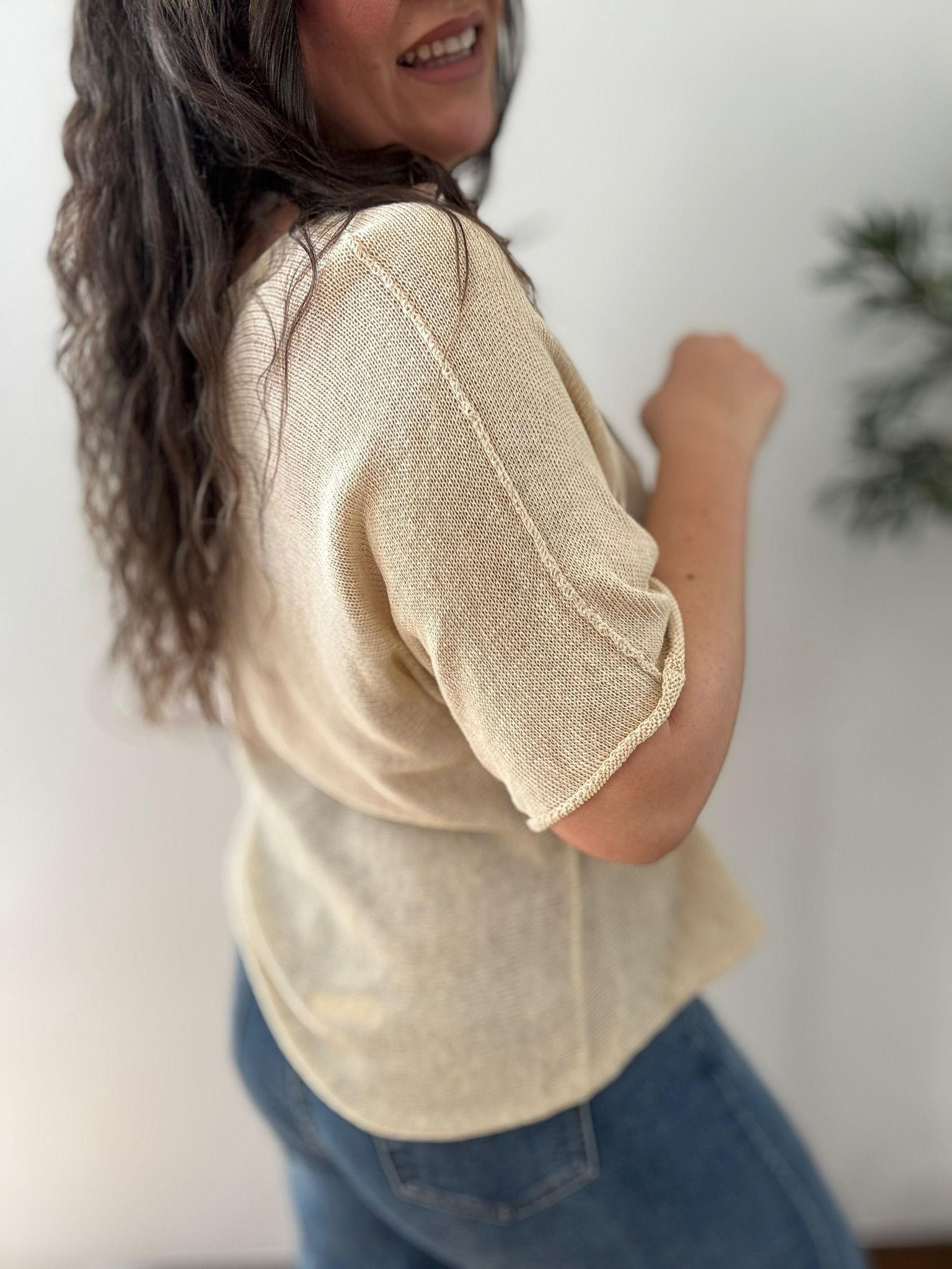 Jersey en hilo de algodón en manga corta.