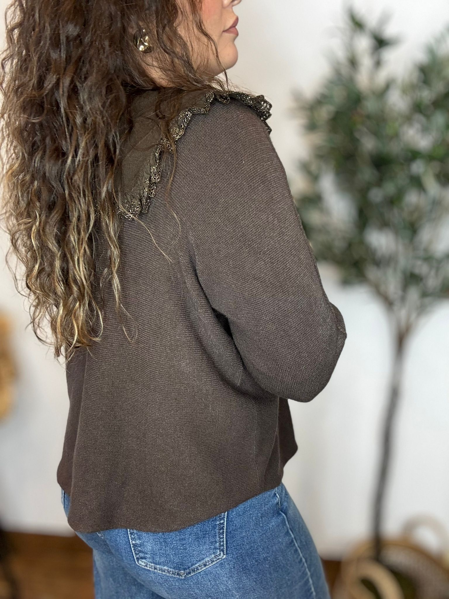Jersey de punto suave con cuello pico y costura en los brazos. TU RECOMENDADA 38/46. Ana lleva habitualmente talla L 40