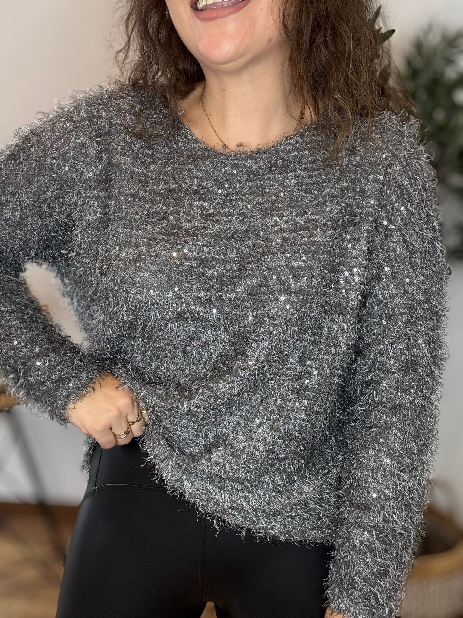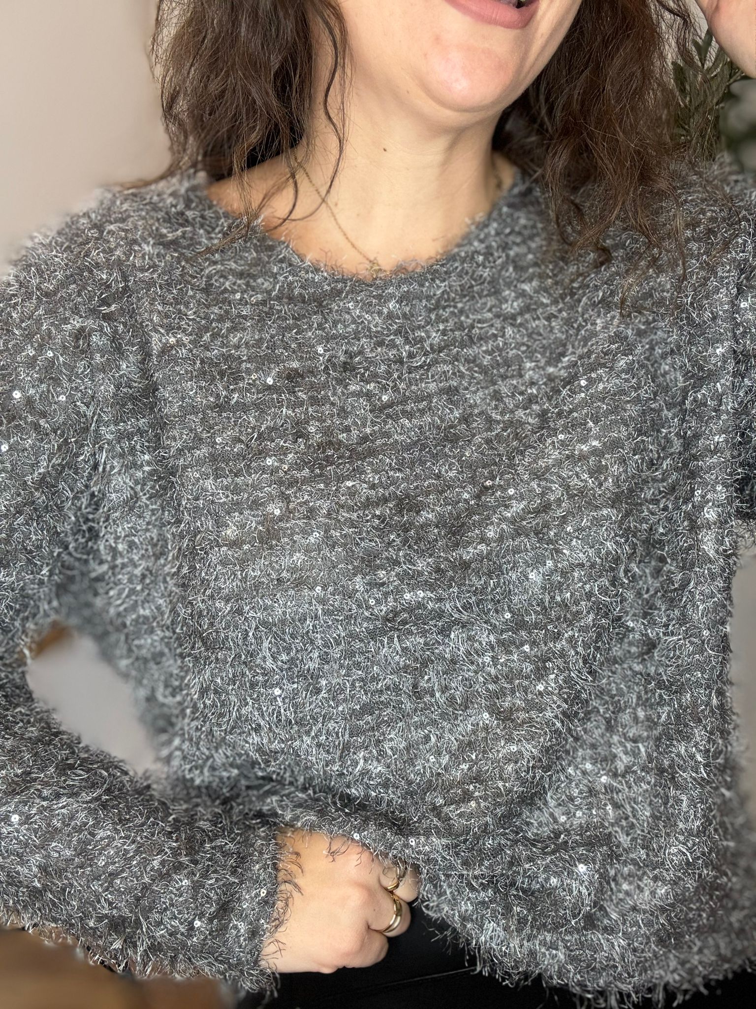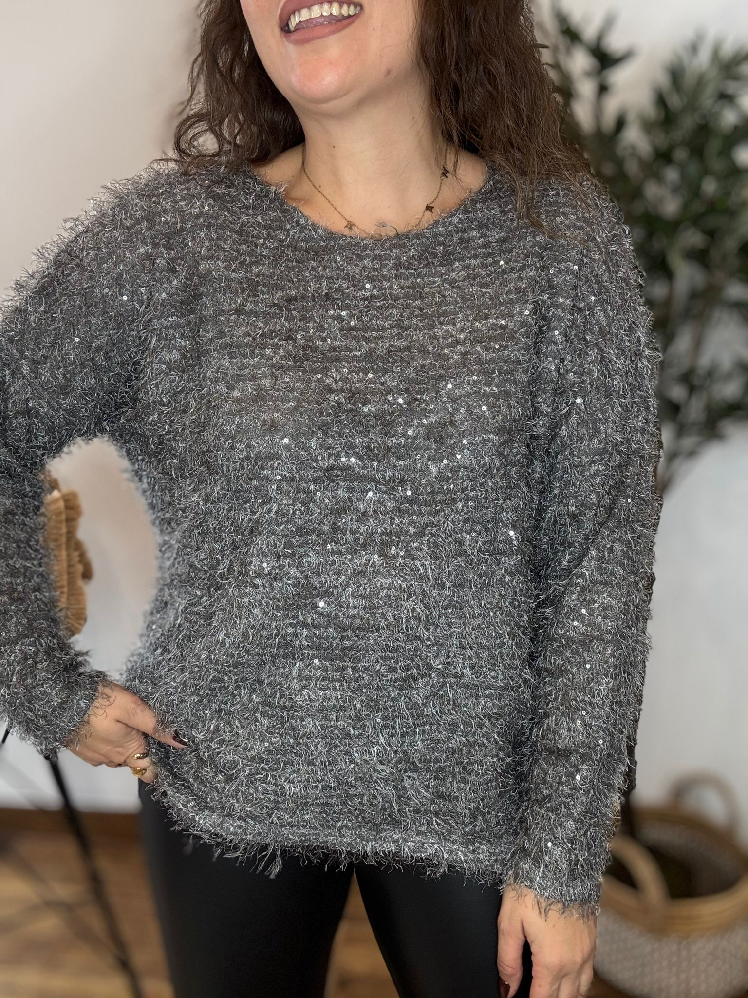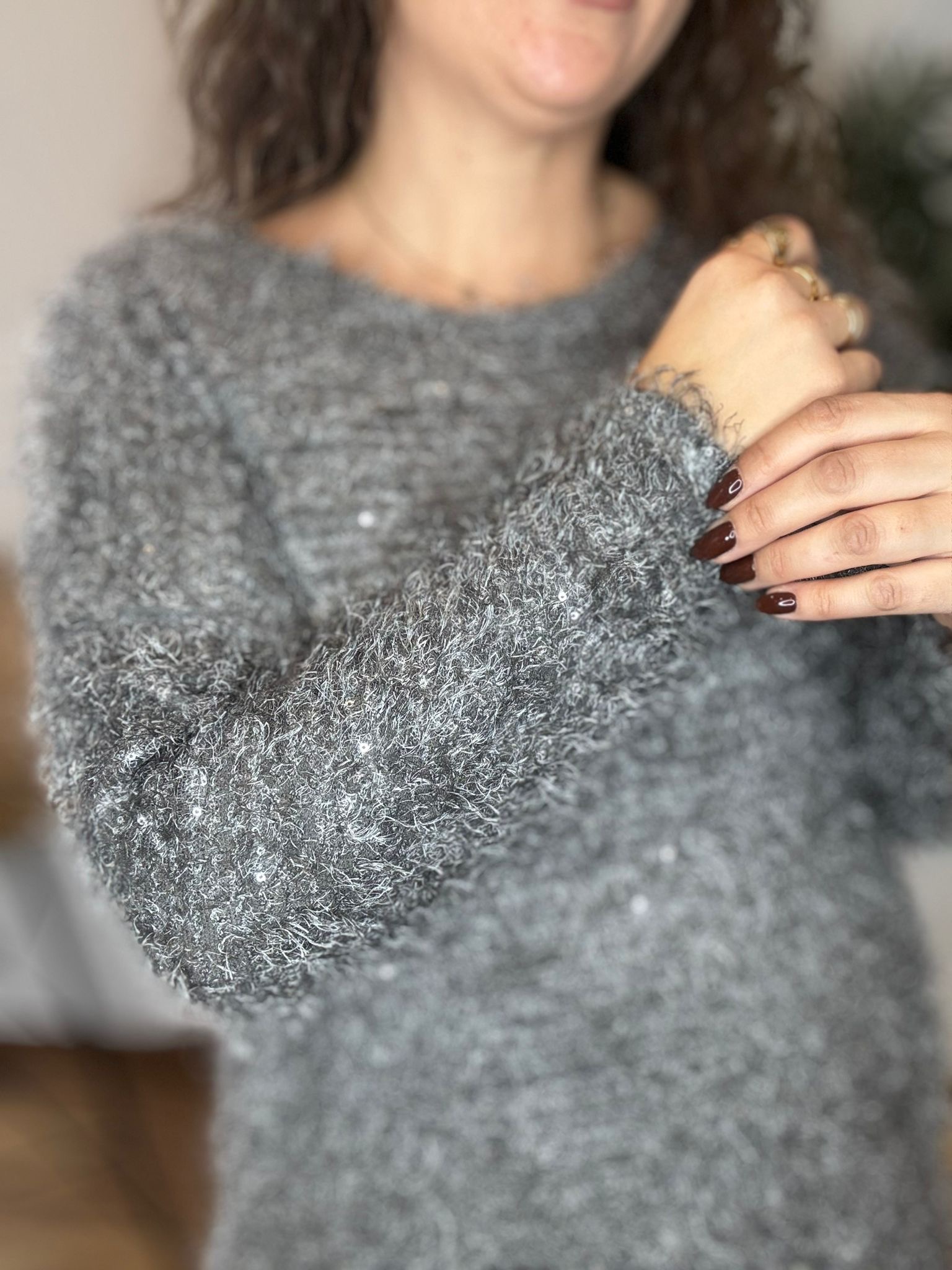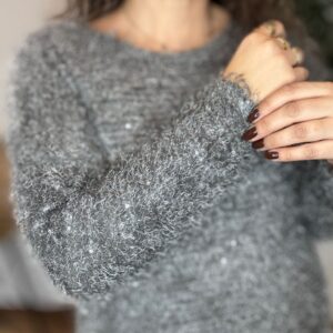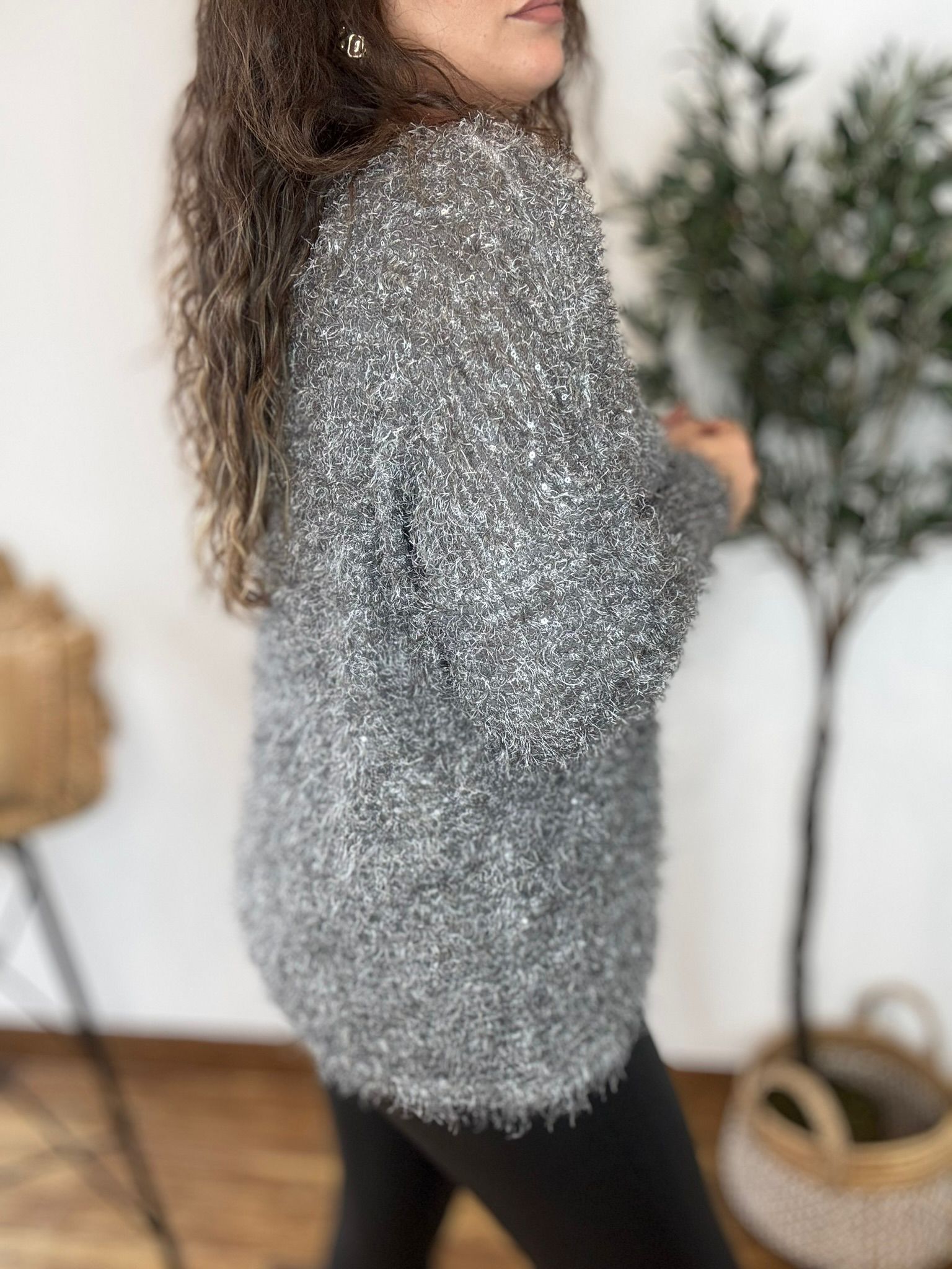 Jersey maxi desflecado con unas sutiles lentejuelas. TU RECOMENDADA 36-44. Ana lleva habitualmente talla L