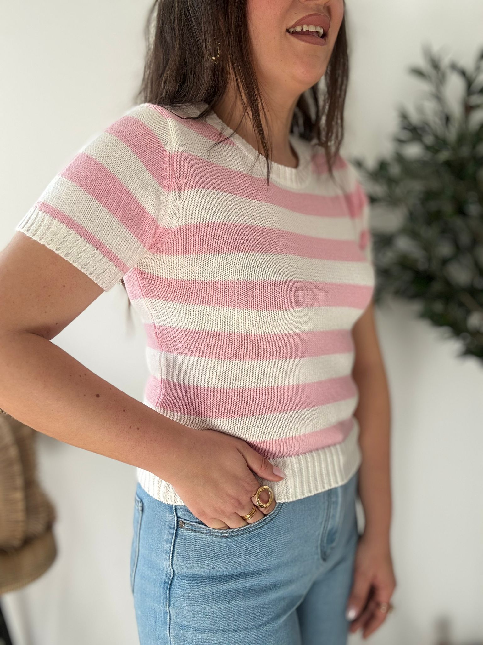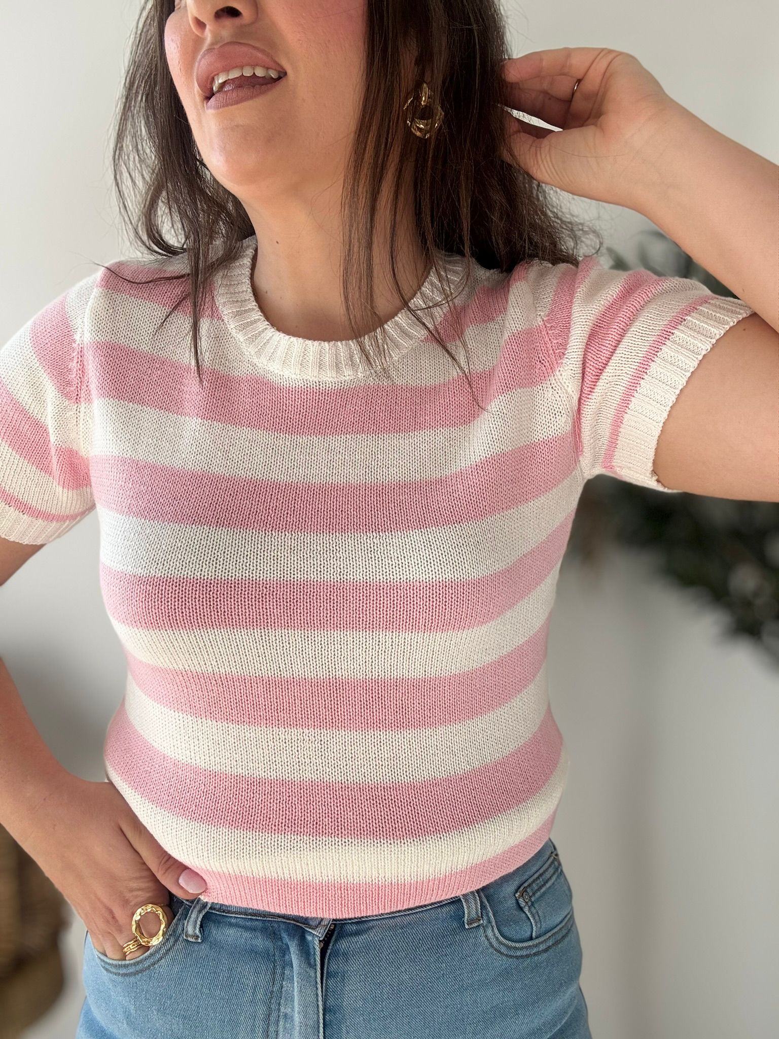 Jersey de hilo 100% algodón en manga corta. TU RECOMENDADA 34/42. Ana lleva habitualmente talla L/40