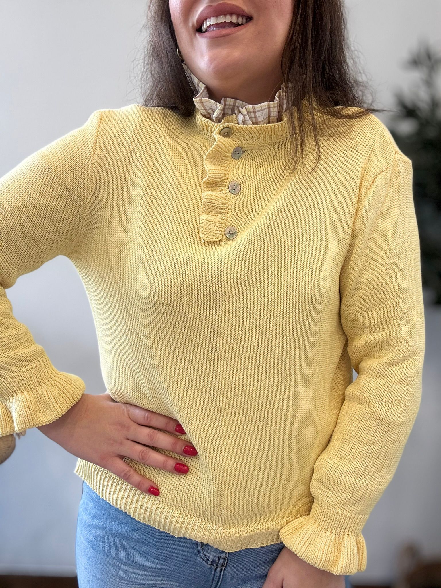 Jersey en hilo de algodón con detalle de volantitos. TU RECOMENDADA 36/44. Ana lleva habitualmente talla L/40