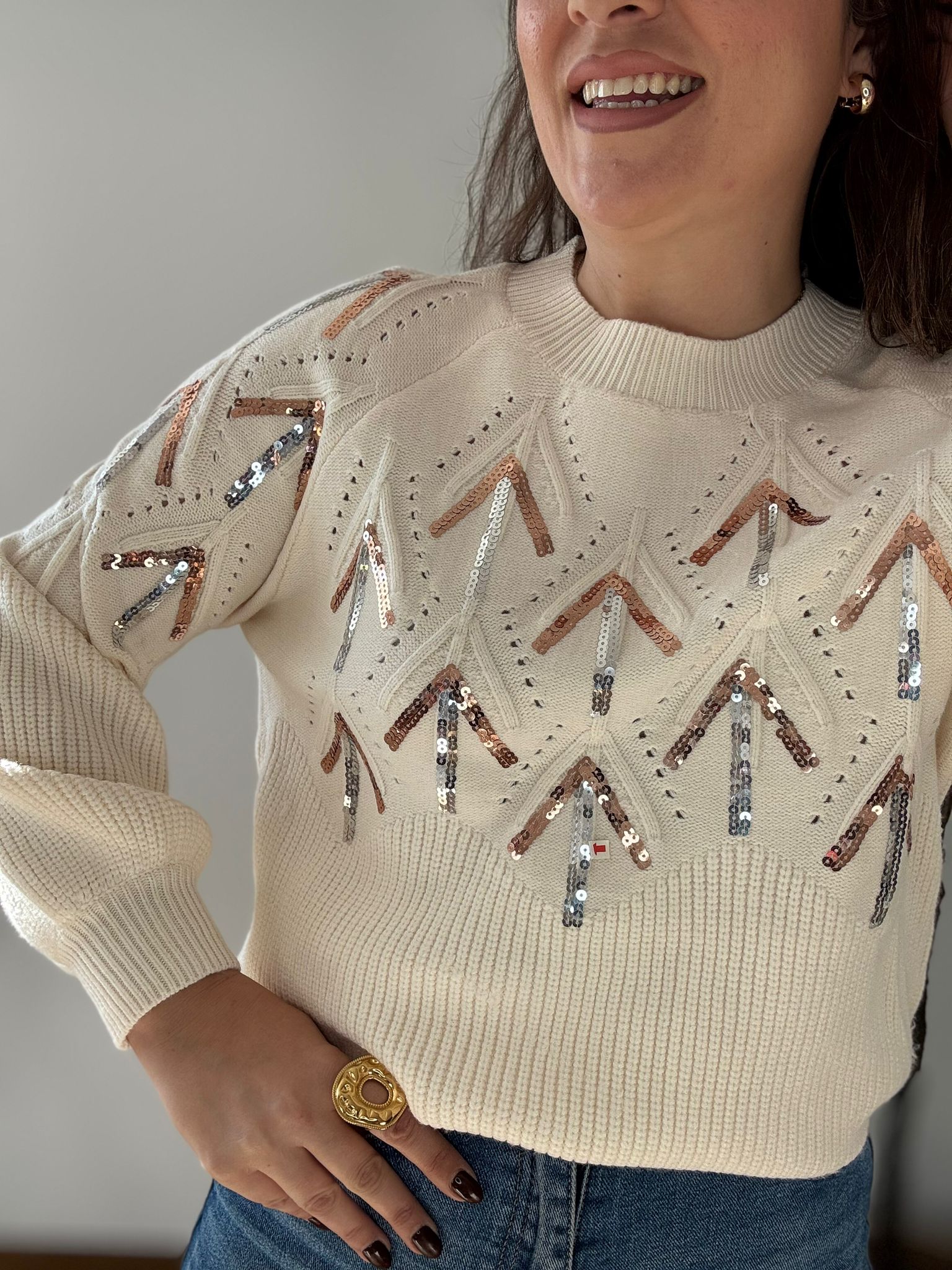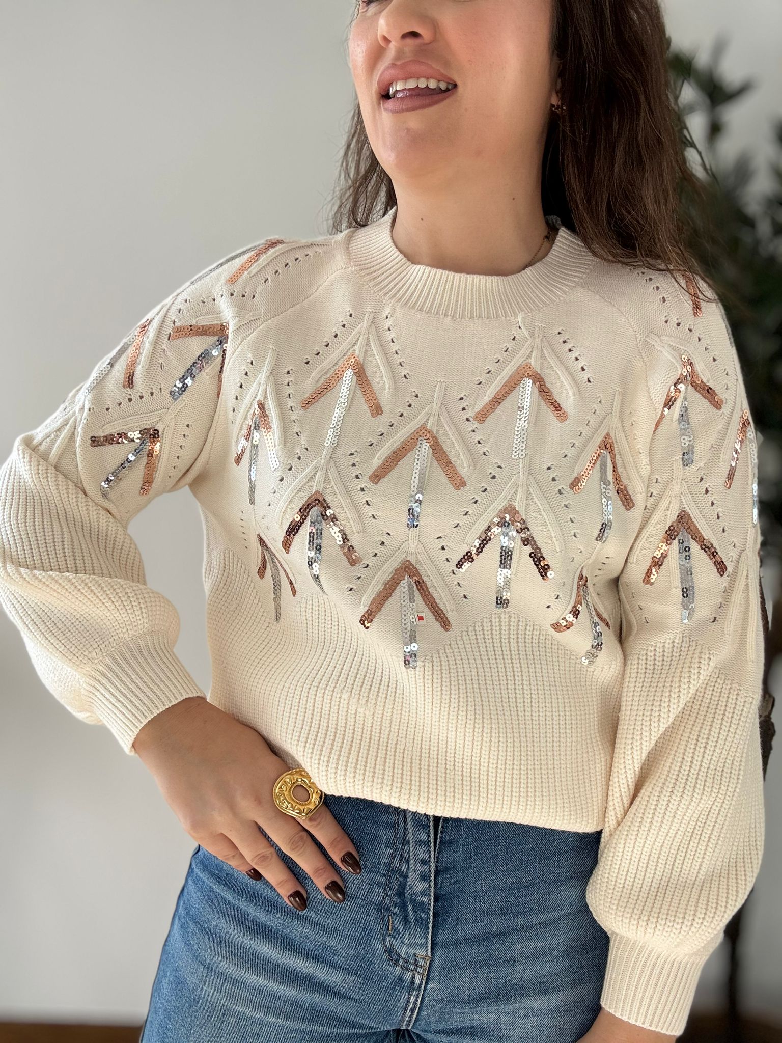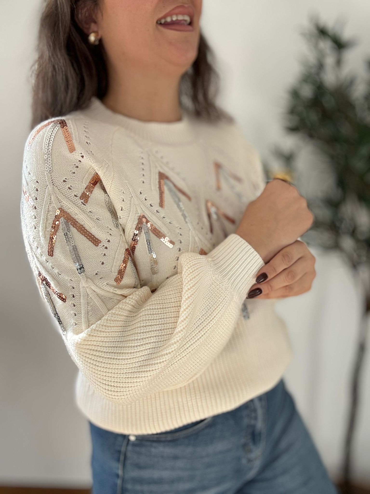 Jersey de punto gordito súper calentito con detalle de lentejuelas. TU RECOMENDADA 36-44. Ana lleva habitualmente talla 40-42