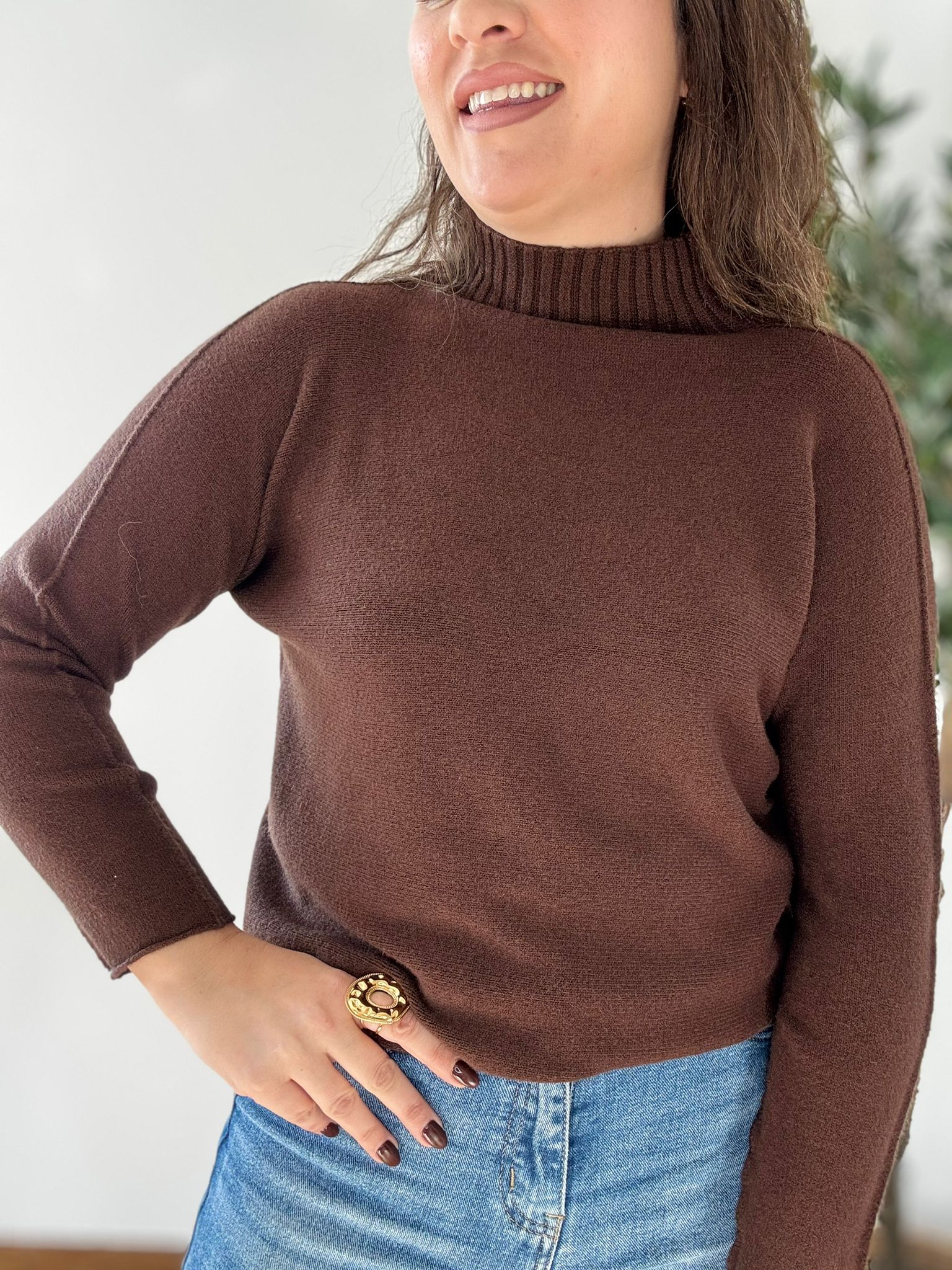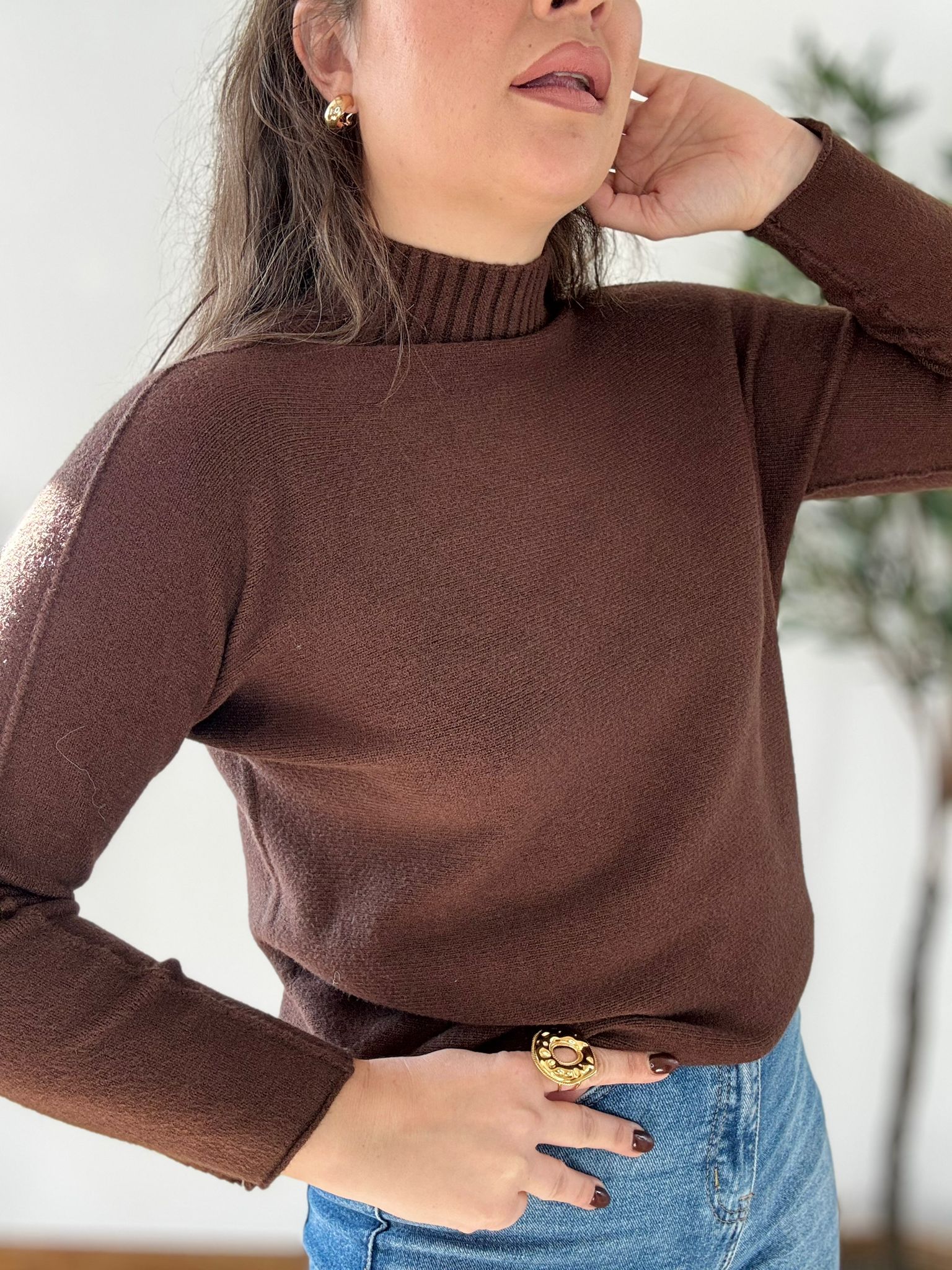 Jersey de cuello PERKIN calentito y gustoso con detalle de costura lateral. TU RECOMENDADA 36/44. Ana lleva habitualmente talla 40/42.