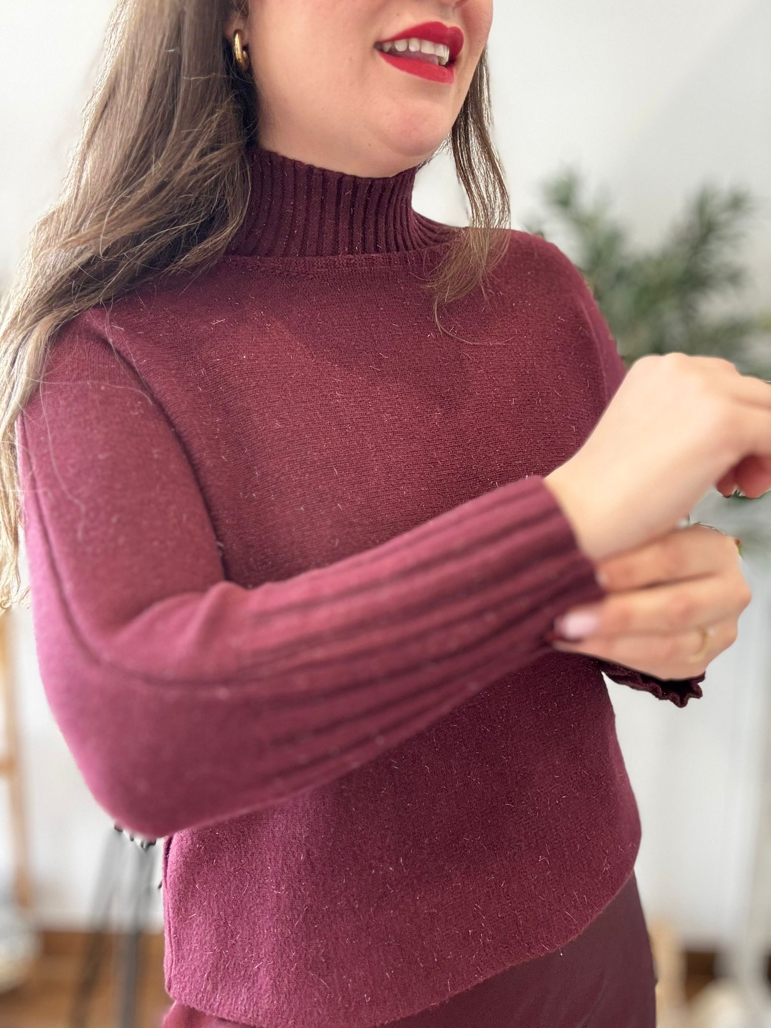Jersey con cuello PERKIN súper suave con detalles de sutil brillo plateado. TU RECOMENDADA 36/44. Ana lleva habitualmente talla 40/42