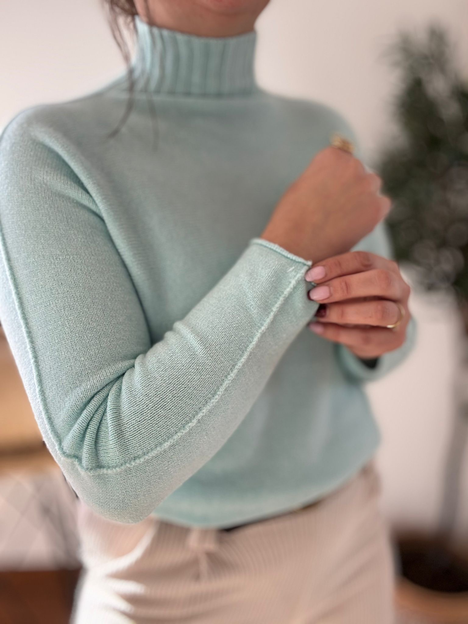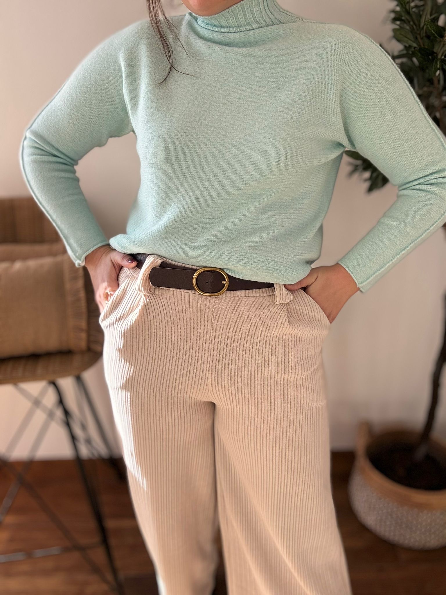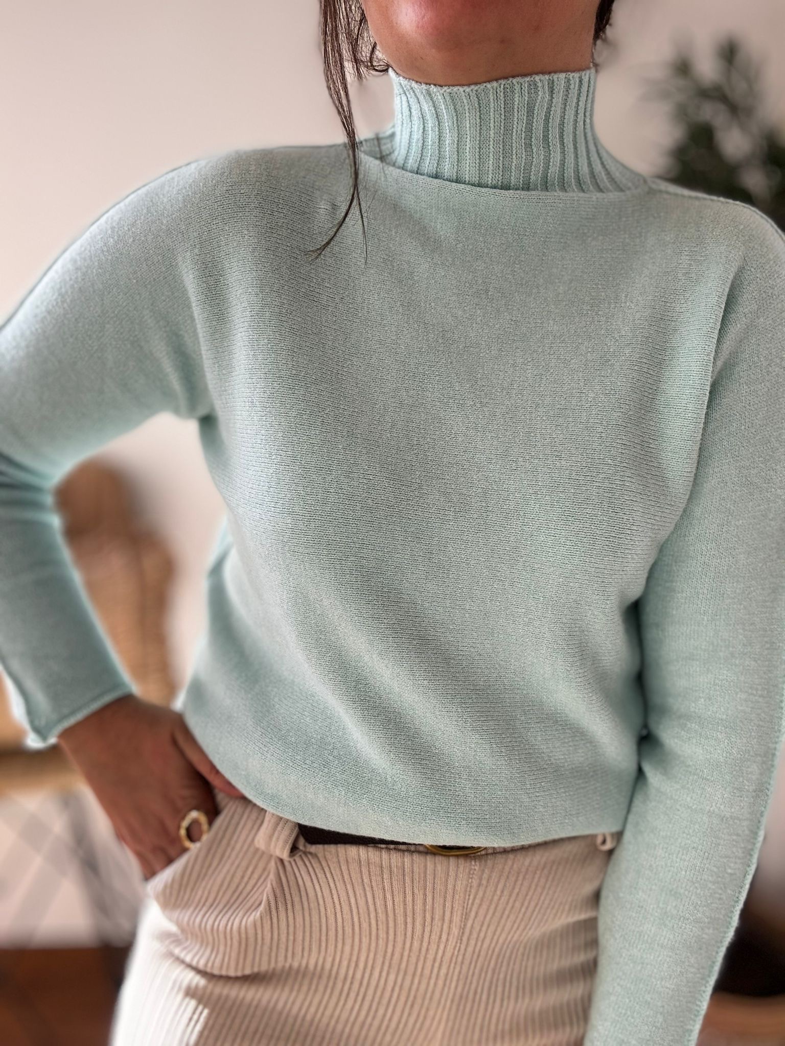 Jersey de punto suave con cuello PERKIN y detalle de costuras laterales. TU RECOMENDADA 36/44. Ana lleva habitualmente talla 40/42