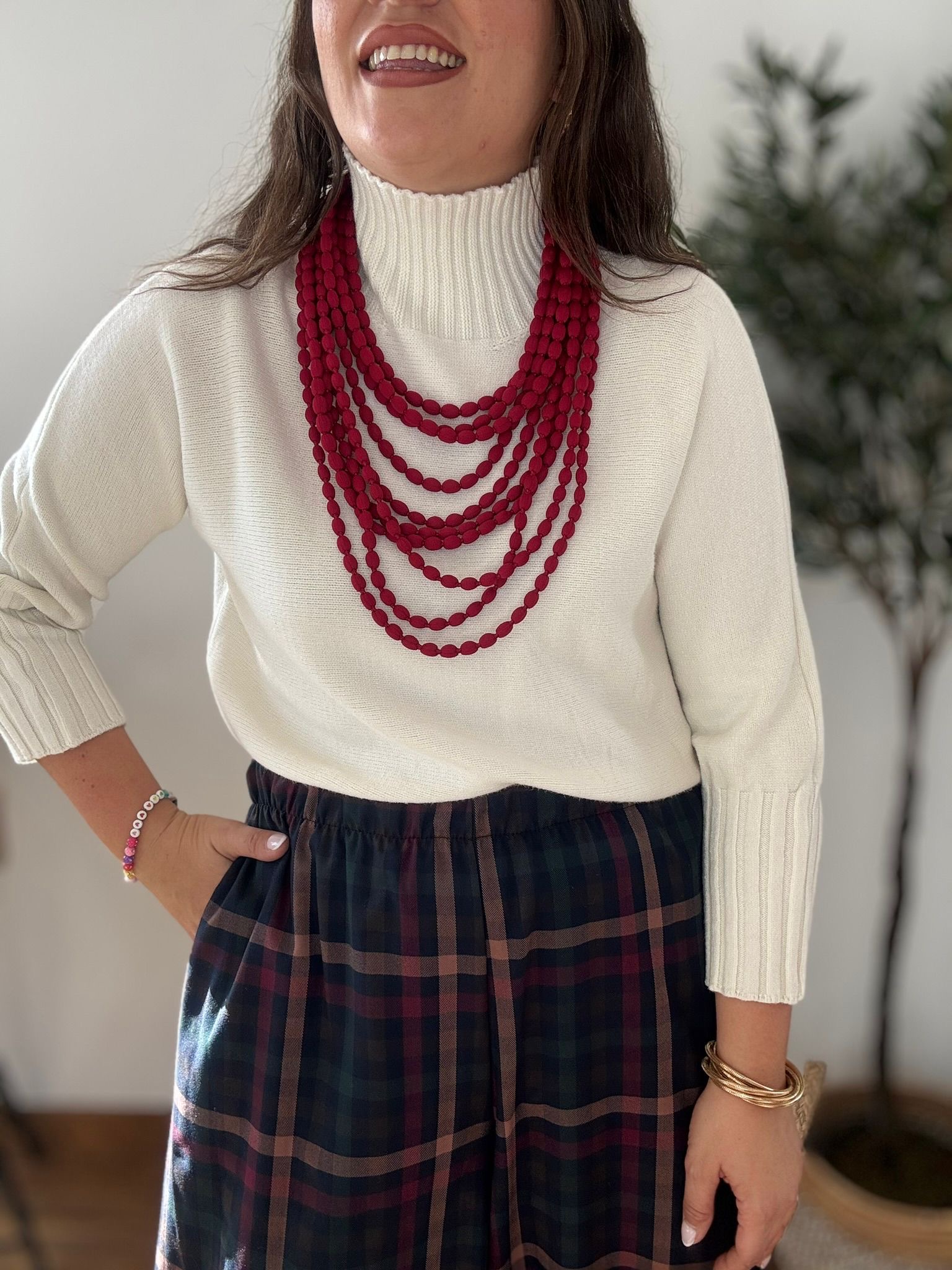 Jersey de punto suave con cuello PERKINS y pilas engomados. TU RECOMENDADA 36/46. Ana lleva habitualmente talla L 40/42