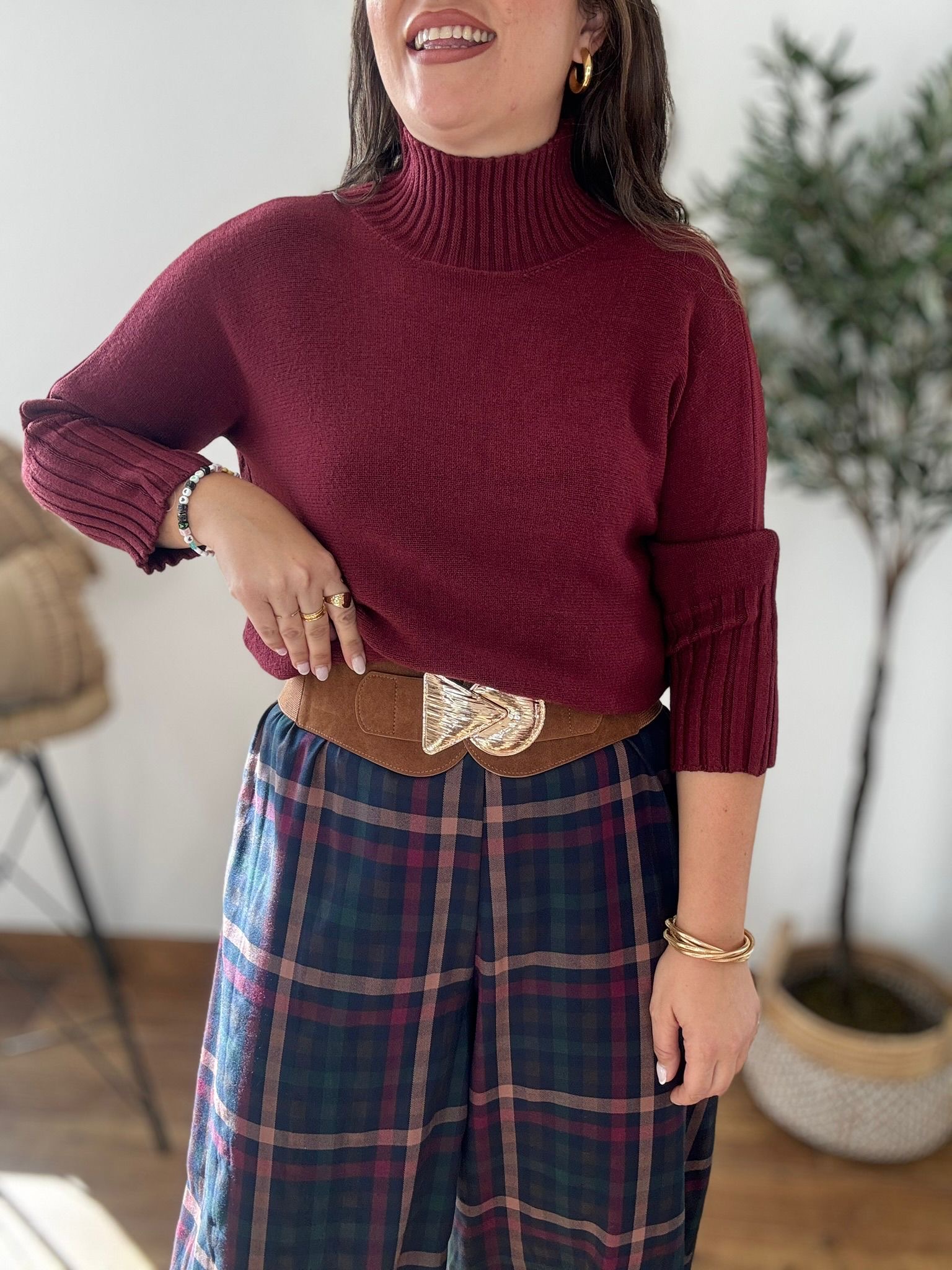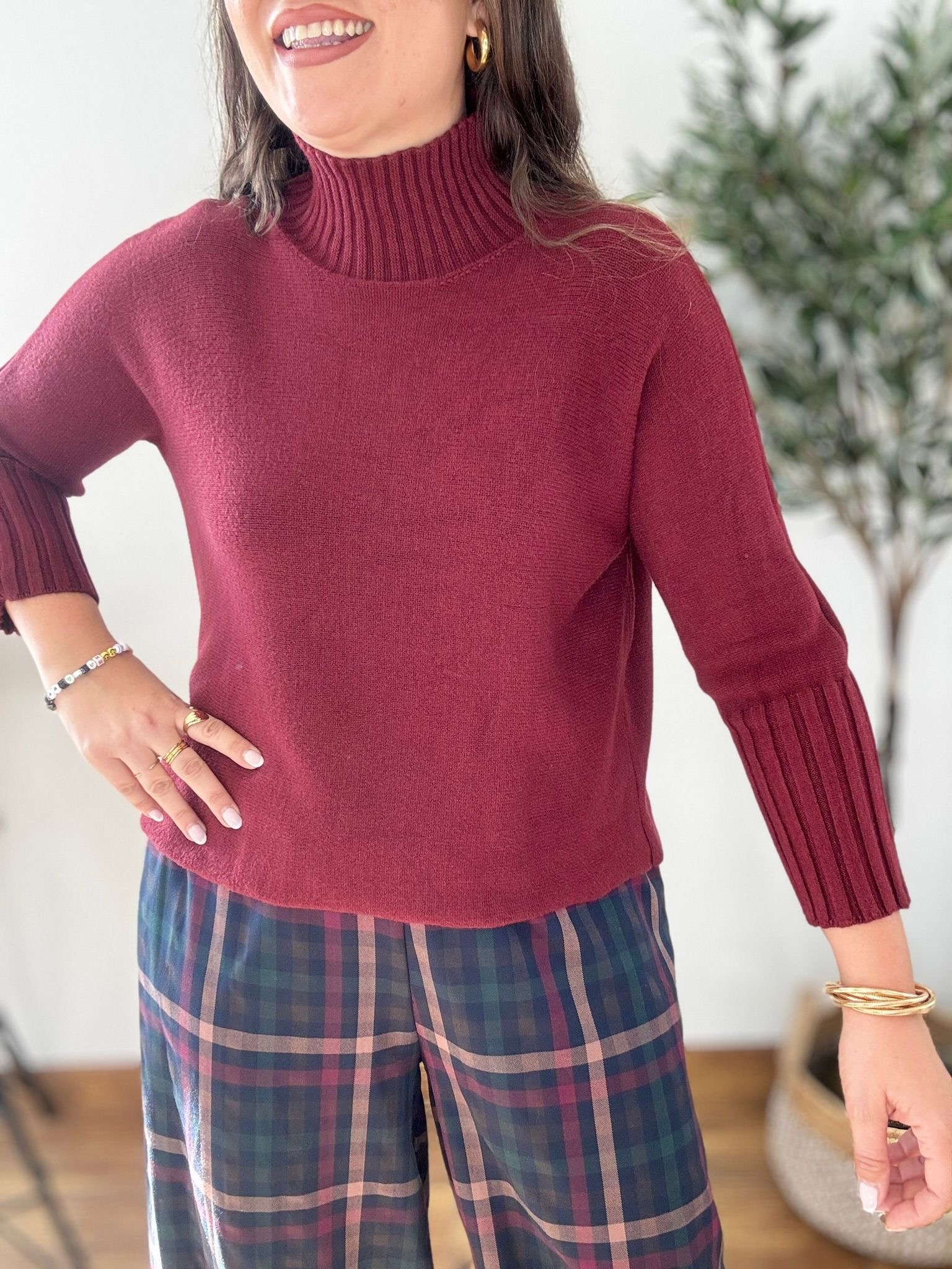 Jersey de punto suave con cuello PERKINS y pilas engomados. TU RECOMENDADA 36/46. Ana lleva habitualmente talla L 40/42