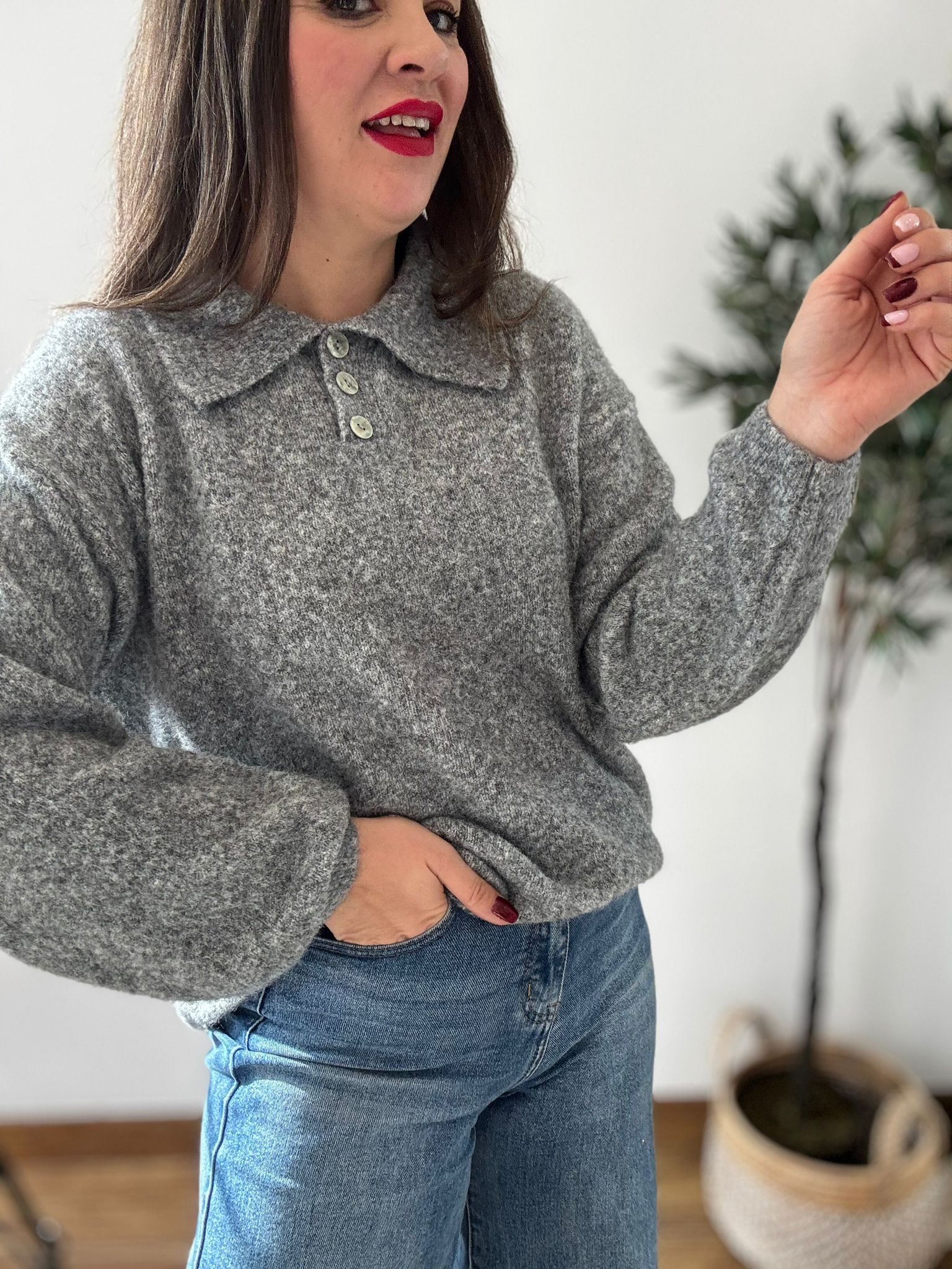 Jersey de lana calentito y súper suave que no pica con cuello polo. TU RECOMENDADA 36/44. Ana lleva habitualmente talla 40/42. Medidas del jersey: ancho 120 y largo 66cm