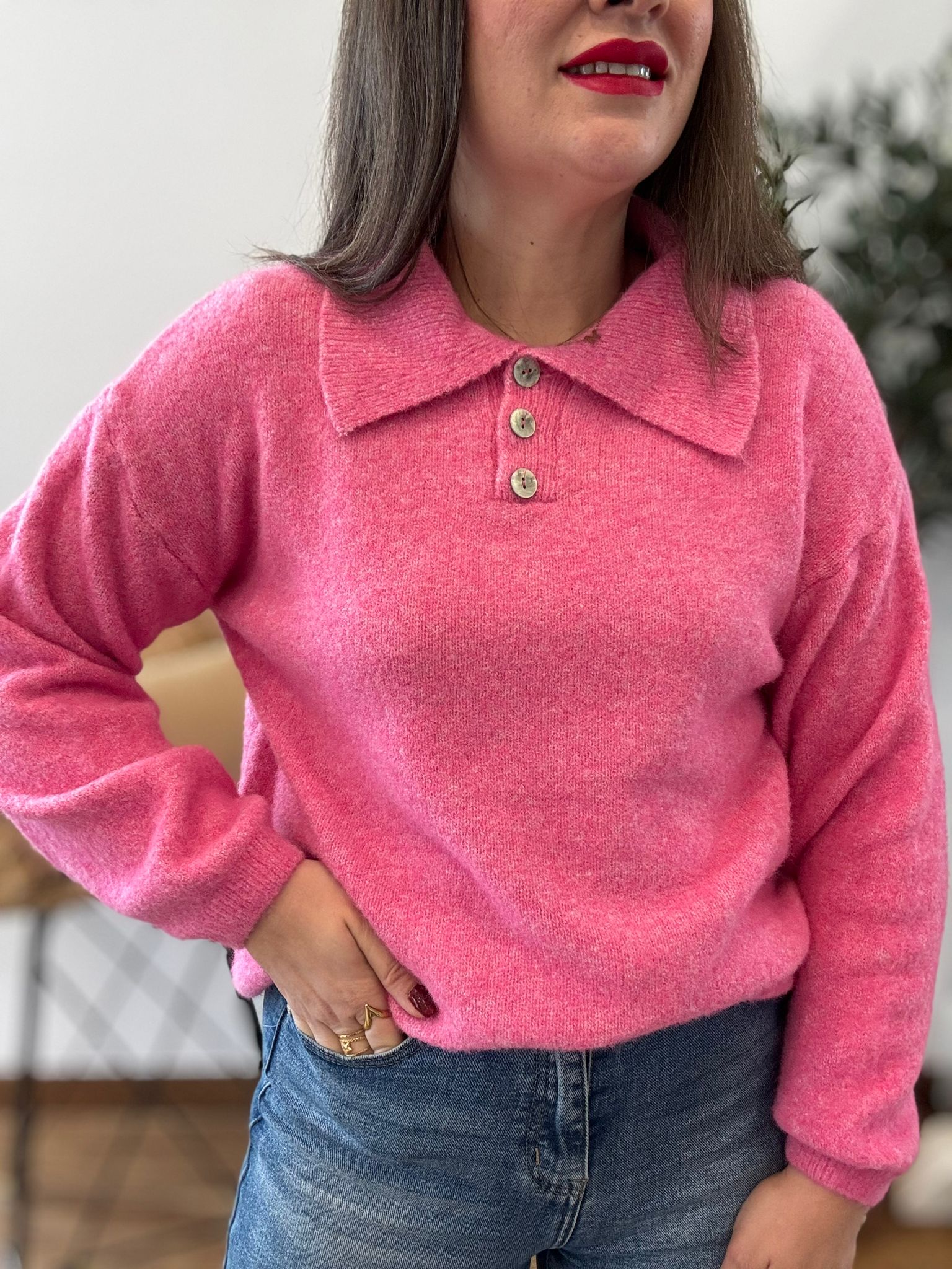 Jersey de lana calentito y súper suave que no pica con cuello polo. TU RECOMENDADA 36/44. Ana lleva habitualmente talla 40/42. Medidas del jersey: ancho 120 y largo 66cm