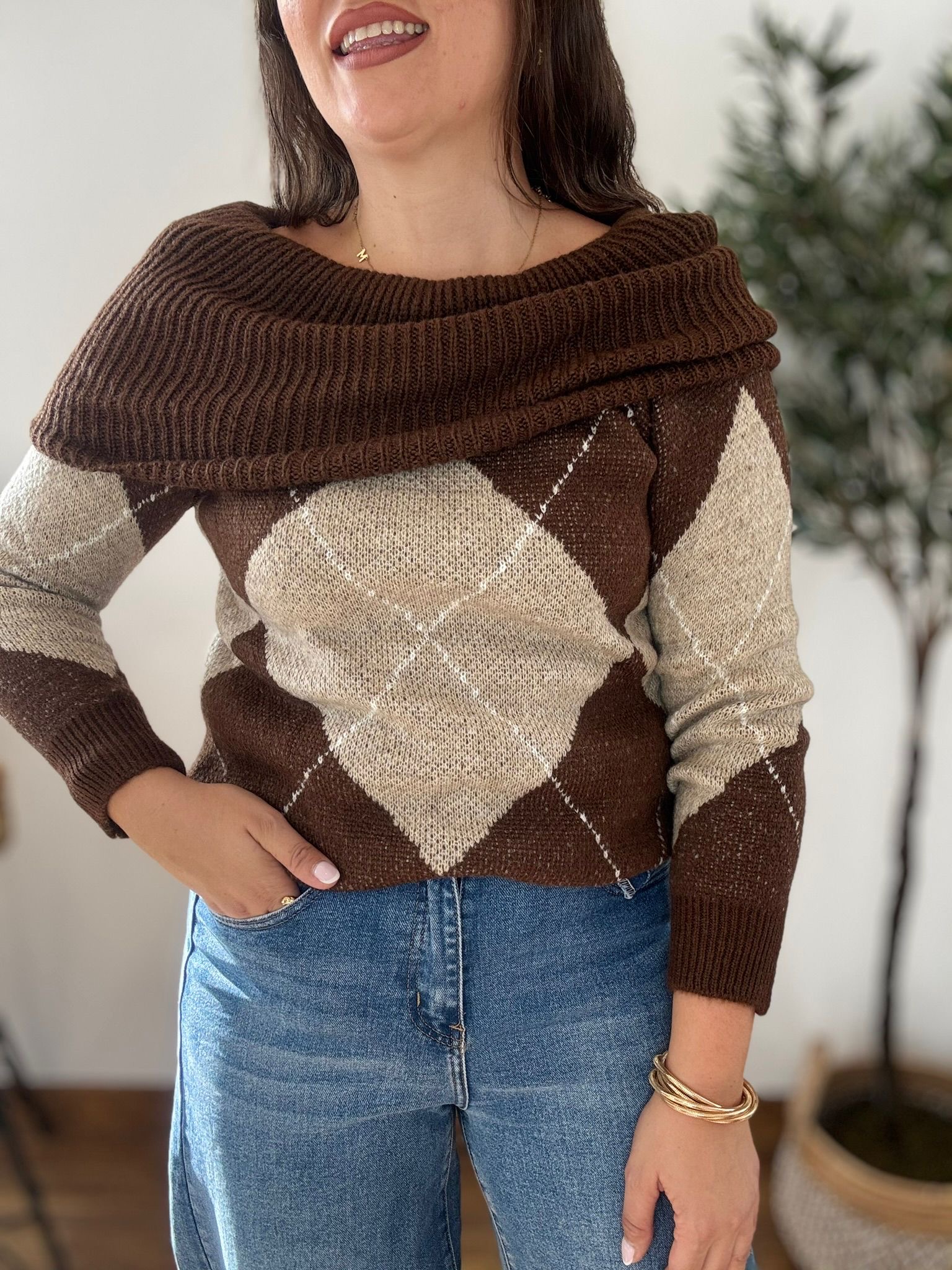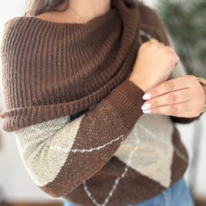 Jersey de lana suave que no pica con escote barco multiposicion. TU RECOMENDADA 36/44. Ana lleva habitualmente talla L 40/42