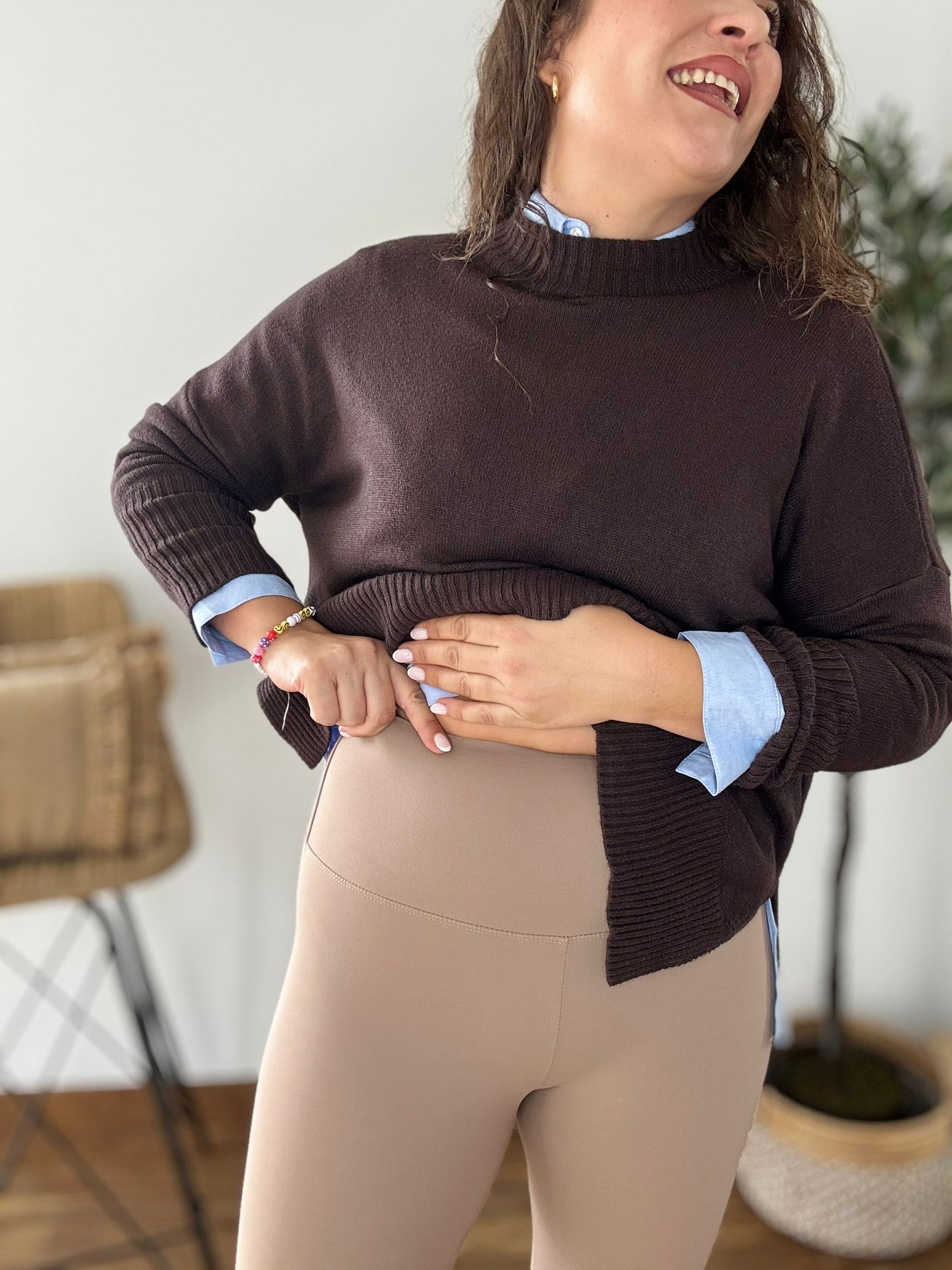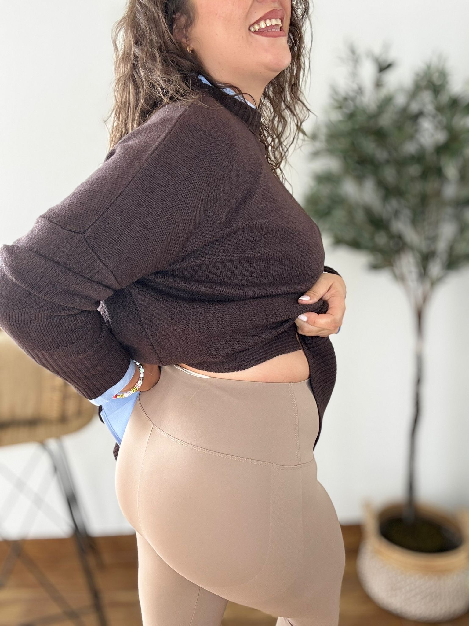 Leggins efecto guante con fajita reductora en el abdomen y refuerzo en el culete.