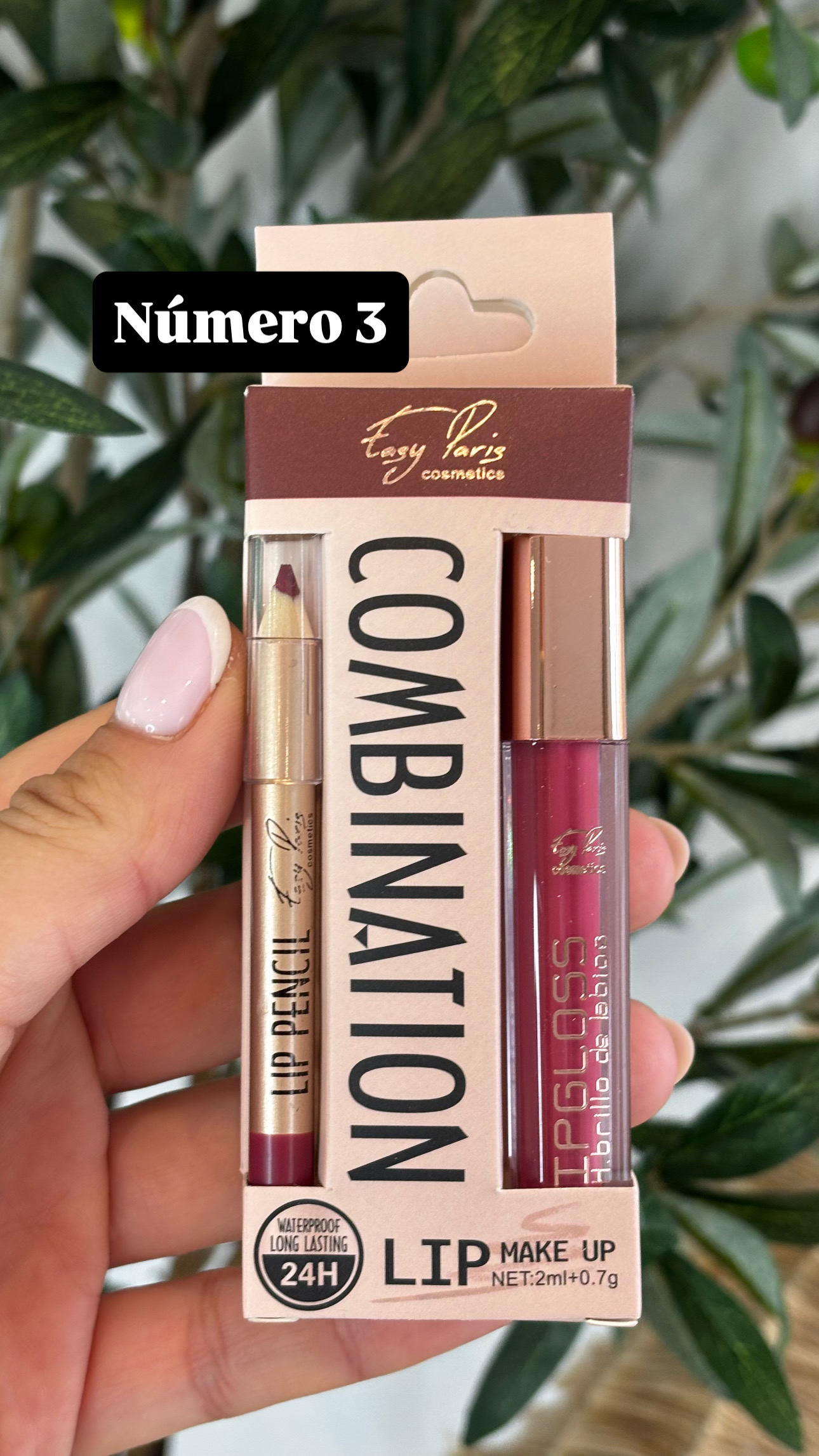 Lip combo perfilador más labial. Resistente al agua y larga duración 24h.