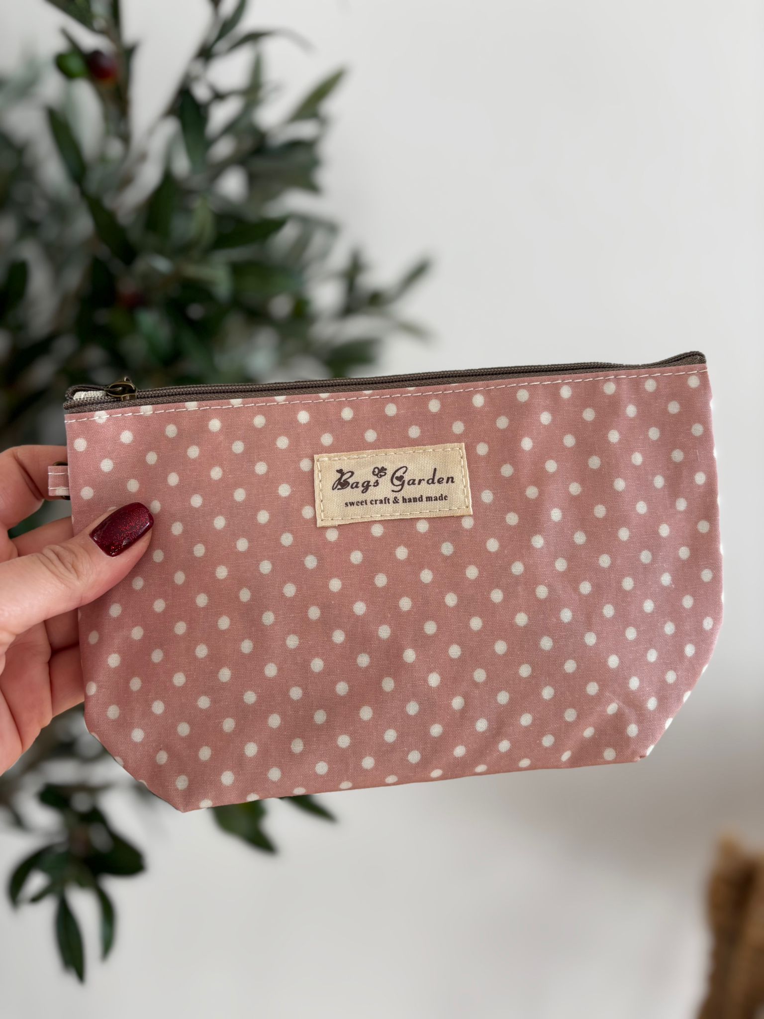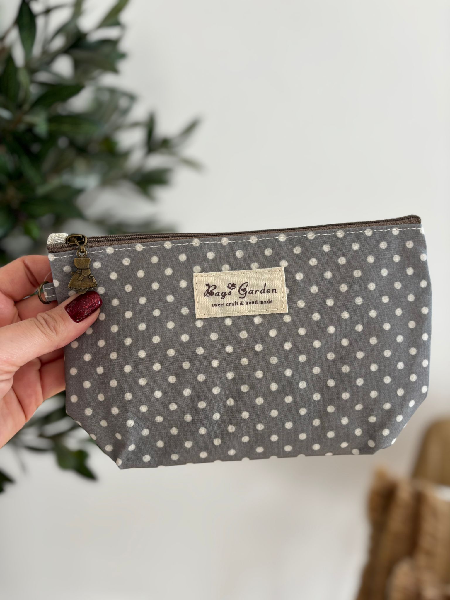 Neceser de material lavable con cremallera y asa. Medidas aproximadas 22×14