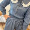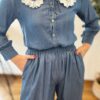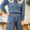 Pantalón fluido bombacho denim con bolsillos. Lleva goma en la cintura. TU RECOMENDADA 36/44. Ana lleva habitualmente talla L/40 y mide 1.71m. Medidas del pantalón: cadera 150 y largo 99cm