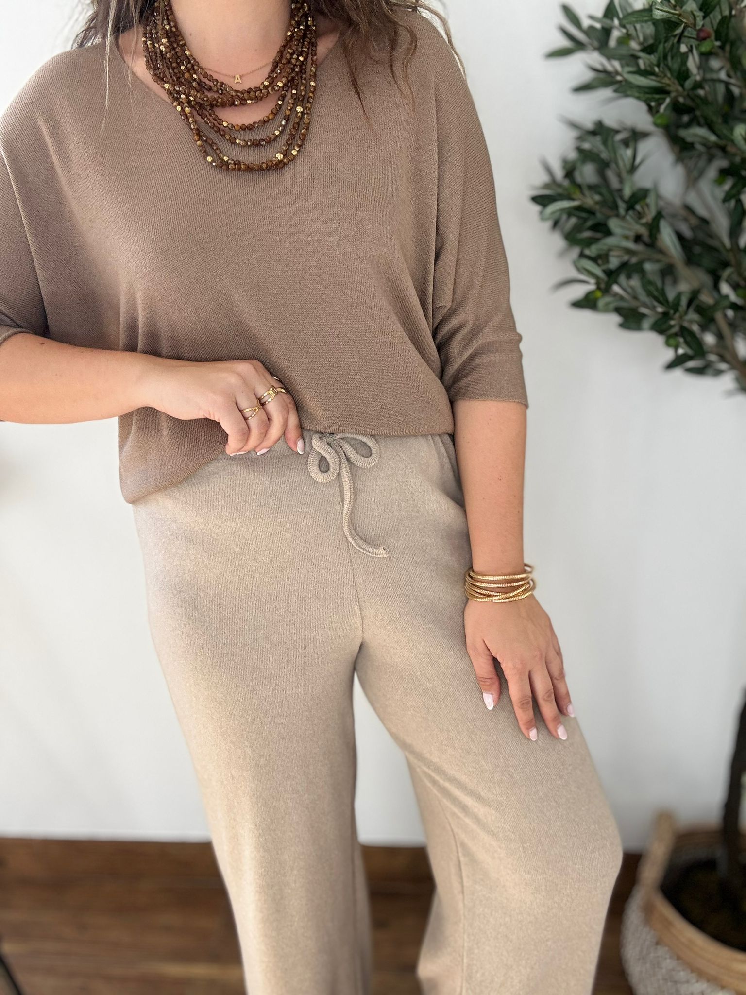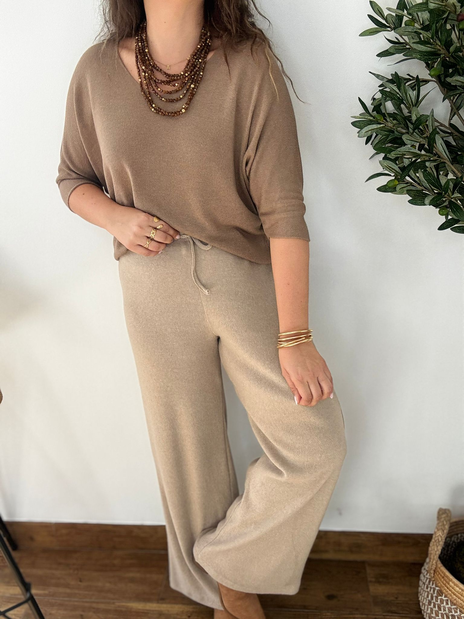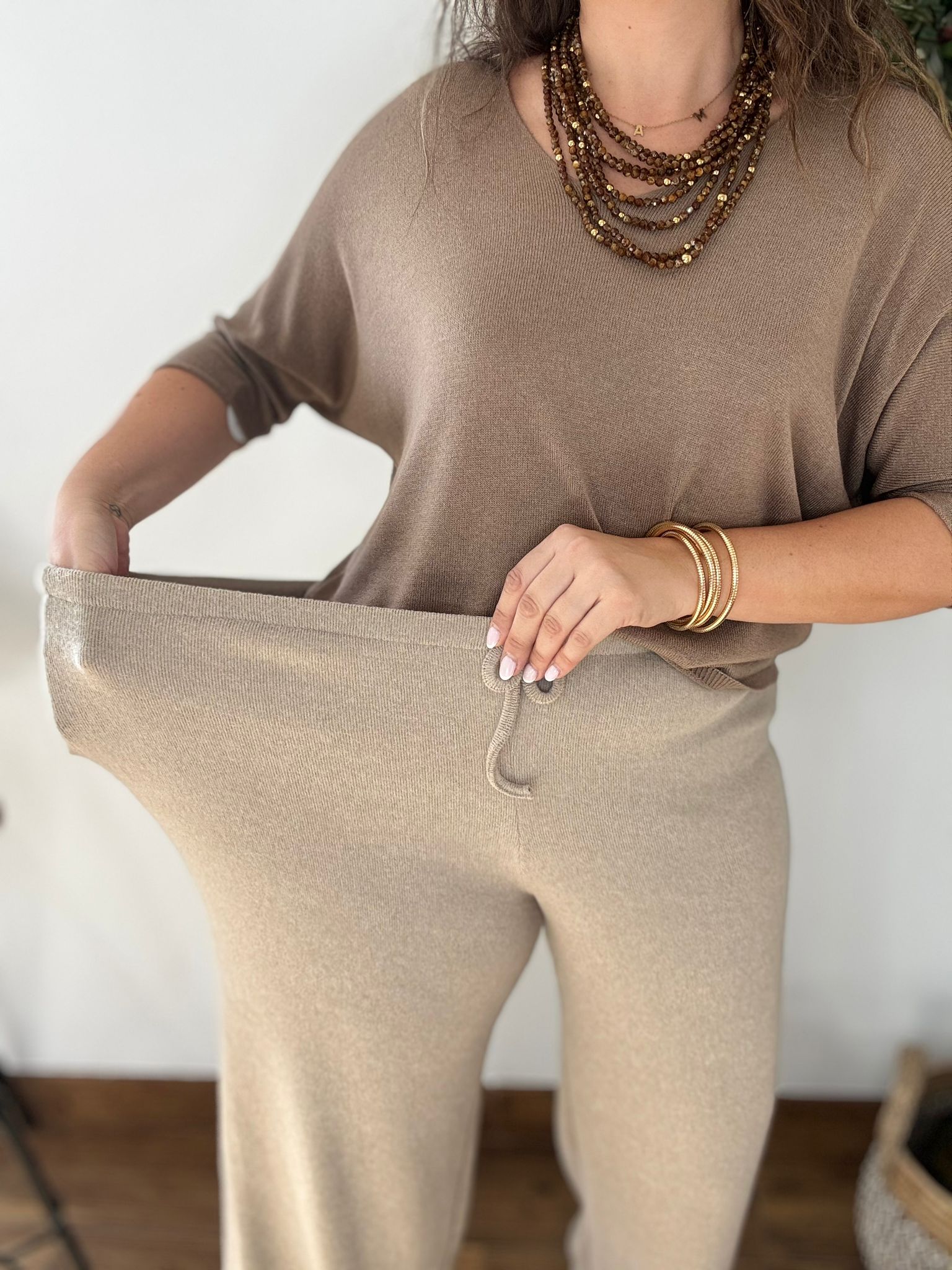 Pantalón de punto suave súper calentitos. Tiene cinturilla elástica. TU RECOMENDADA 38/46. Ana lleva habitualmente talla L 40/42 y mide 1.71m
