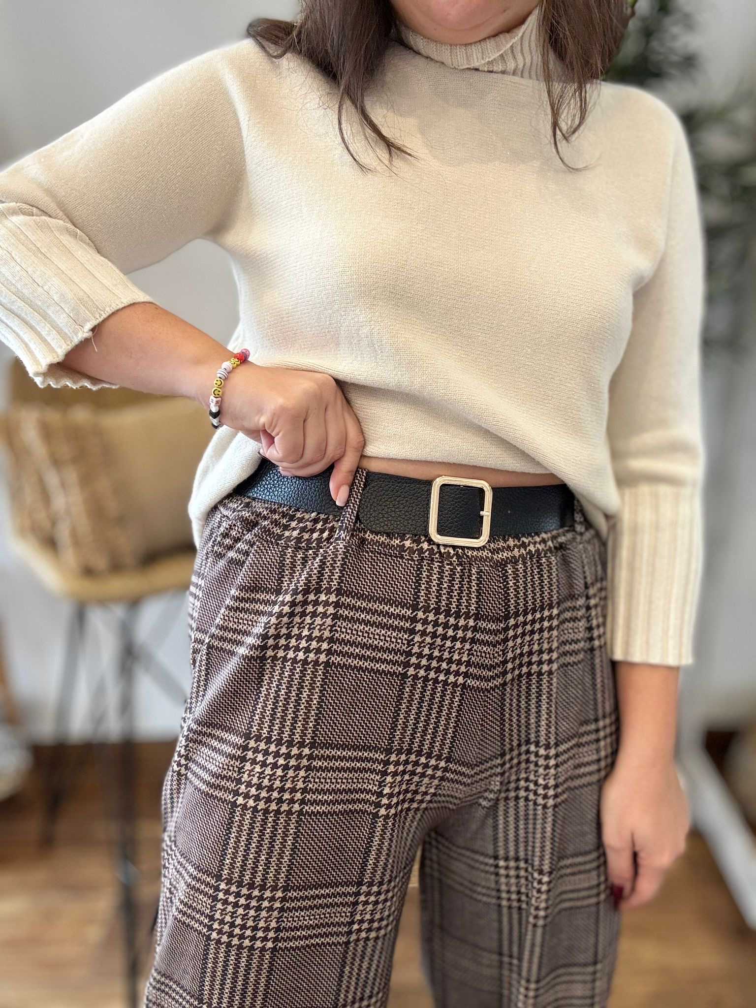 Pantalones en tejido calentito con bolsillos, cintura elástica y cinturón incluido. TU RECOMENDADA 38/44. Ana lleva habitualmente talla 40/42 y mide 1.71m Medidas del pantalón: cintura estirada 116, cadera 124 y largo 102cm